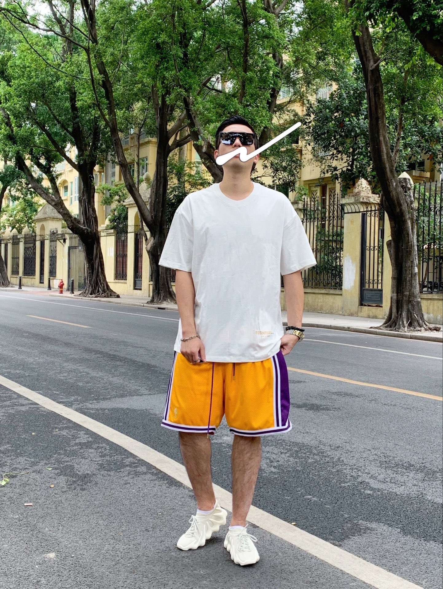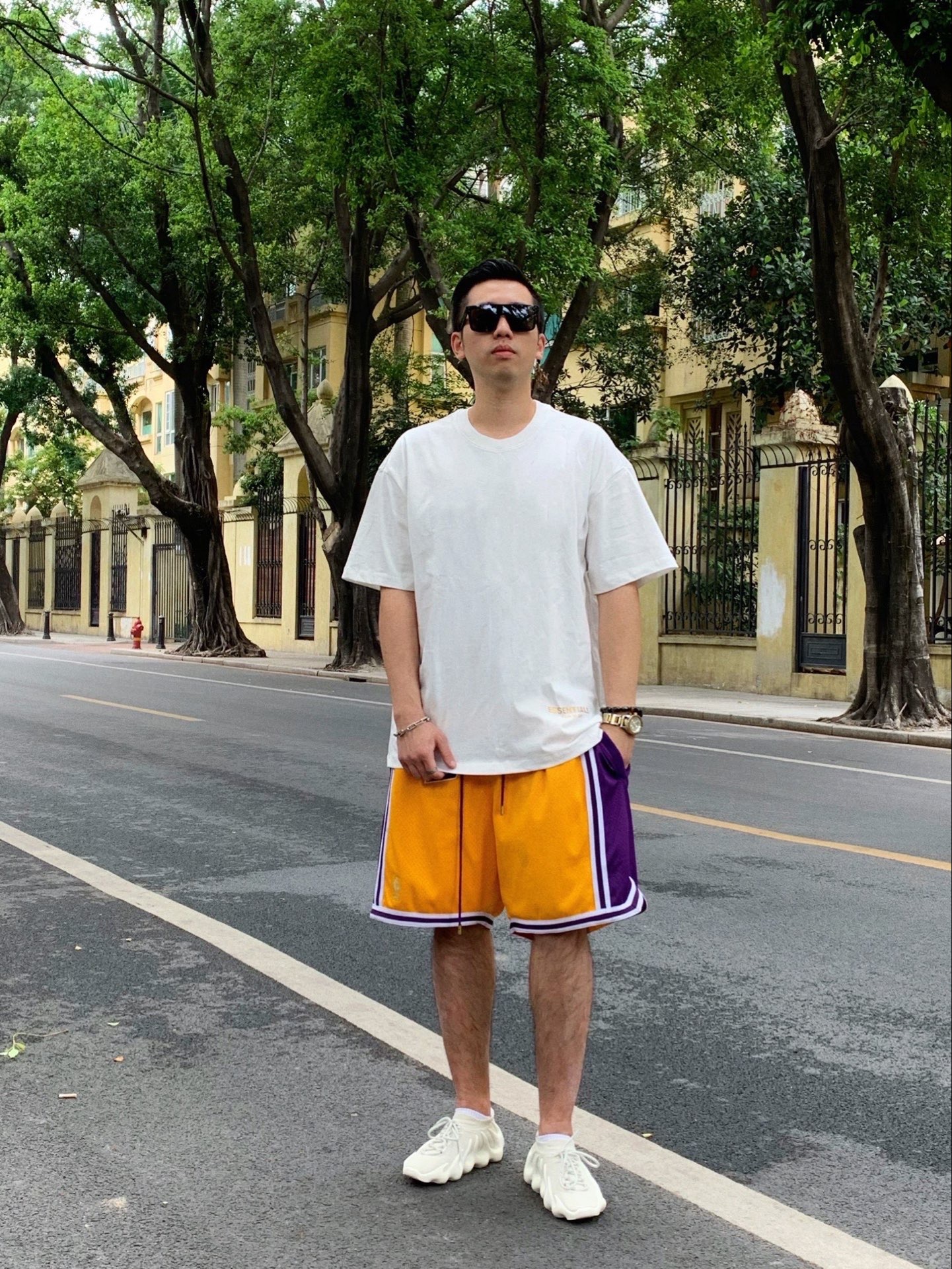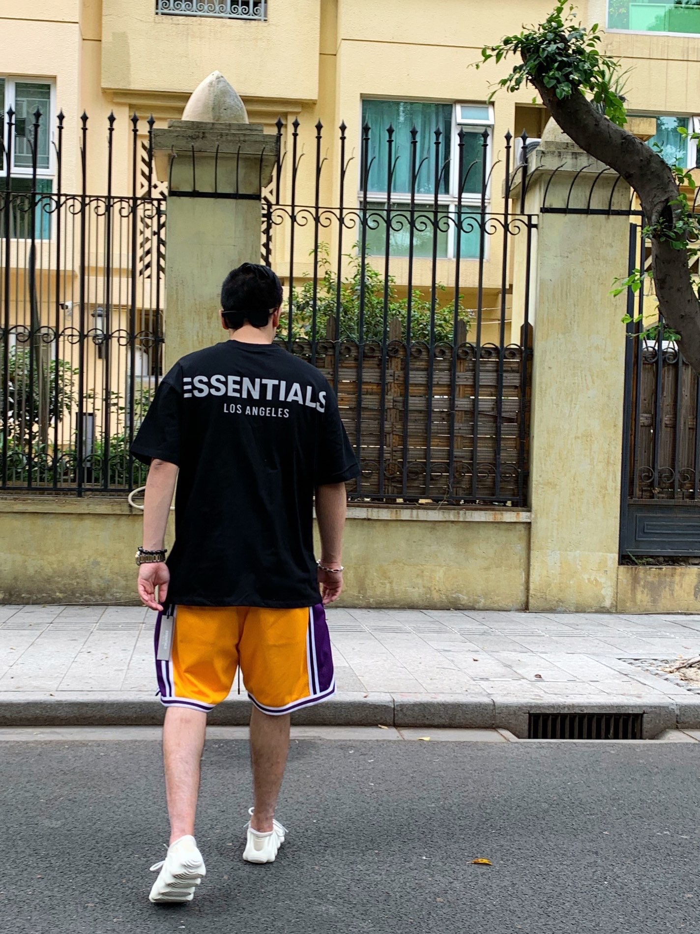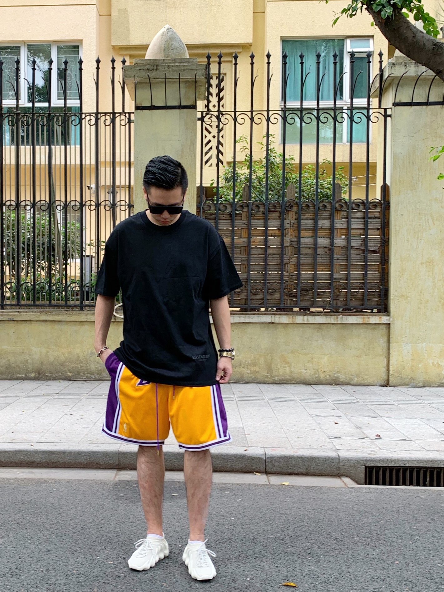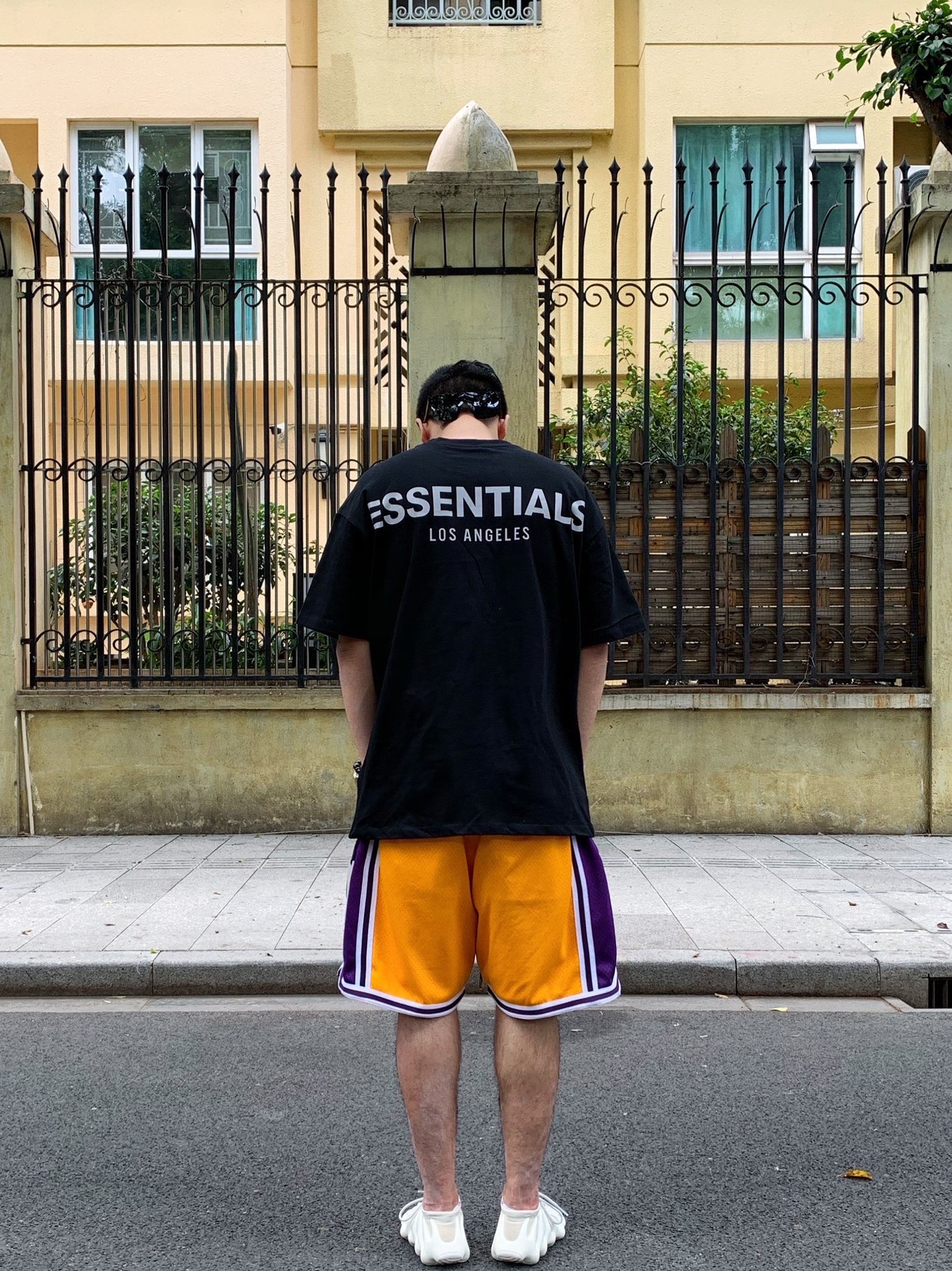 上身:Essentials fog 洛杉矶限定短袖 裤子:JustDon湖人Lakers短裤 鞋子:Yeezy450 Adidas #Fear of God #Fear of God Essentials #adidas #GENTLE MONSTER