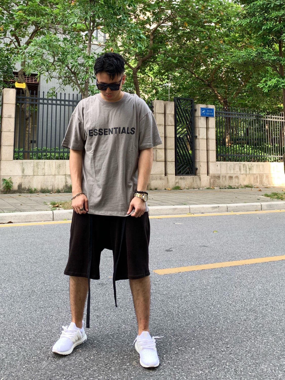 👔:Fear Of God Essentials短袖 👖:Fear Of God第六季抽绳短裤 👟:Adidas Ultra Boost3.0
