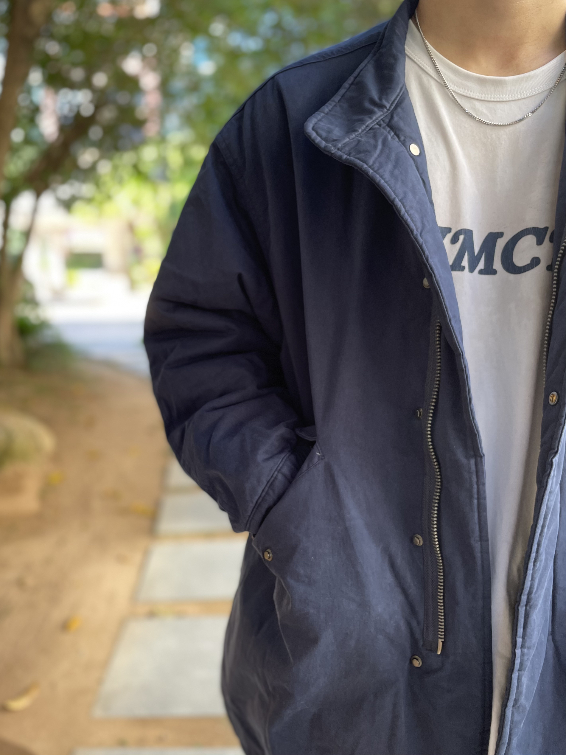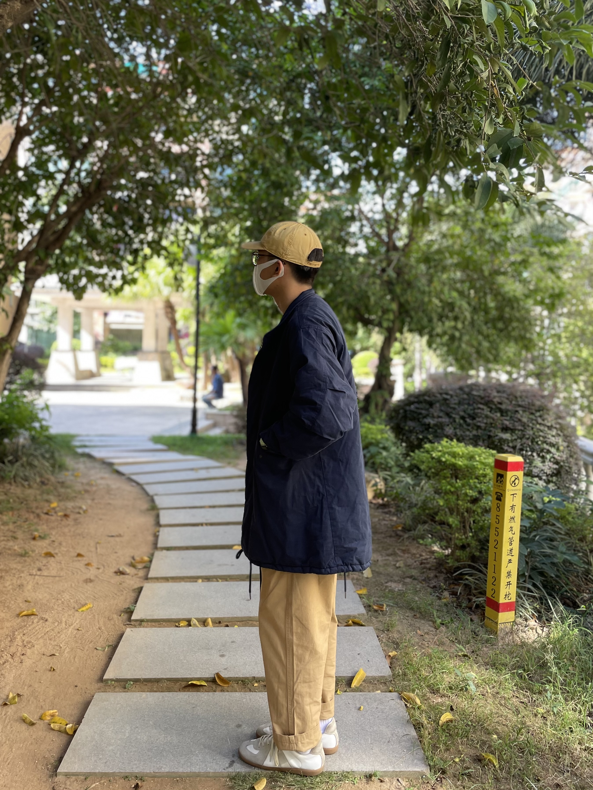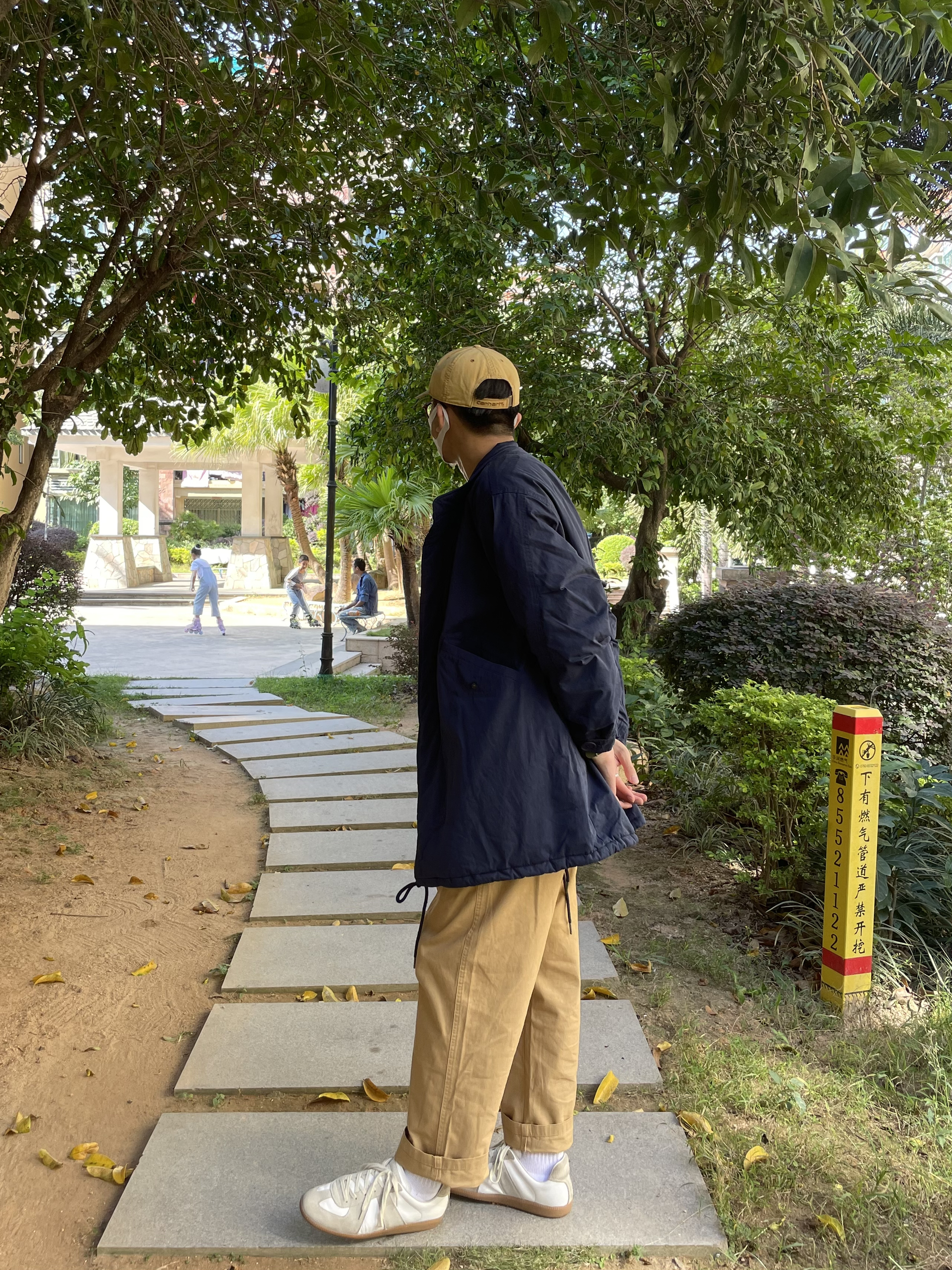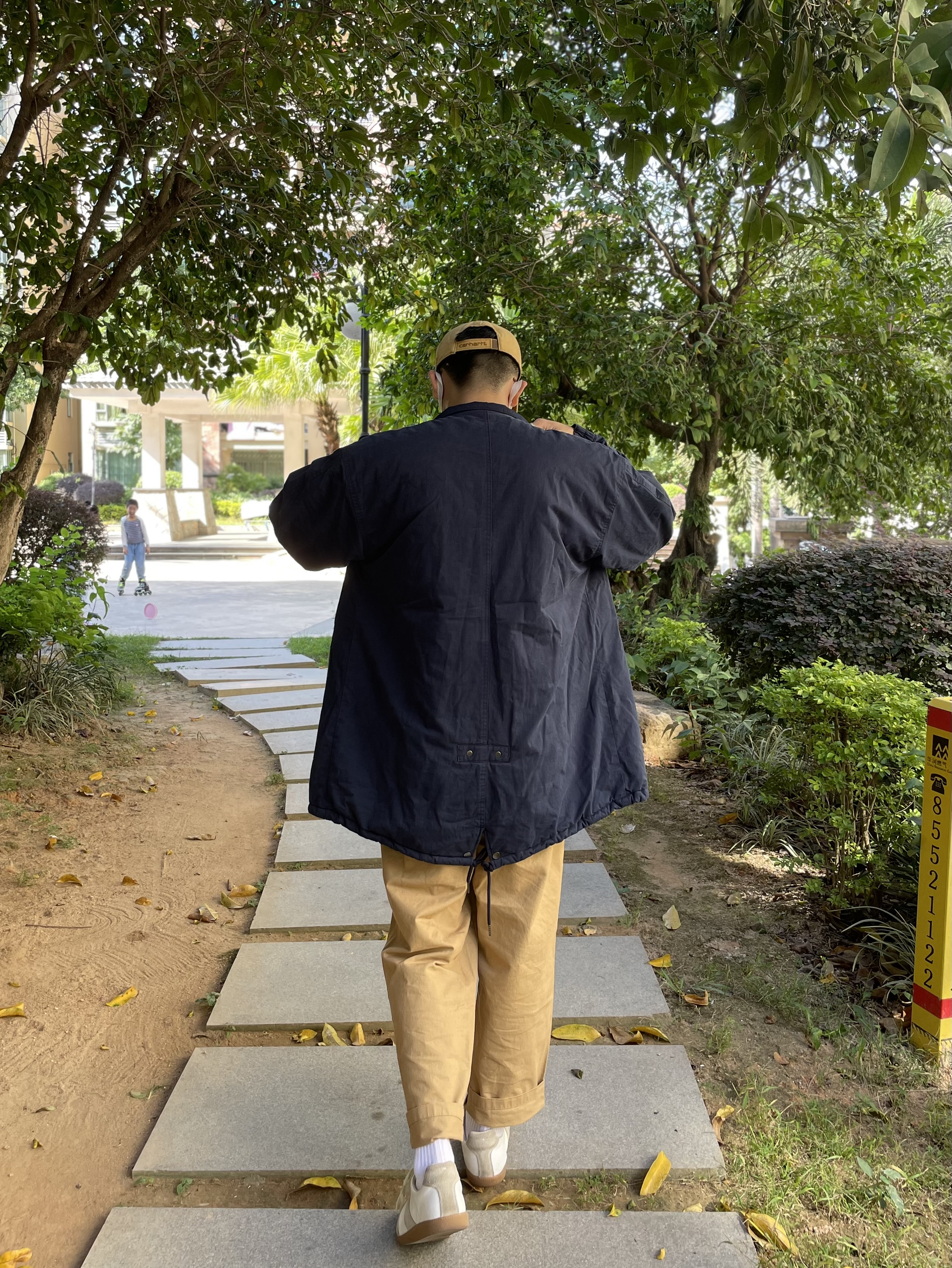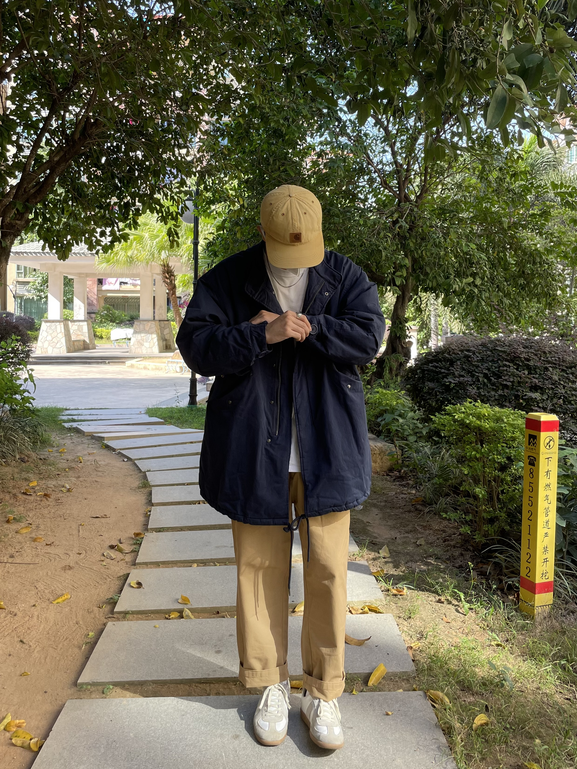 冬天肯定少不了风衣 经典的M51鱼尾风衣 版型宽松硬挺 舒舒服服~ 下身搭配一条美式复古硬朗的宽松休闲裤 百搭的卡其色 面料是棉麻材质的 摸起来很有质感 ▫️风衣:STK野奢工装 ▫️内搭:VMCL ▫️裤子:STK野奢工装
