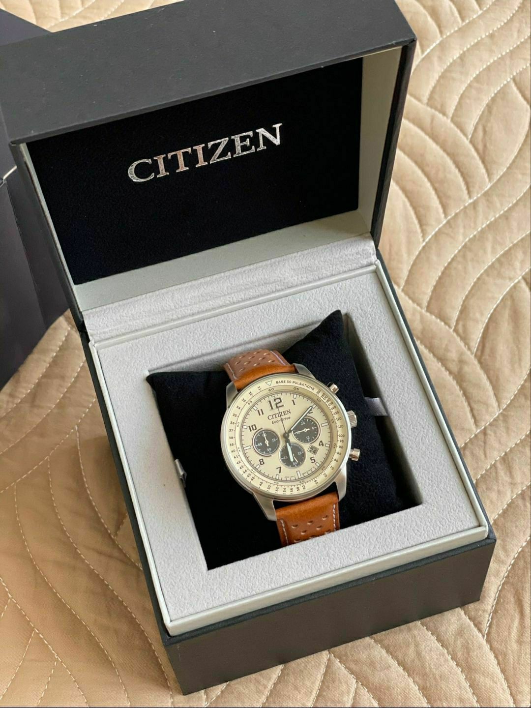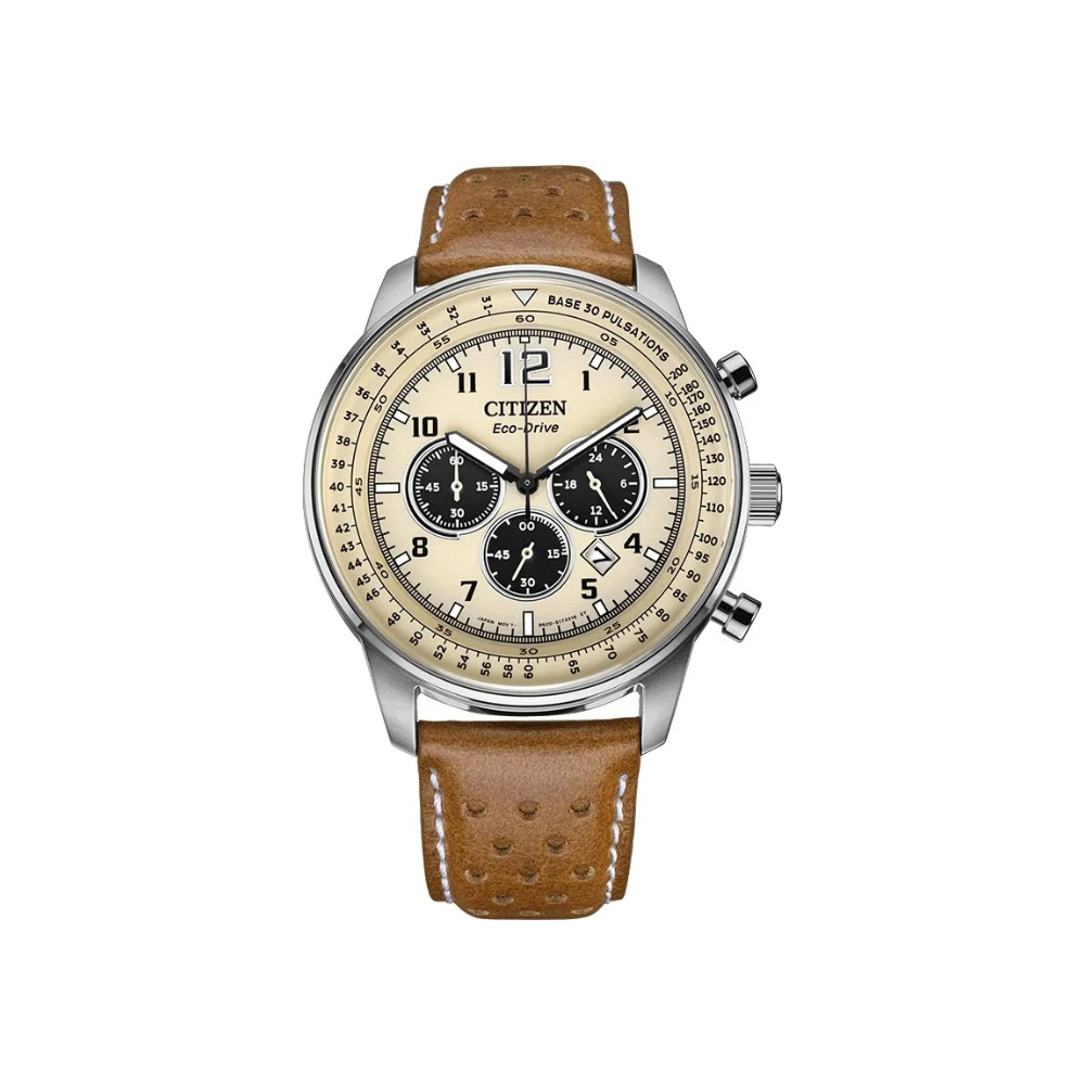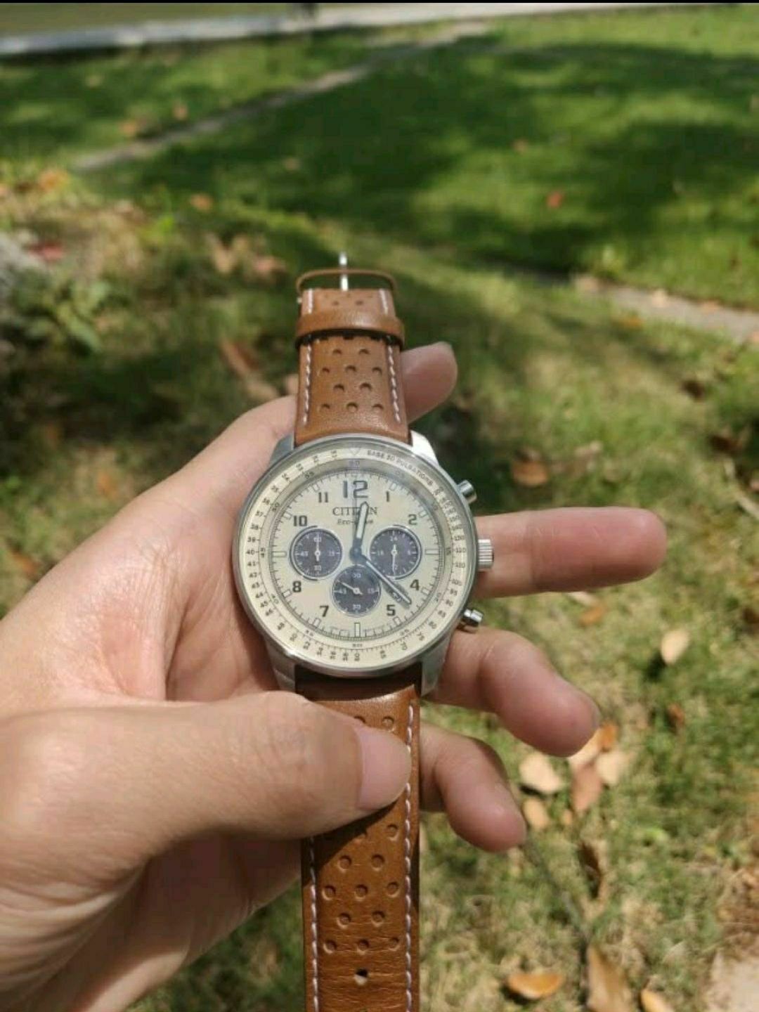 本篇笔记关联了Citizen/西铁城 熊猫盘皮带复古休闲运动日期显示三眼防水飞行风光动能石英男士手表 卡其色 CA4500-16X等商品,为用户提供真实的使用体验和购买参考。