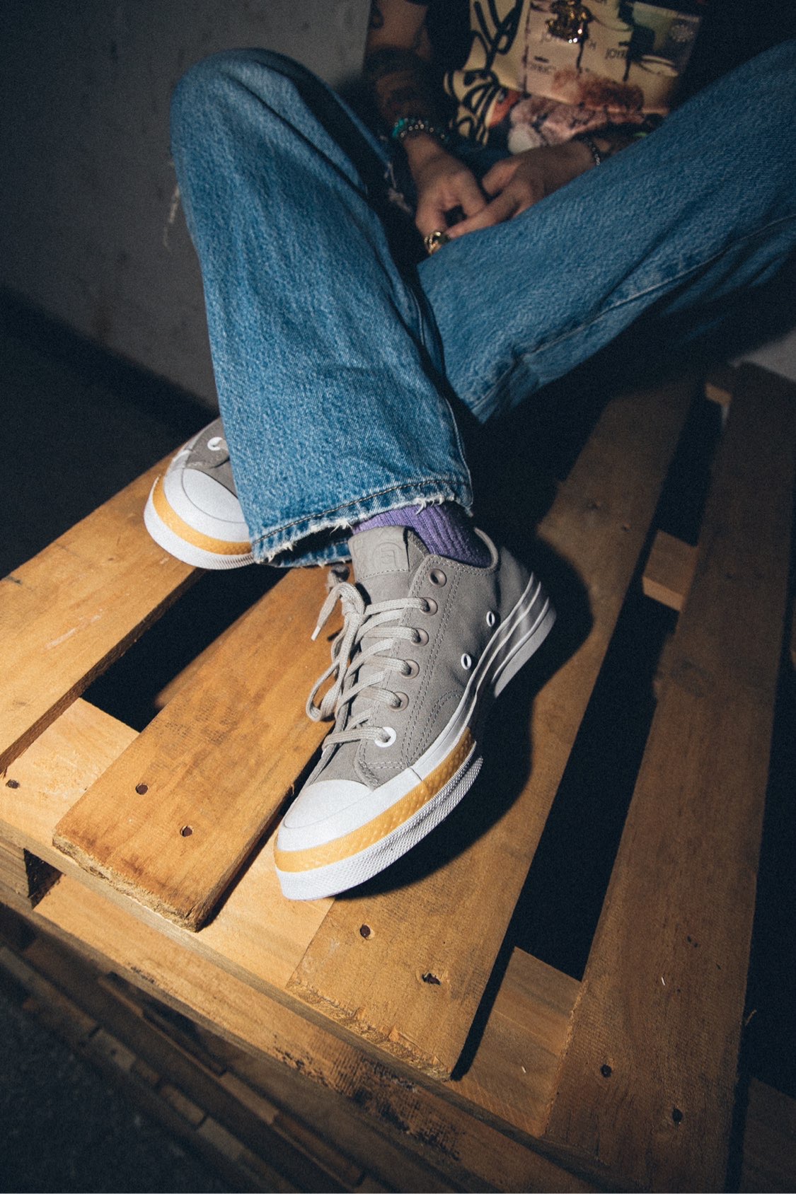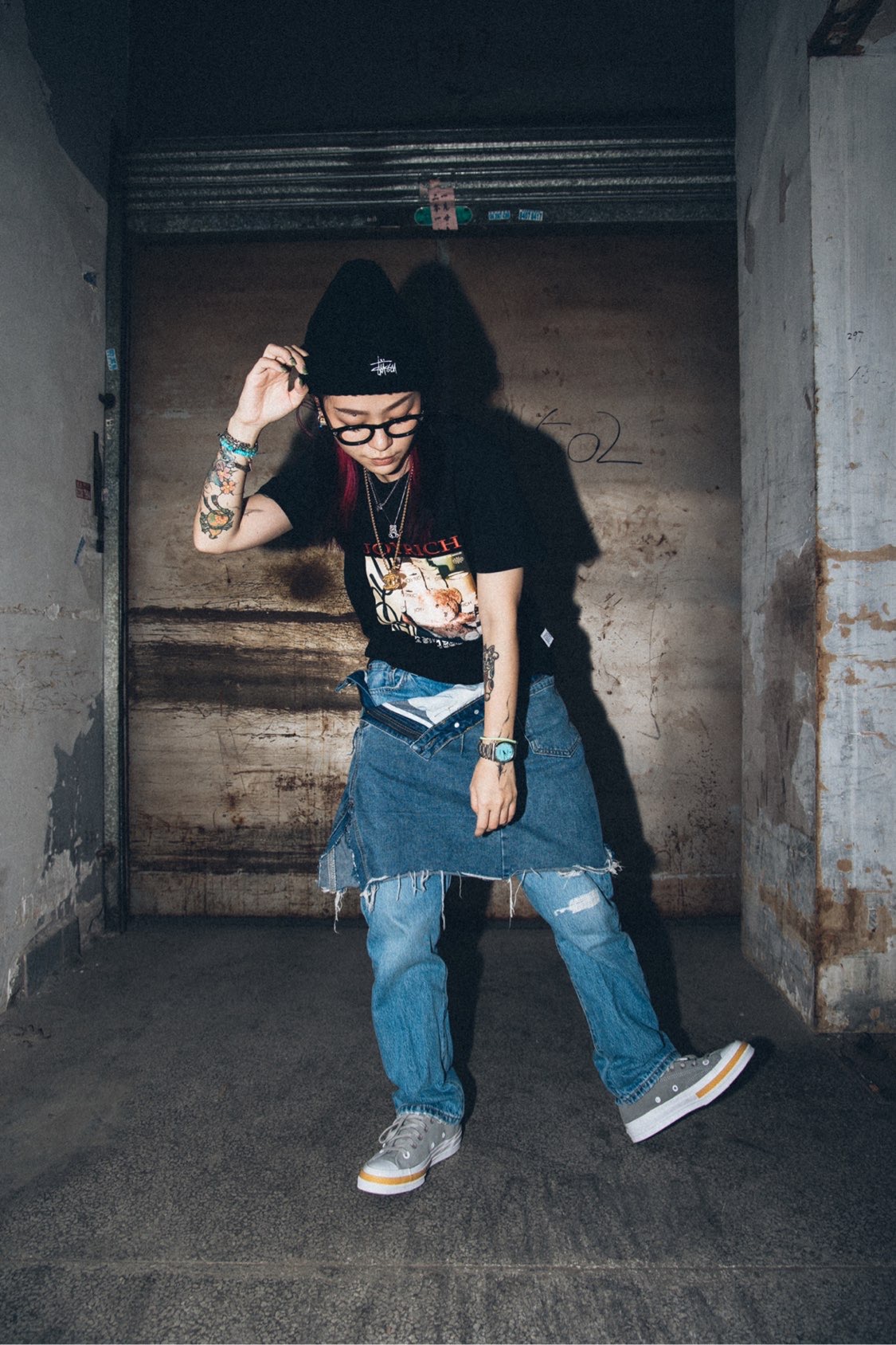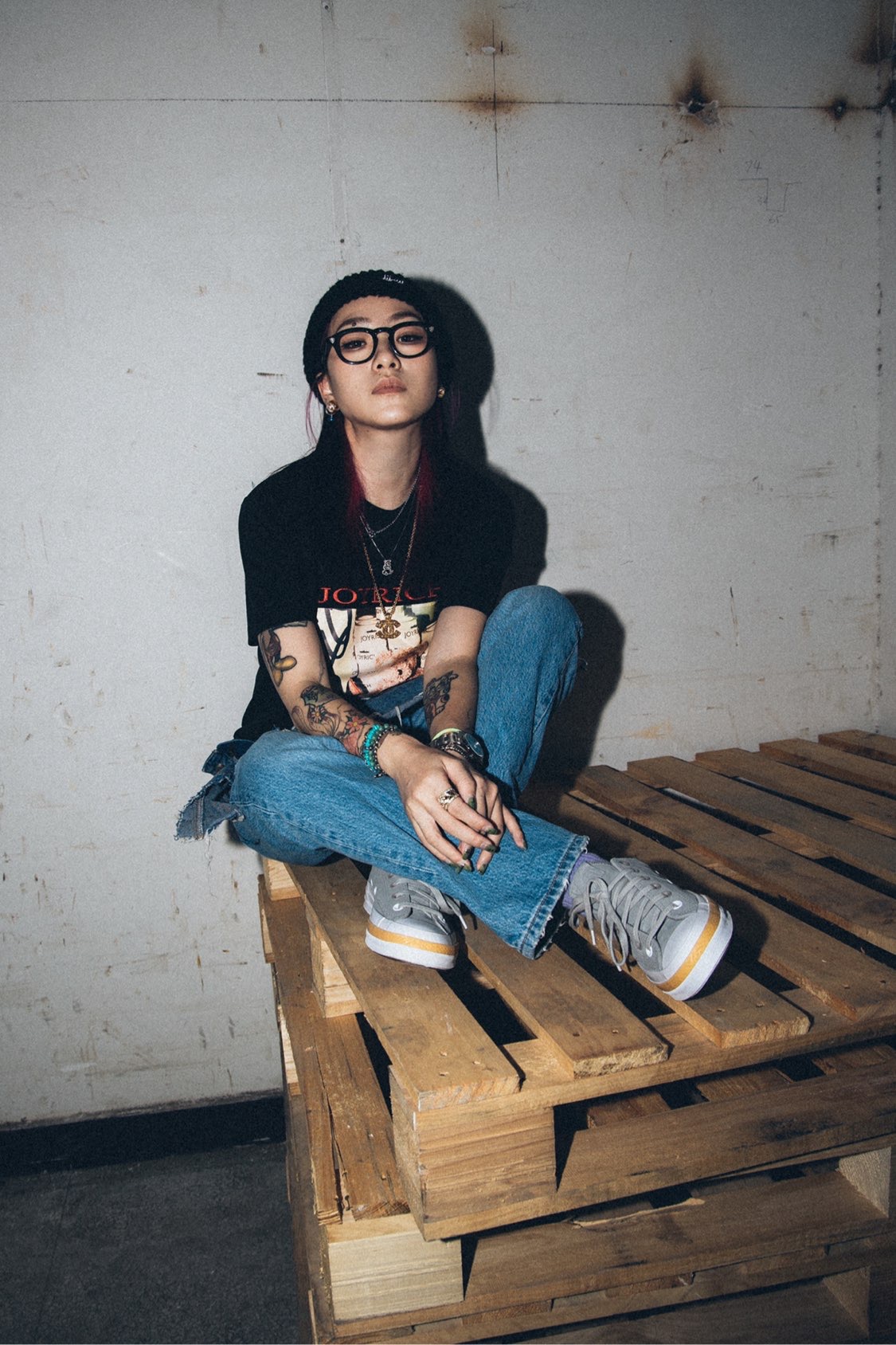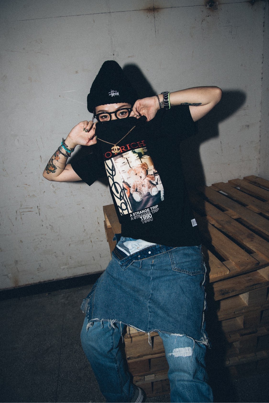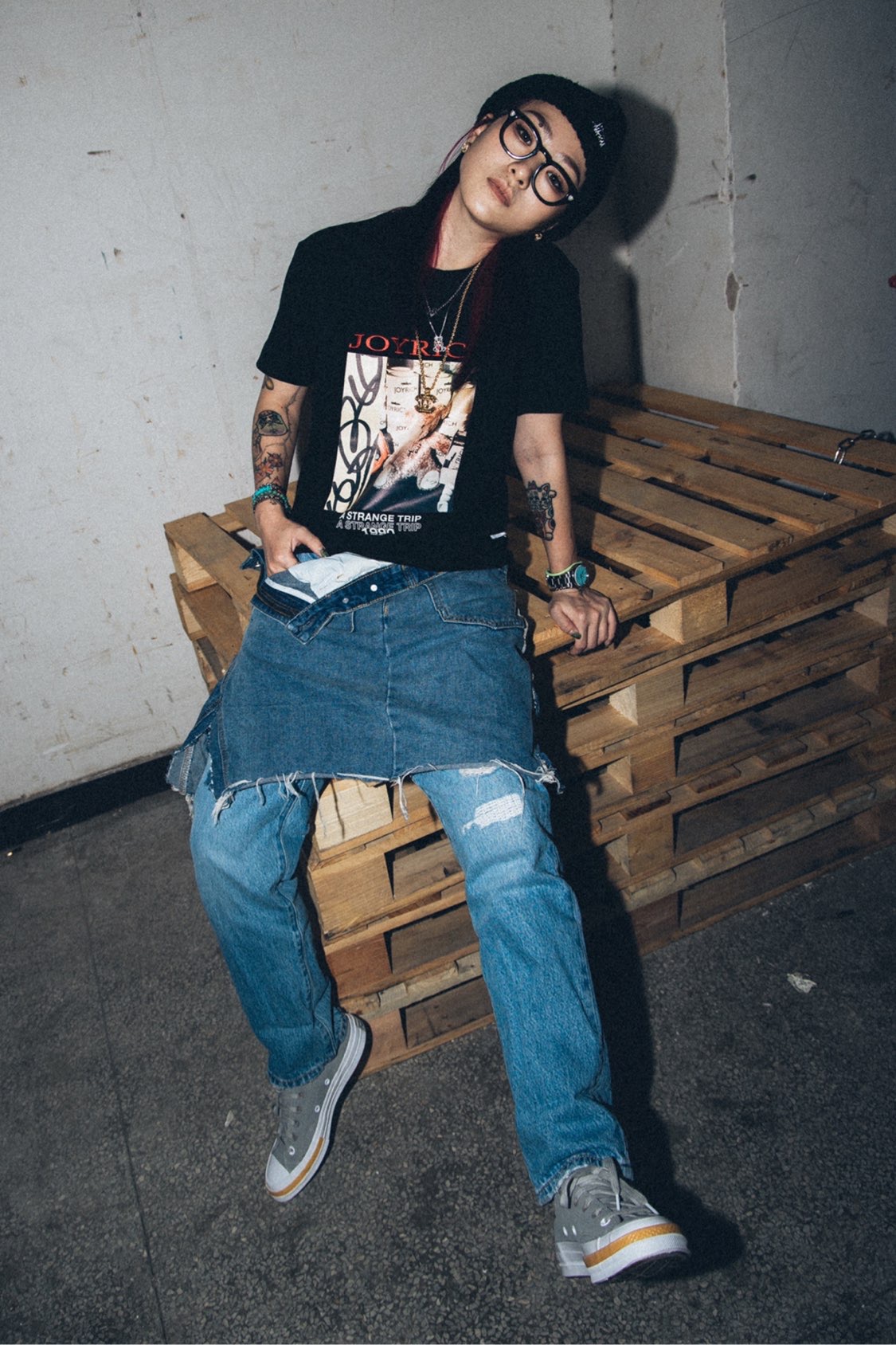 今天是略带摇滚的穿搭! 黑色摇滚T恤➕黑色毛线帽就很对味。 下半身是我用经典牛仔裤改造的, 做了一点边边破烂的效果, 略带不羁跟颓废的感觉。 灰色的经典鞋型1970, 随性洒脱,既潮流又经典, 要的就是这个劲劲的范。 #JOYRICH #CLOT #Converse