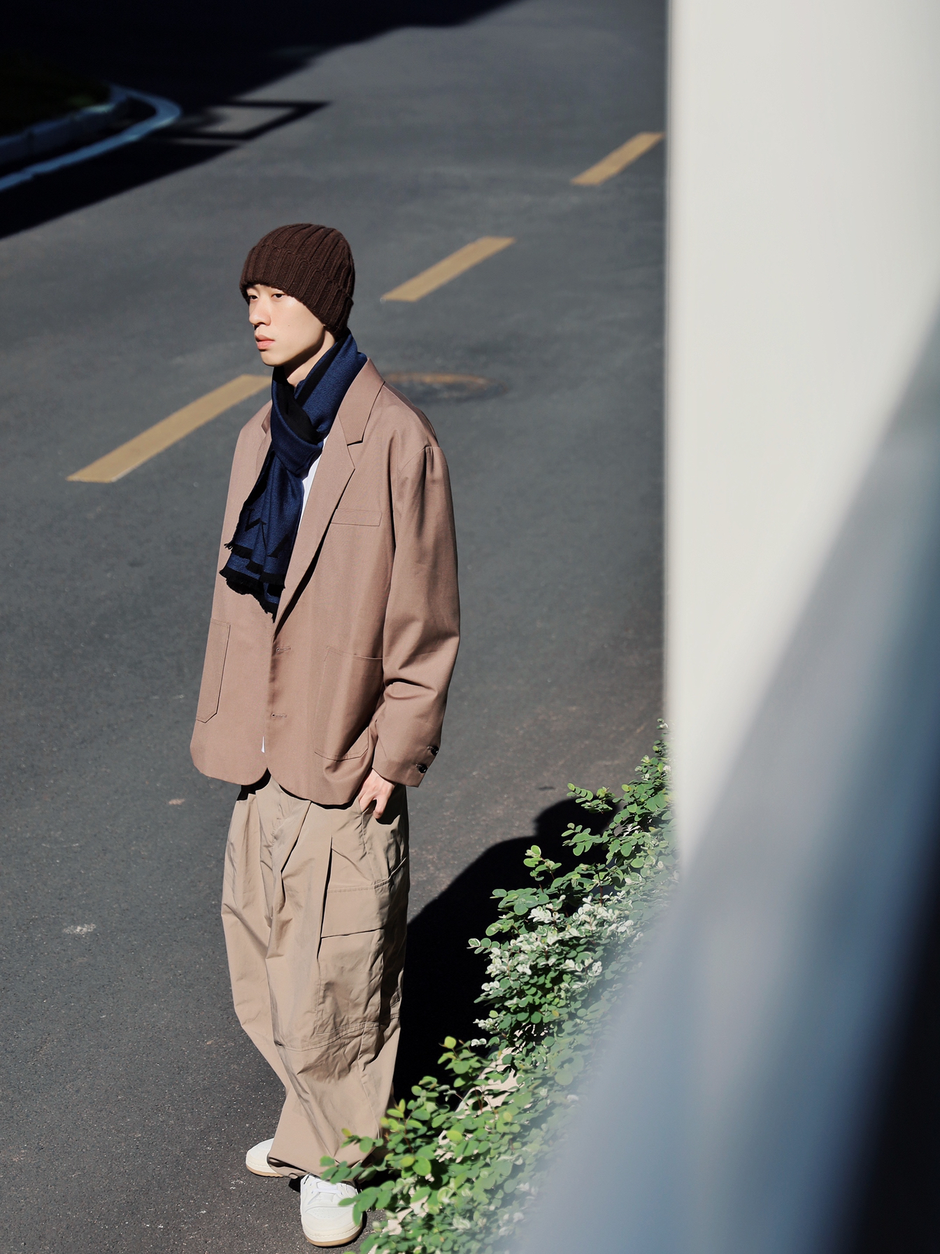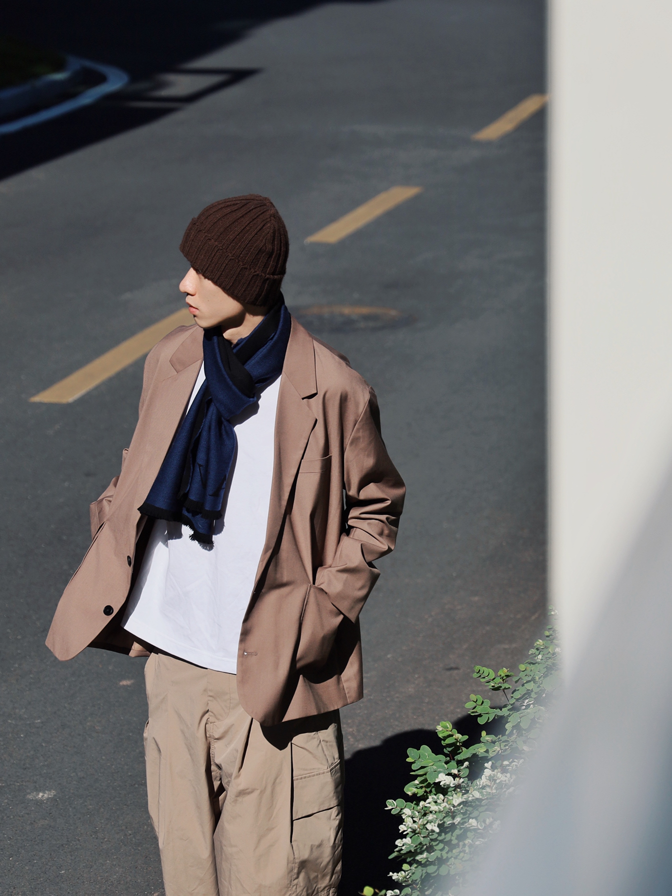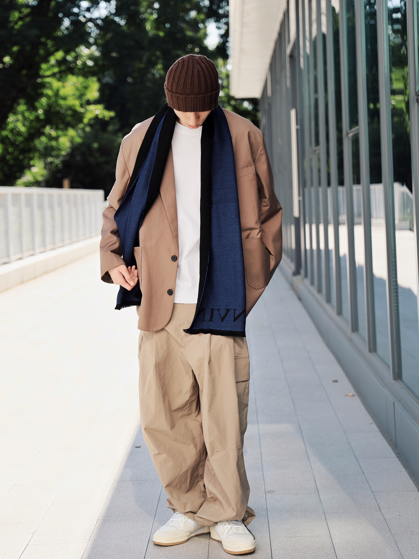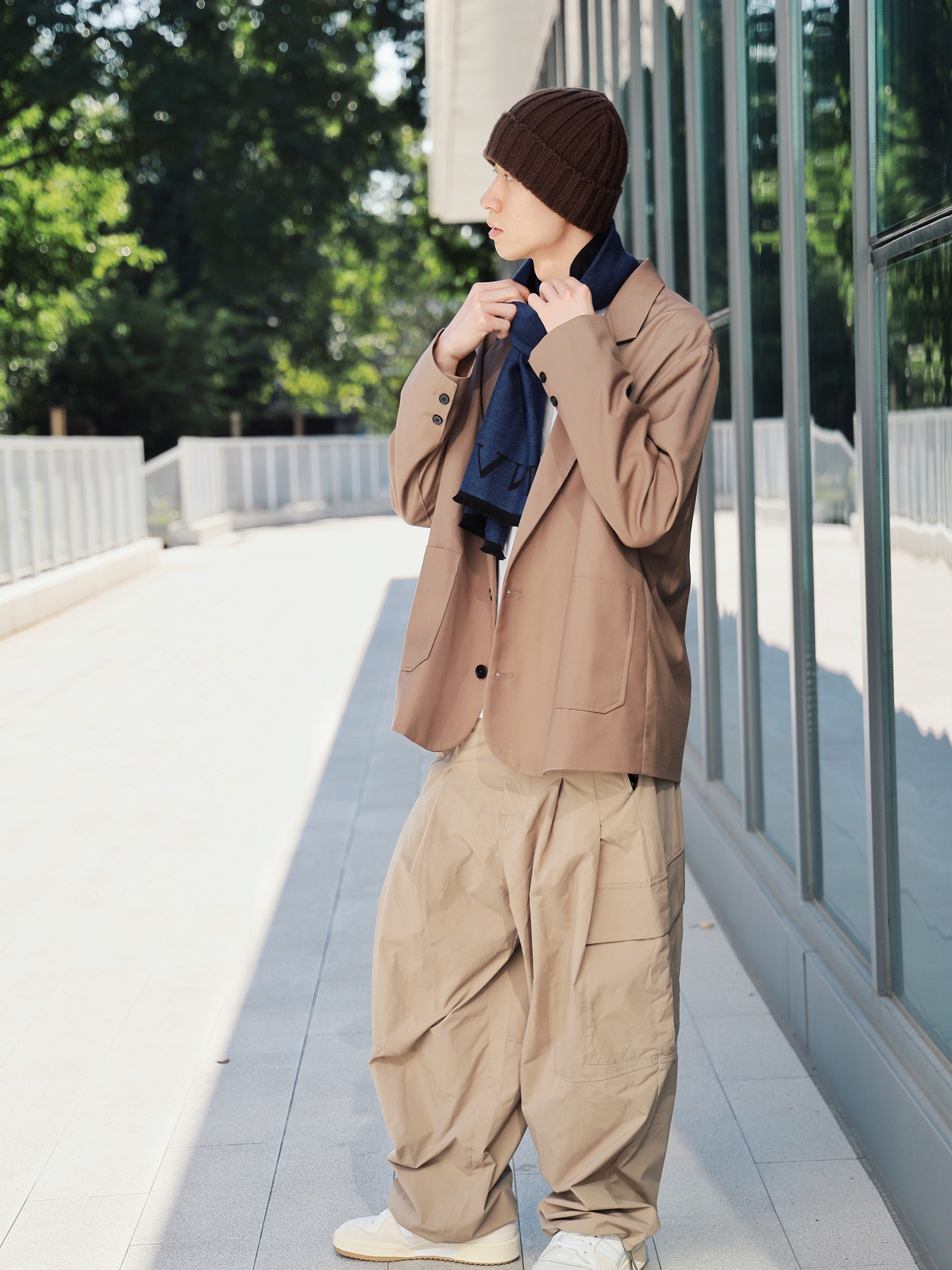 今天的穿搭严格遵循三色法则,也就是整身穿搭不超过三个颜色 穿搭指南🚸 整体大地色系非常适合秋冬季节,看上去就很暖和🤫 棕色的冷帽配合不同深浅的卡其西装外套和阔腿裤,大地色系的层次感就很丰富,内搭白T搭配白鞋进一步将整体穿搭分层,给人的视觉效果更舒服🙌🏻 最后搭配一条LANVIN的藏青色拼黑色的围巾,羊毛面料柔软不扎人,保暖效果超好,两面拼色设计更能满足日常的多种穿搭🏄🏻♂️ 今天我选择搭配这条...