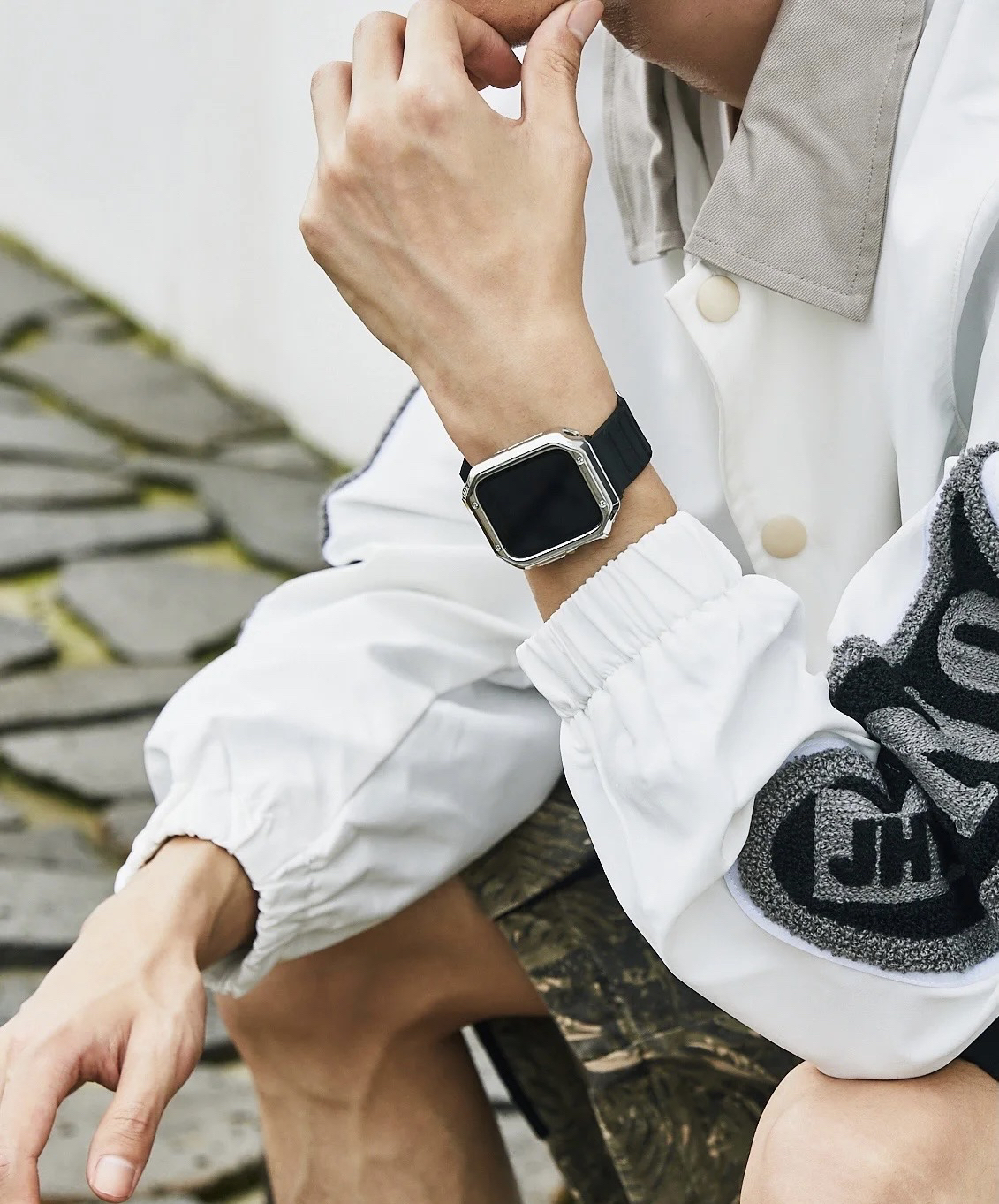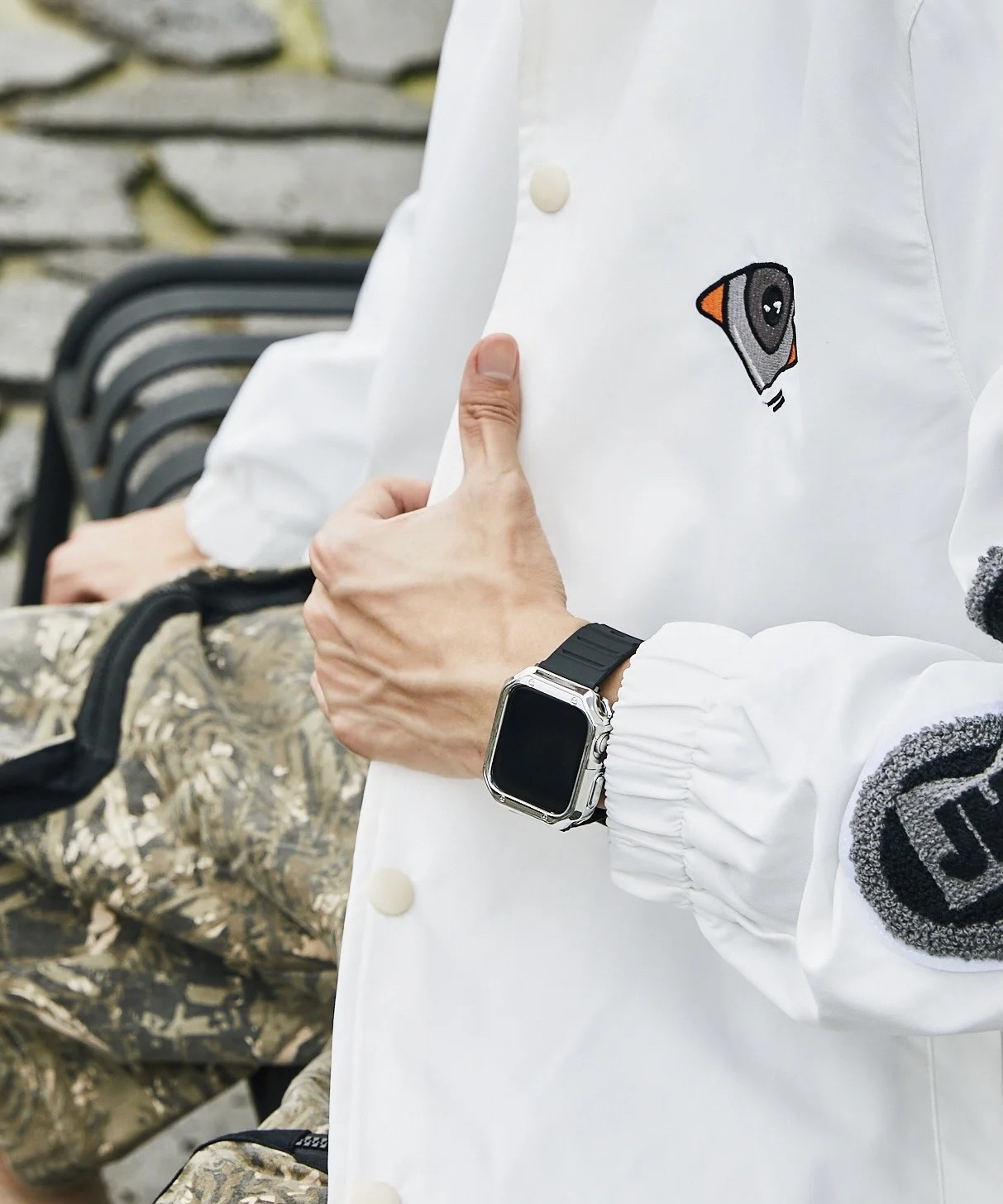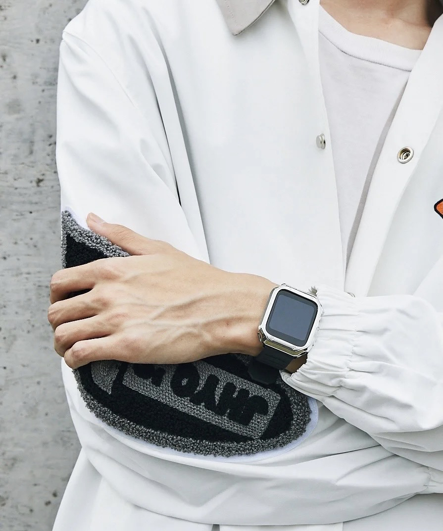 iwatch电子风搭配也很萨啊! 第一运动风也可以很酷 搞个情侣风? 表带:🍑旅行猫表带