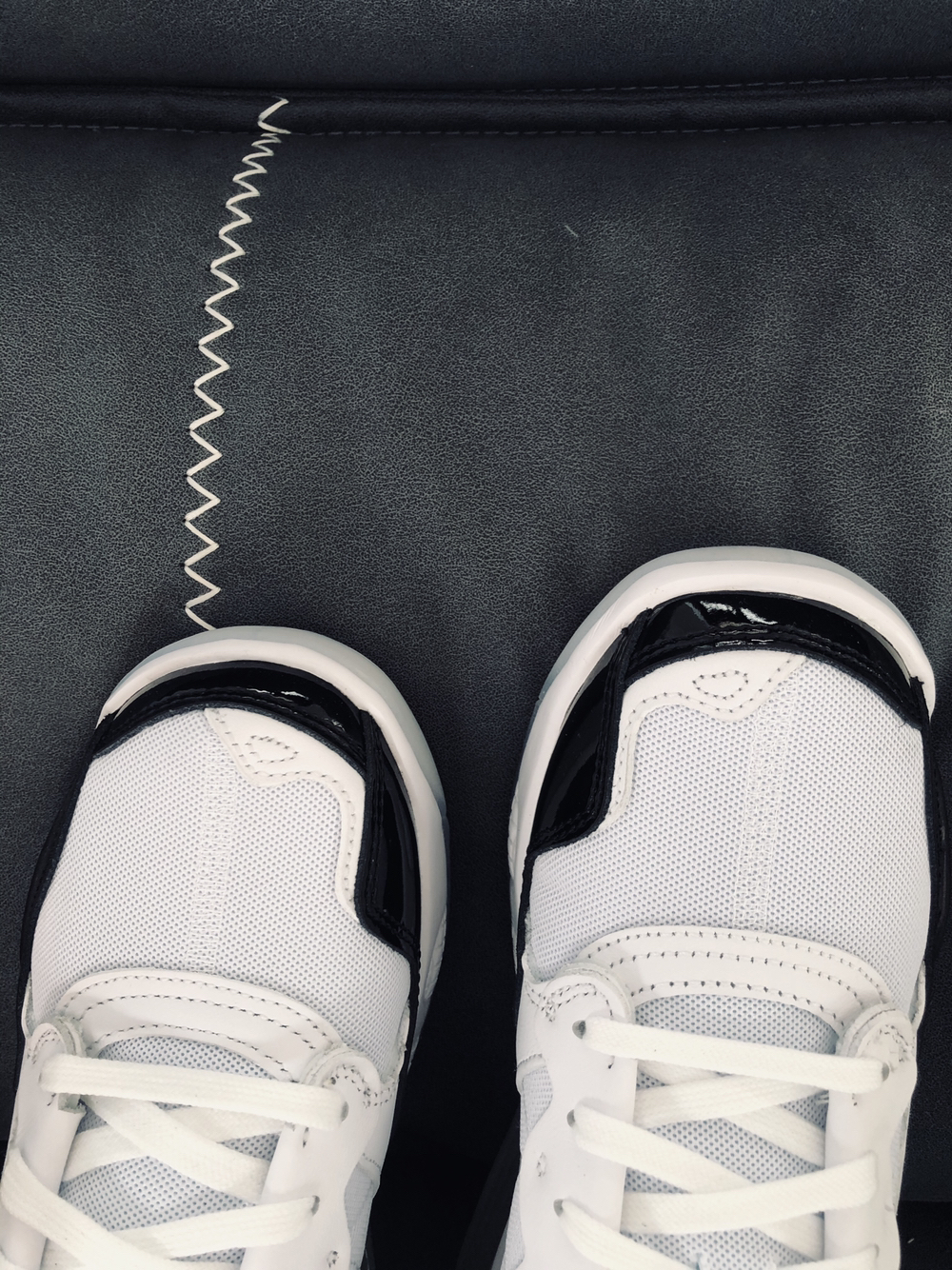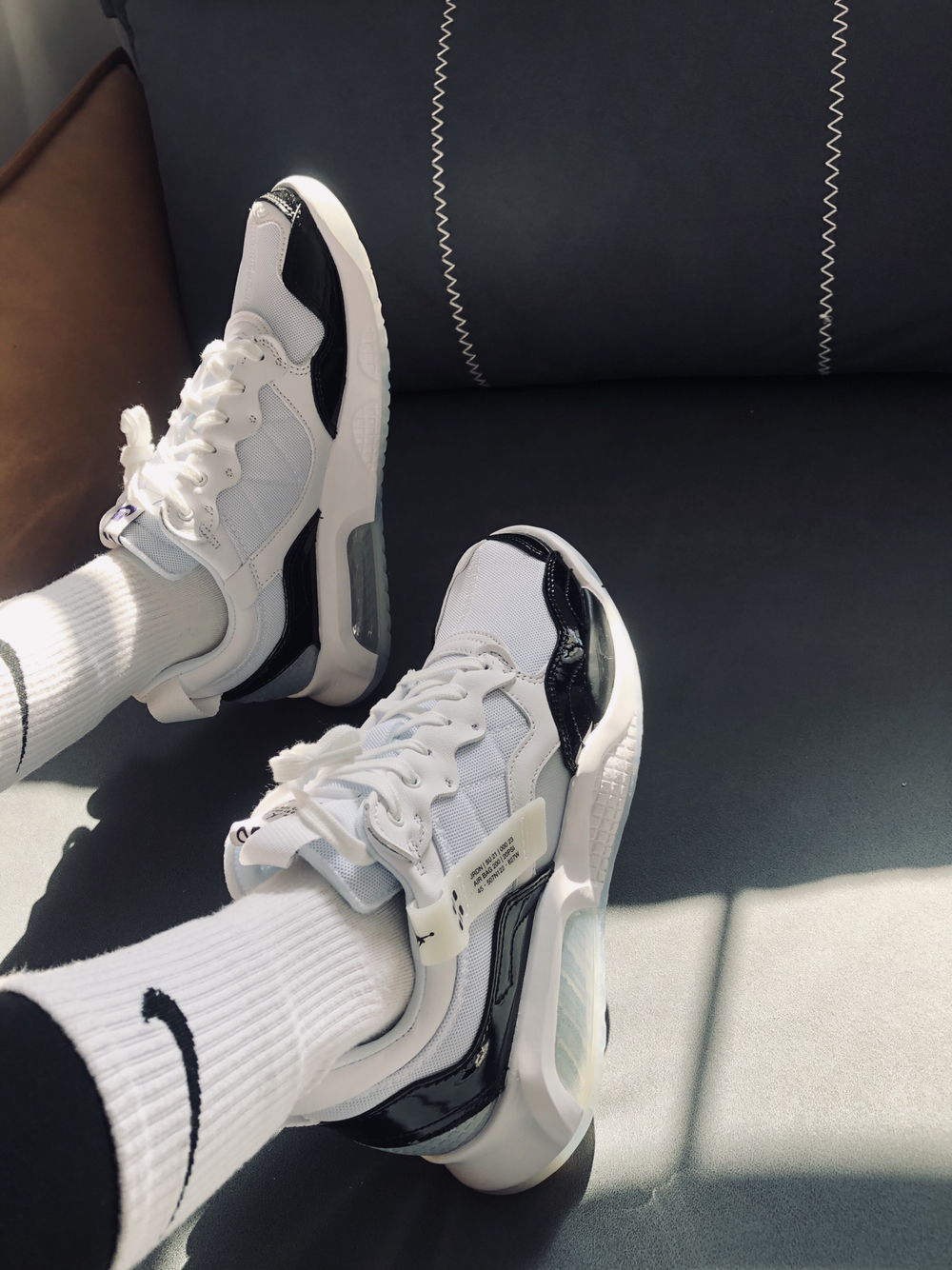 🖤球鞋名称 Air Jordan MA2 "Concord"低帮拼接运动跑步鞋 康扣 白黑蓝 🤍外观配色 鞋身采用翻毛皮,全粒面皮革和多种织物组合设计,结合匠心独具的标签,技术微型图案和泡沫毛边,水晶鞋底防滑耐磨,颜值超高,鞋垫采用蜂窝孔设计风格,透气舒适, 💯整体评价 尺码标准,鞋子方便穿脱好打理,平时搭配衣服运动都适合