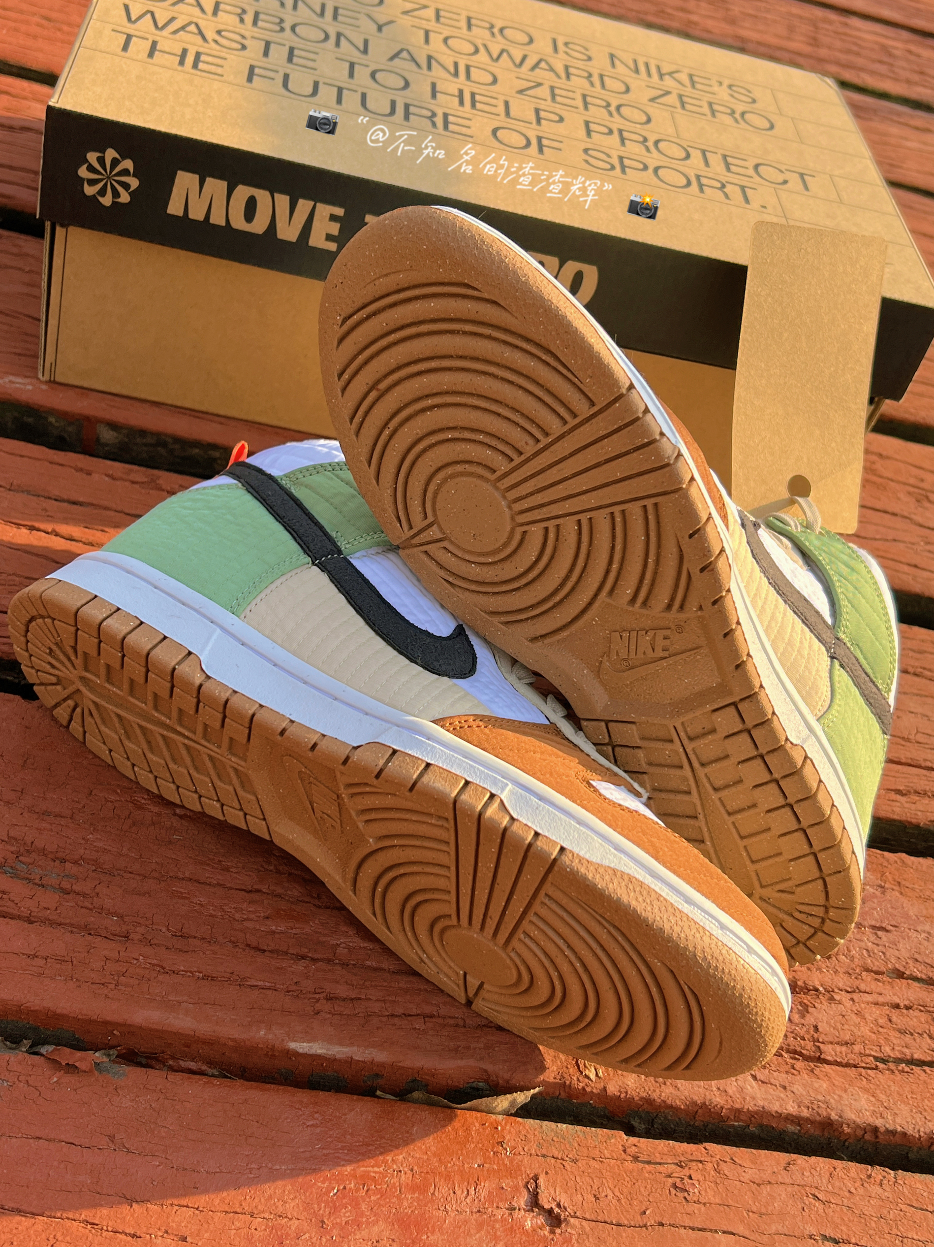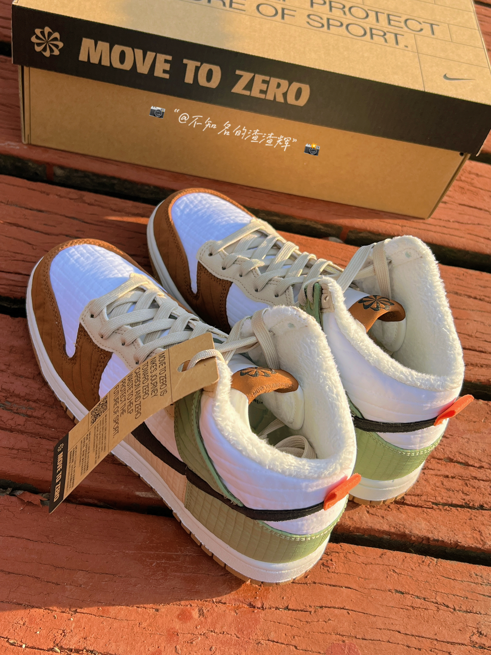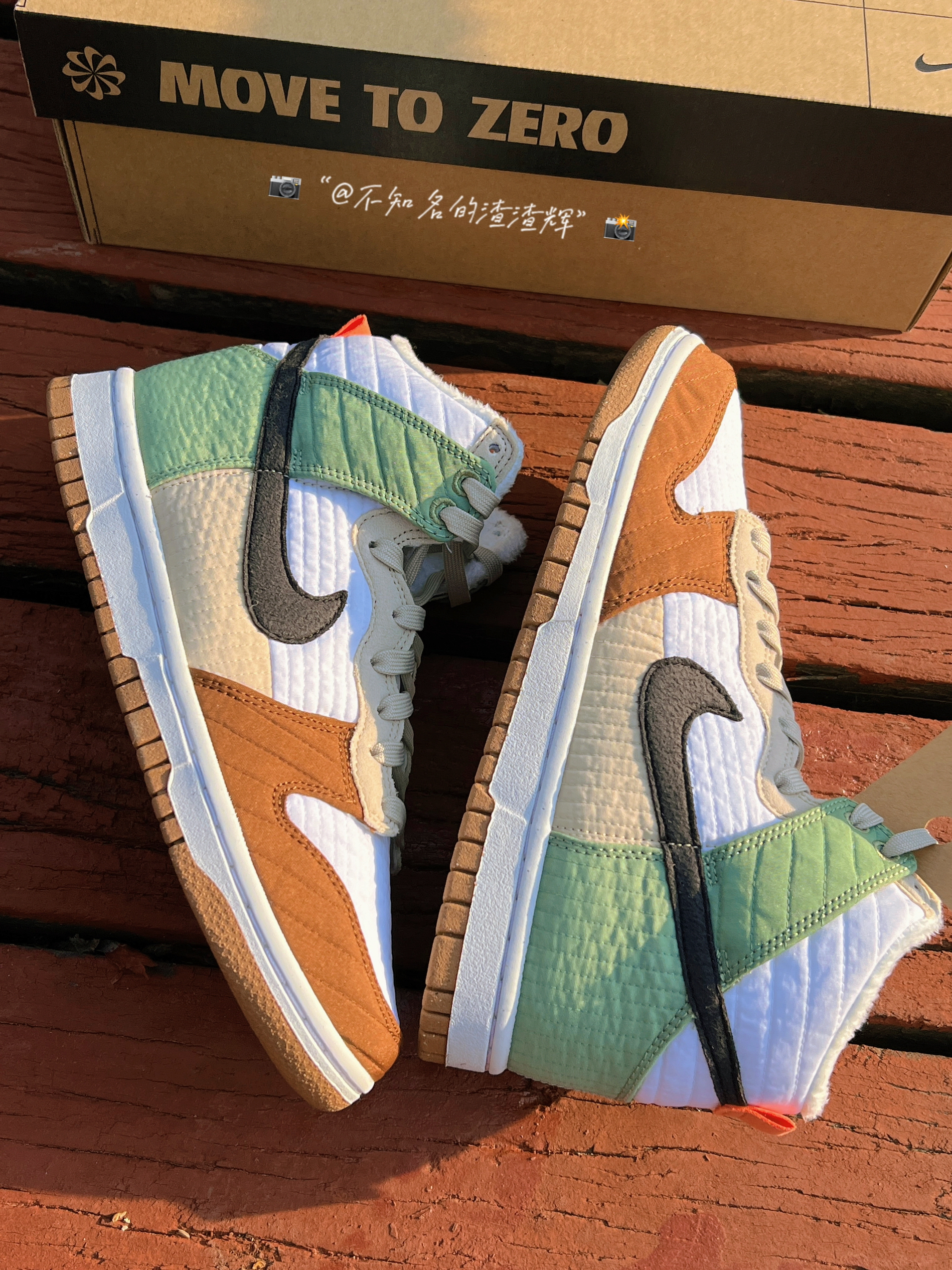 ♻️:Nike Dunk High LX NN 复古休闲板鞋 女款 白棕绿拼接 军大衣 环保回收材料 ♻️:这双鞋子鞋身采用了白色、棕色、米色、绿色拼接而成,Swoosh采用了黑色,配色很适合冬天,鞋子采用了织物材质(类似棉服夹克)而且鞋子内衬有着加绒材质,保暖性很好,外底采用了天然橡胶材质和可回收材质组成,还有着颗粒设计,不愧是环保鞋,鞋子是真的轻 ♻️:颜值的话还不错,冬天穿也挺好搭衣服,...