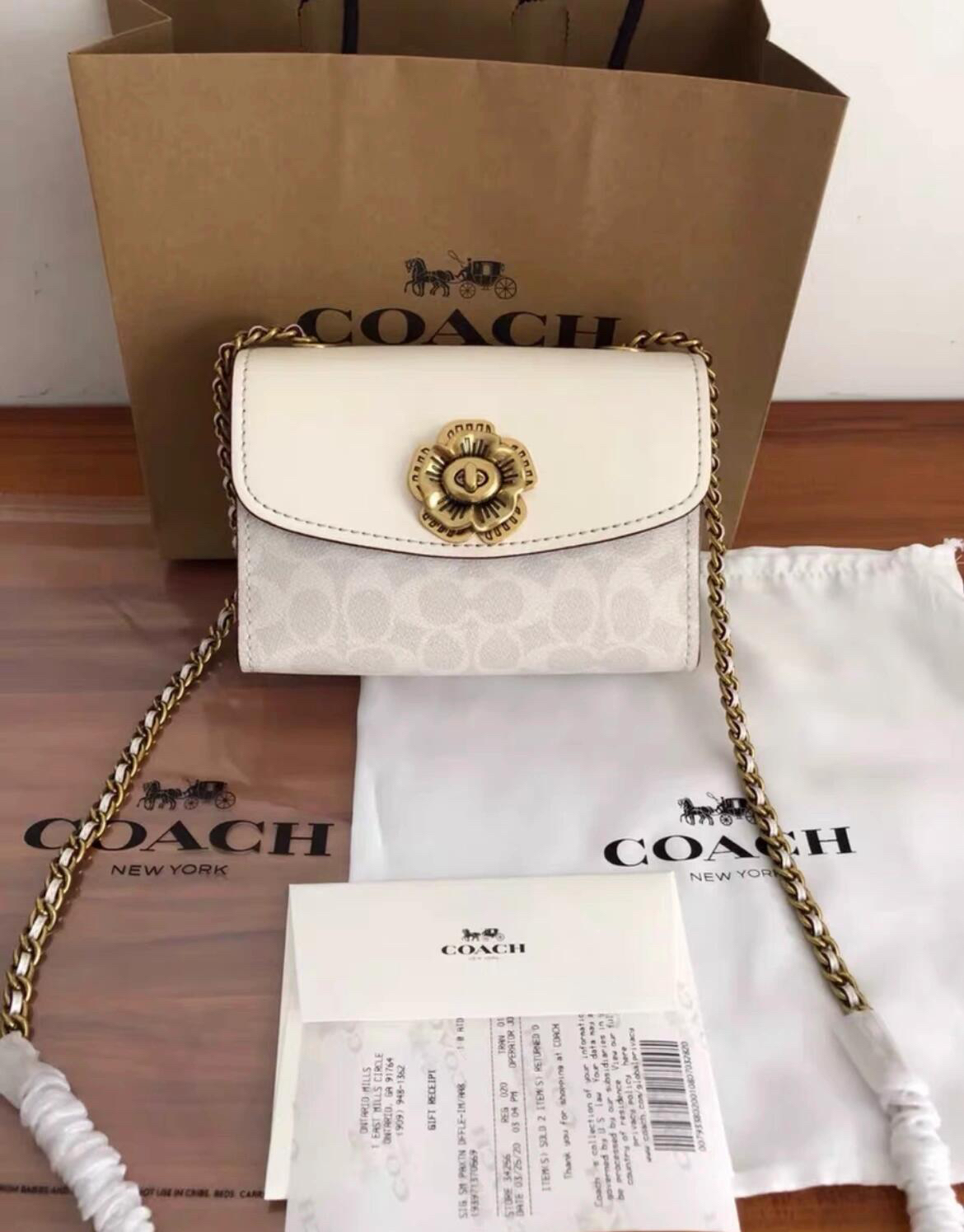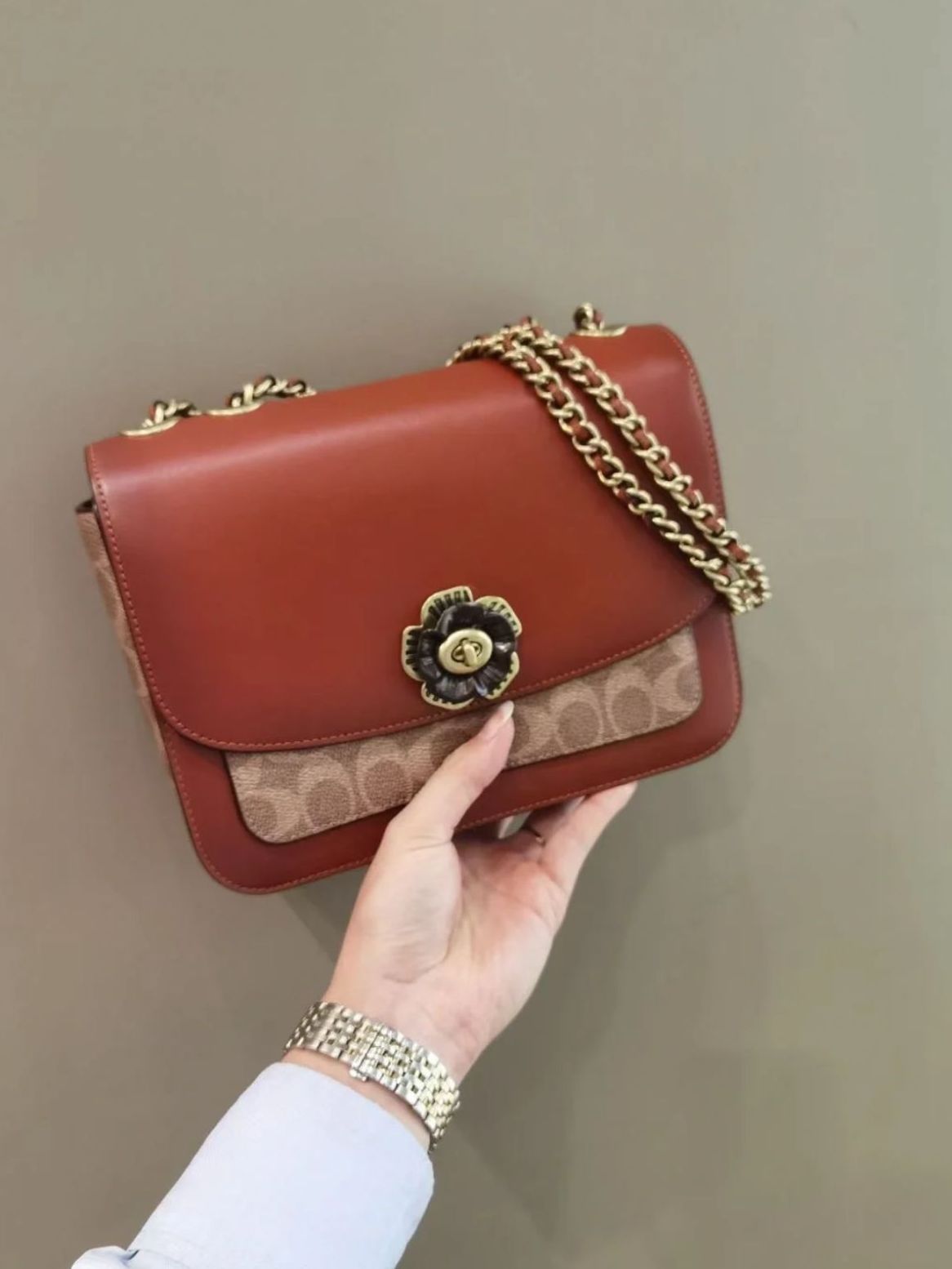 🌈✨Coach山茶花系列终于安排上了,OMG!真的无敌巨好看!超级复古,有气质而且特别百搭。这款包包设计的非常养眼真的很值得入手,包的版型非常立体,方方正正的版型,老花拼接皮质加上铆钉的设计,让包看起来一点也不老气,增加了复古气息,整体让包包看着特别精致。 1⃣手感:特别软,摸着特别舒服,包身很轻哦而且不会变形!!! 2⃣搭配:搭配风衣真的爆炸好看,平时再搭配一条牛仔裤,回头率超高,裙子,日常款休...