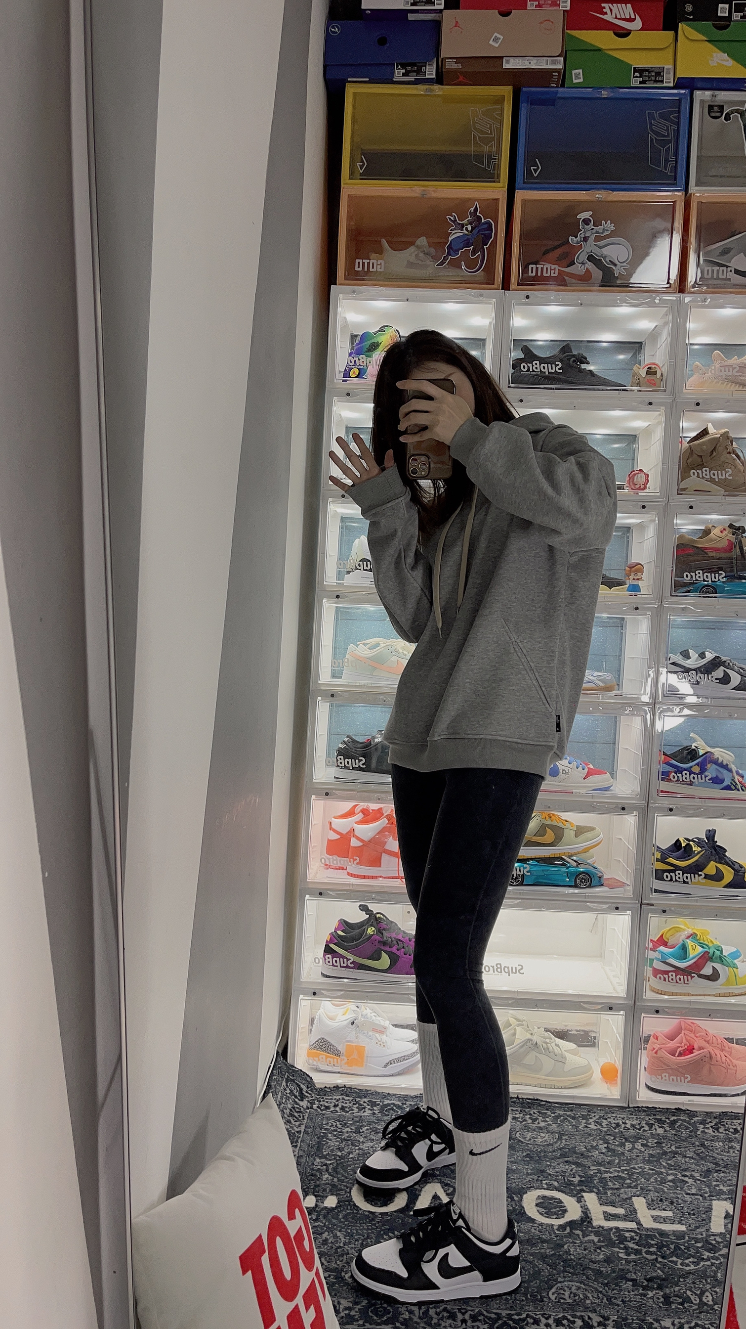 👚:篮人卫衣连帽 👖:弹力休闲牛仔裤 🧦:耐克白色训练运动袜 👟:Nike Dunk Low 黑白熊猫🐼 🌈:秋冬卫衣穿搭对镜自拍,和我的熊猫dunk完美百搭,也可能是熊猫dunk比较百搭,让我非常喜欢,你们觉得怎么样呢?