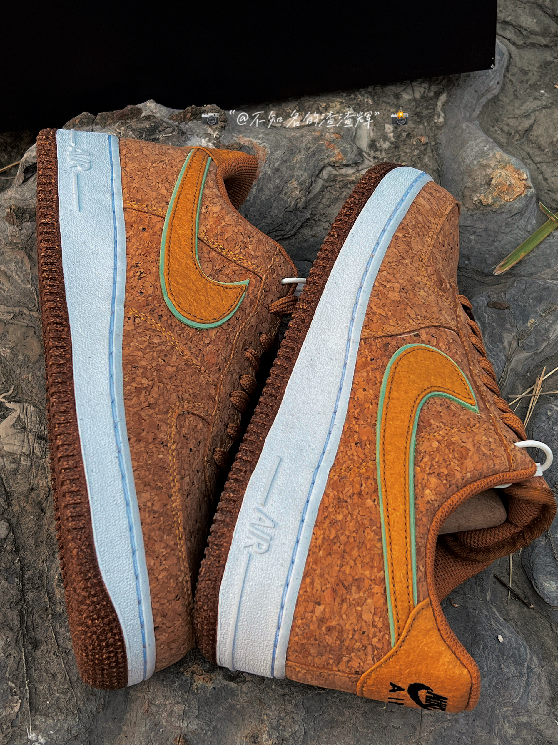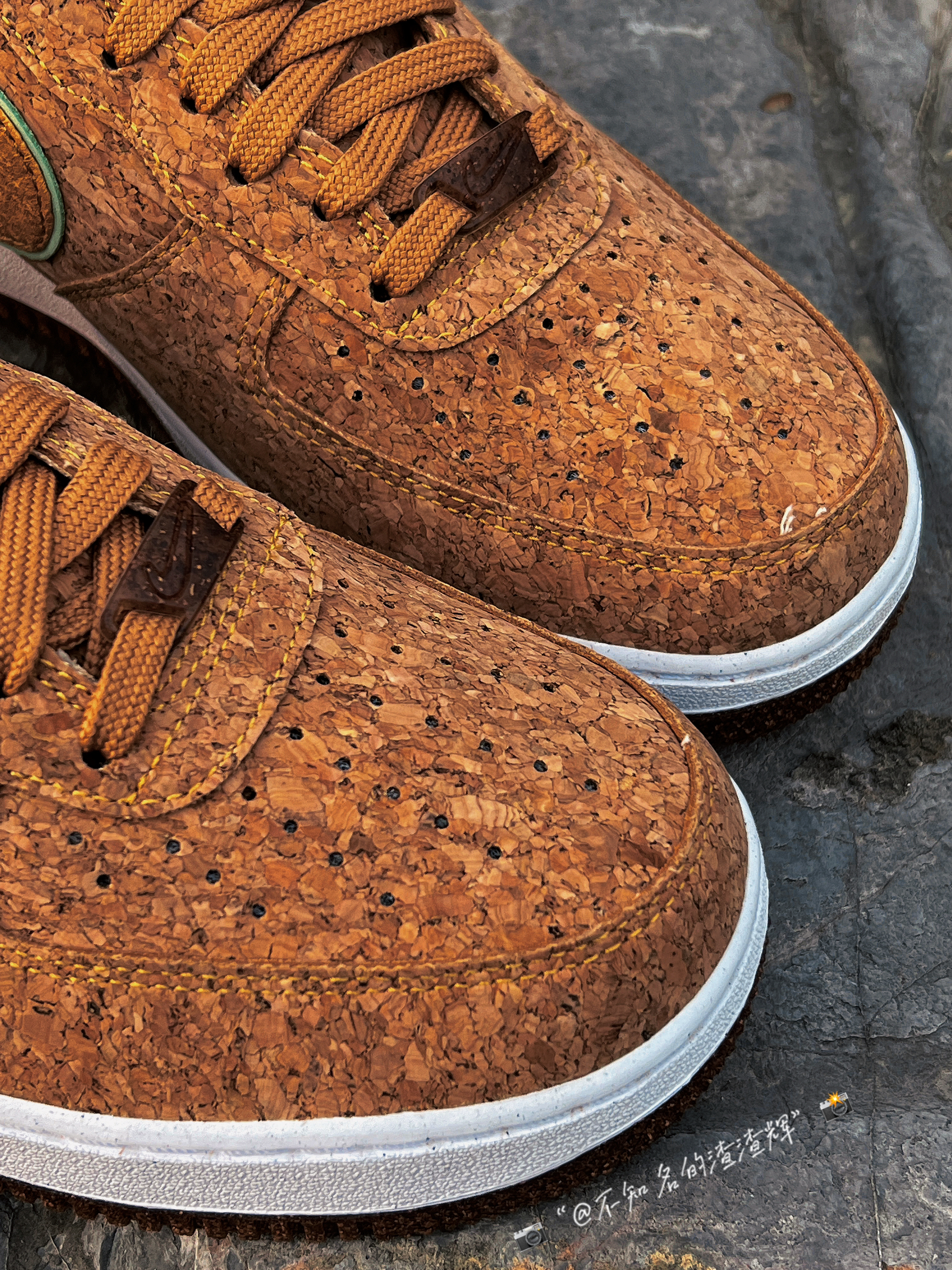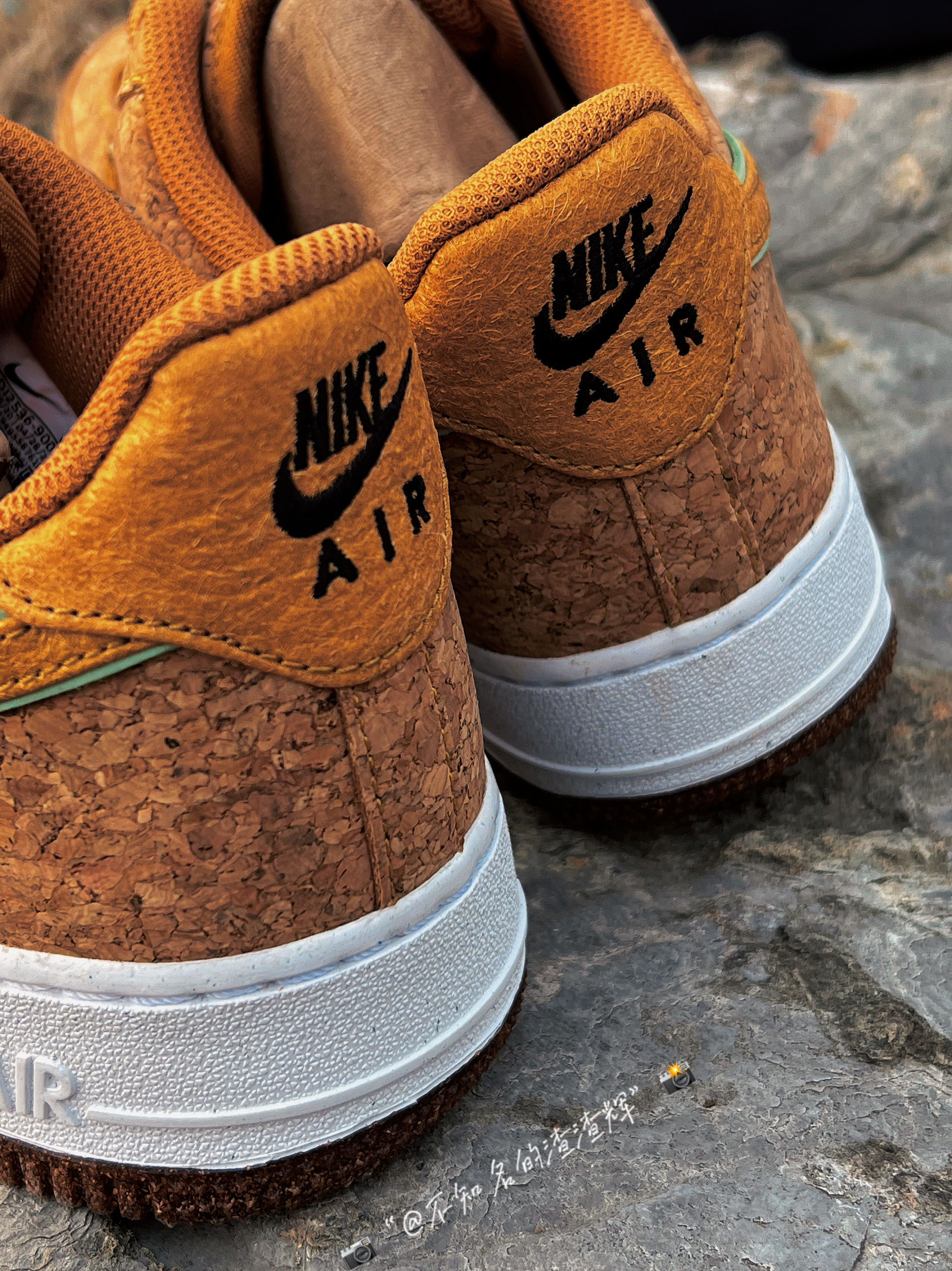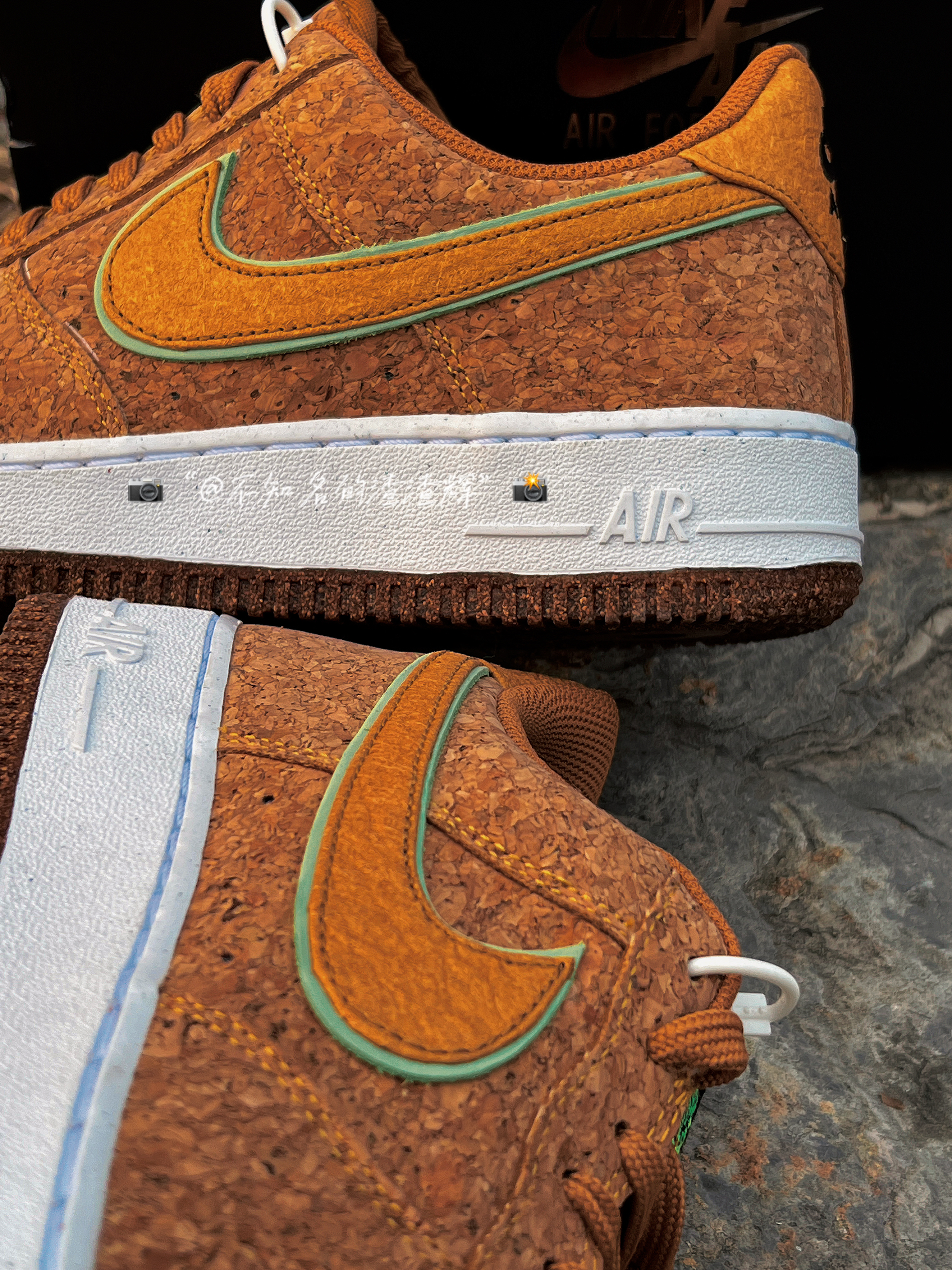 🍍:Nike Air Force 1”07 Low “Pineapple Cork”软木塞 菠萝 棕色 🍍:这双鞋子采用了回收软木鞋面,Swoosh采用了浅绿色和黄色双层叠加设计,鞋舌有着菠萝🍍印花,白色中底依旧干净整洁,外底的话采用了“软木塞”独特设计风格,中底采用了Air Sole 缓震气垫,脚感依旧越踩越舒适 🍍:不得不说看这双鞋子眼多少有点花,有密集恐惧症的朋友应该不会喜欢吧 🍍:尺...