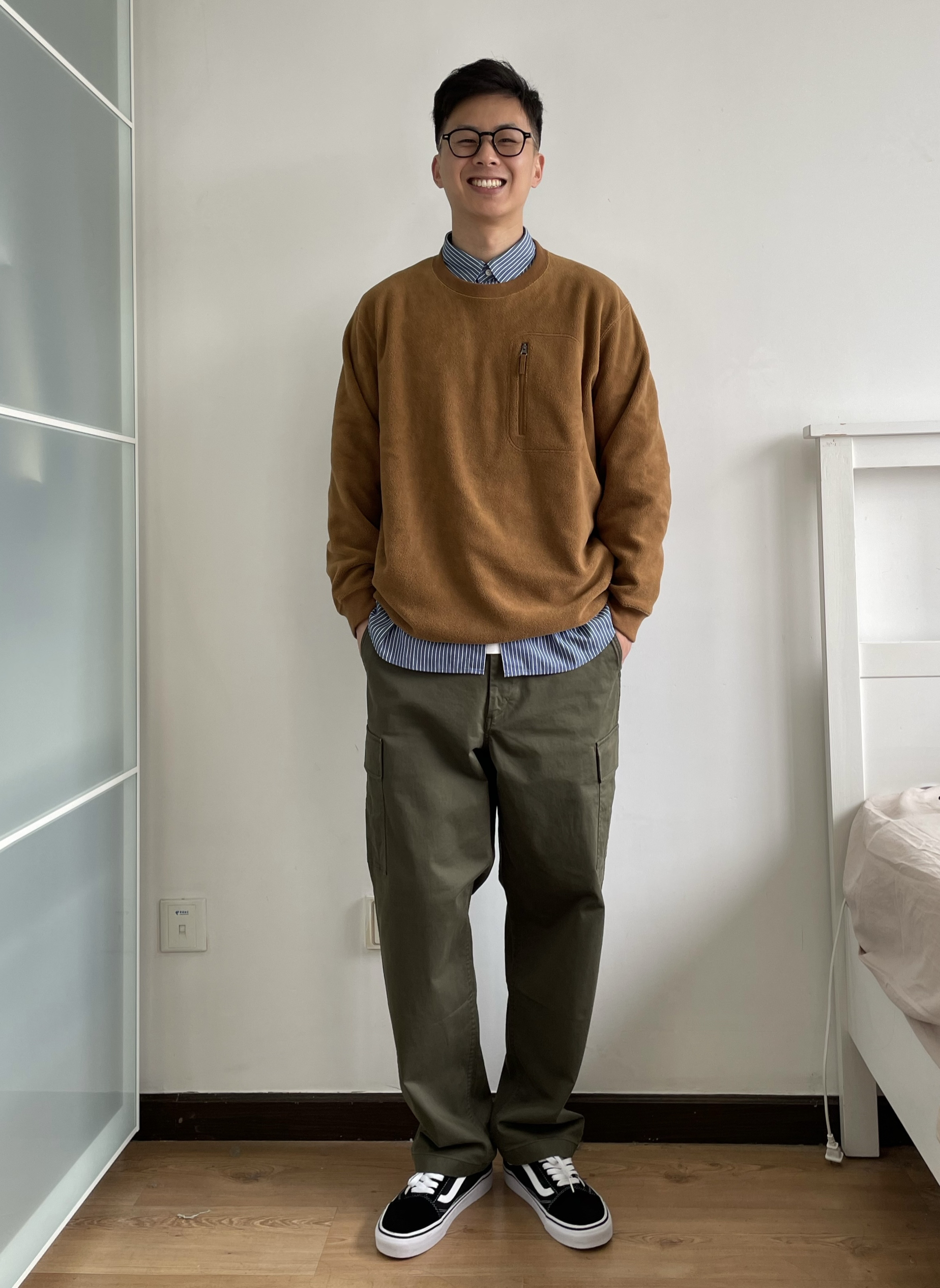 这件上衣是我个人认为优衣库目前非常值得购买的摇粒绒,性价比爆棚💥。 我当时原价购买,目前平台只需要98元,现在买太香了。 上身效果非常好,适合户外风格及日系穿搭,搭配渔夫帽也是极好的;里面可以叠搭衬衣及T恤;裤子也是前段时间一起购入。