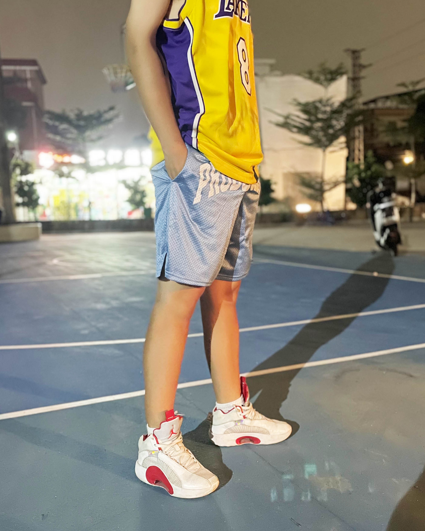 衣服:Nike 湖人球衣 裤子:PDCT 大Logo网眼运动短裤 鞋子:Air Jordan 35 今天就穿这身去打球,短裤网眼设计是真的透气舒服,大logo显眼,日常休闲也是可以的!再搭上AJ35 今天打球必须火力全开