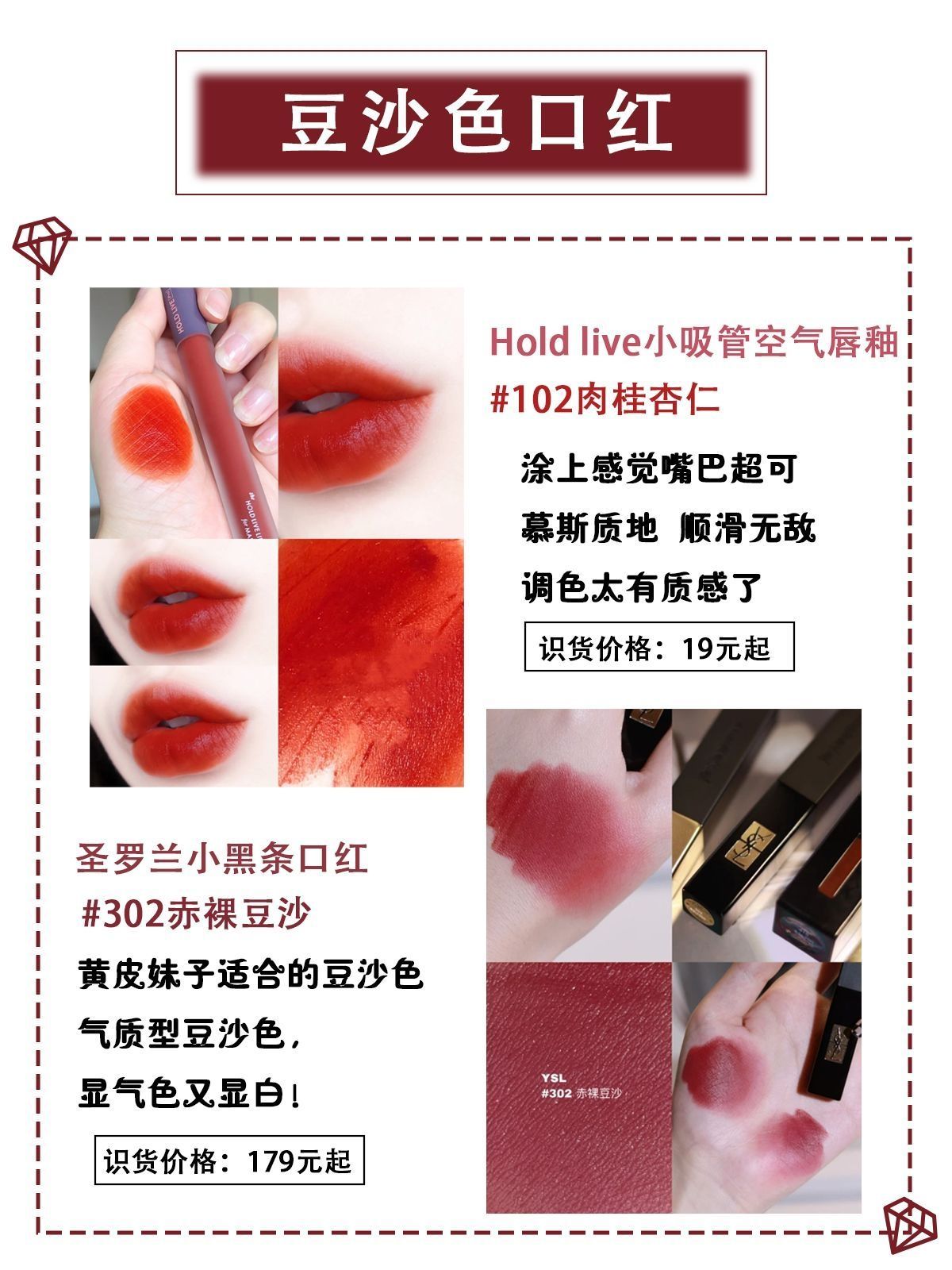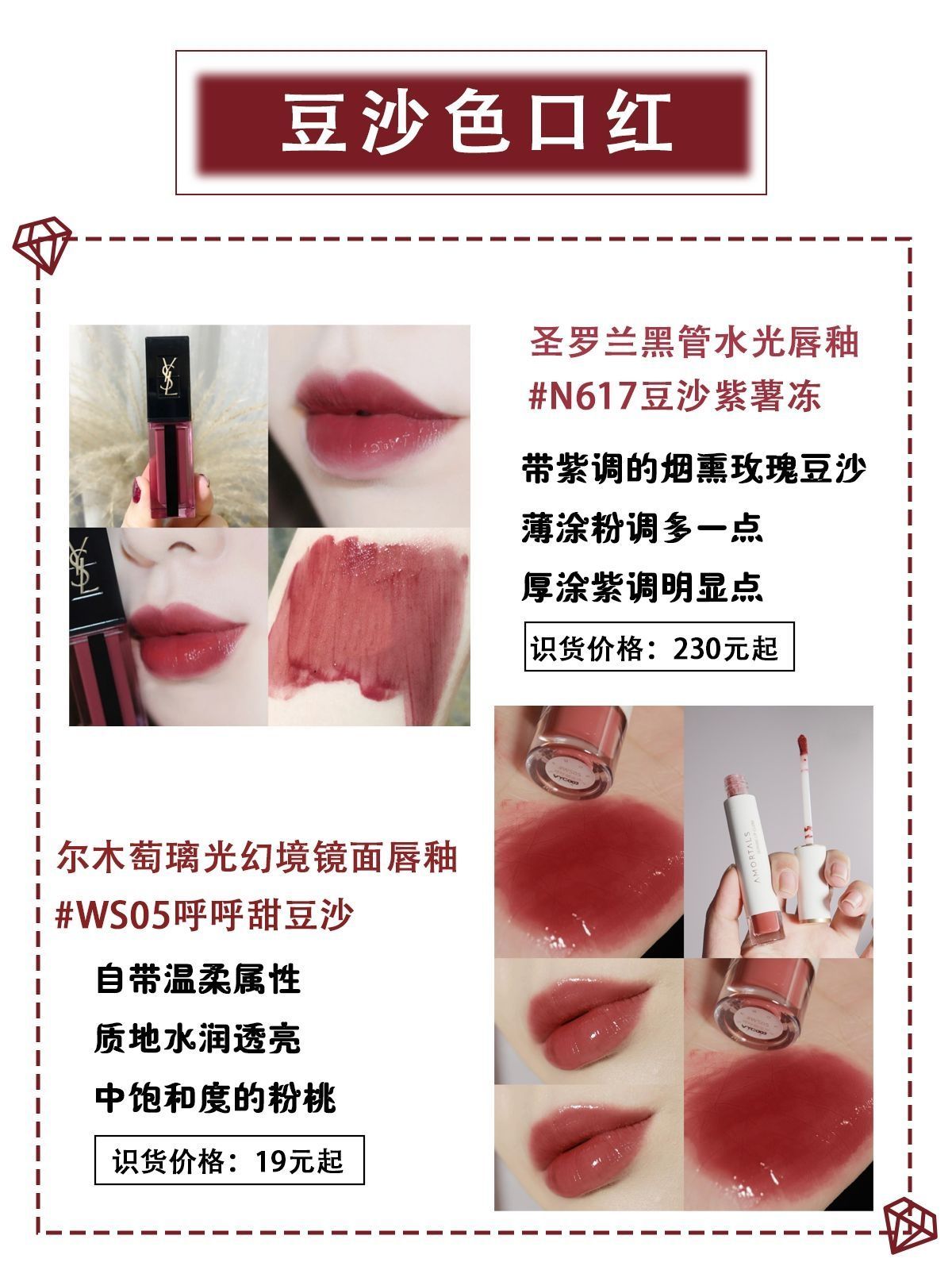 本篇笔记关联了YSL/圣罗兰 黑管水光唇釉 水润亮泽 6ml N617 豆沙紫薯冻、露华浓 黑管唇膏口红 #225棕调豆沙、3CE/三熹玉 丝绒唇釉 雾面哑光持久 4g 豆沙红daffodil 等商品,为用户提供真实的使用体验和购买参考。