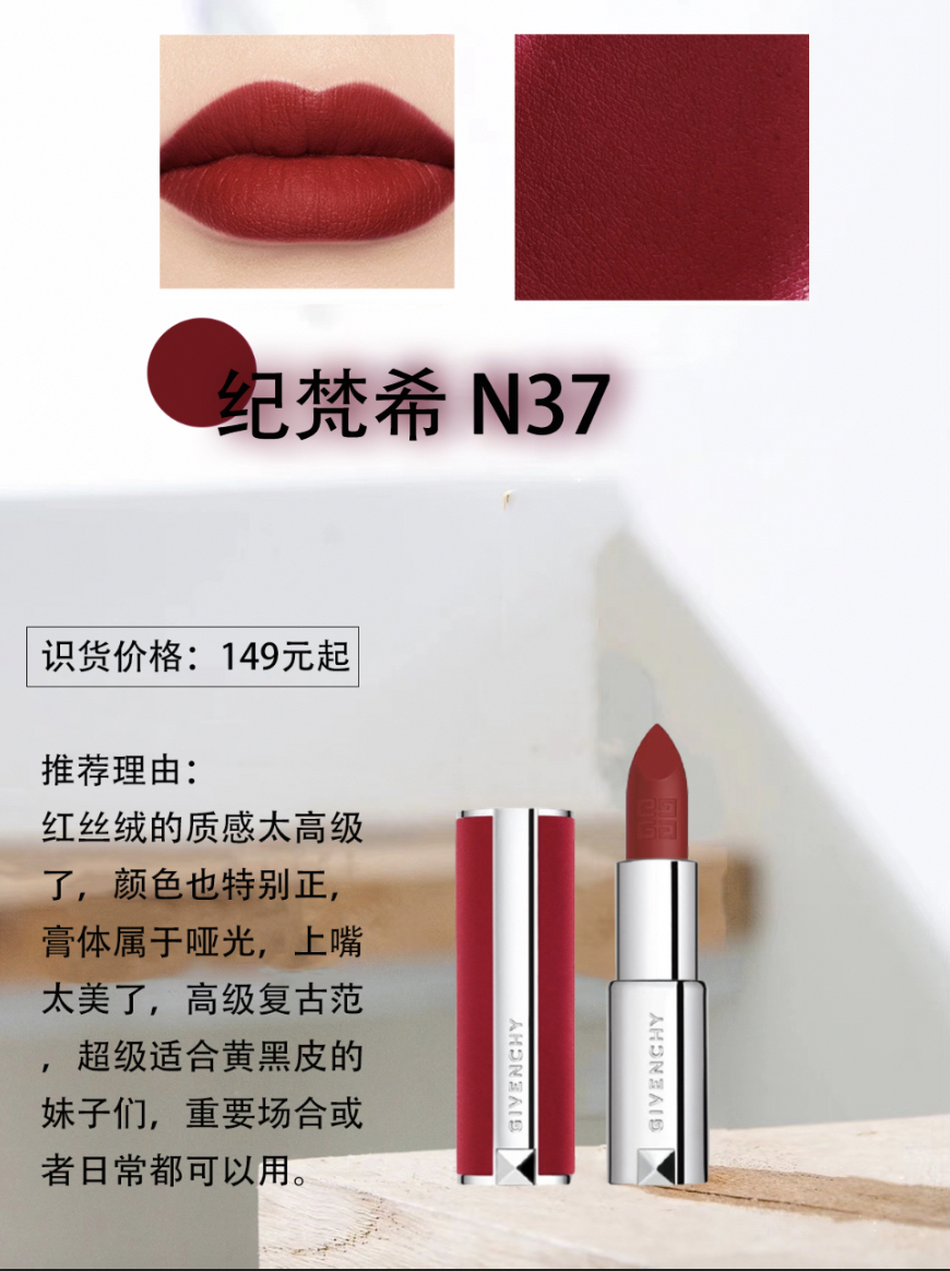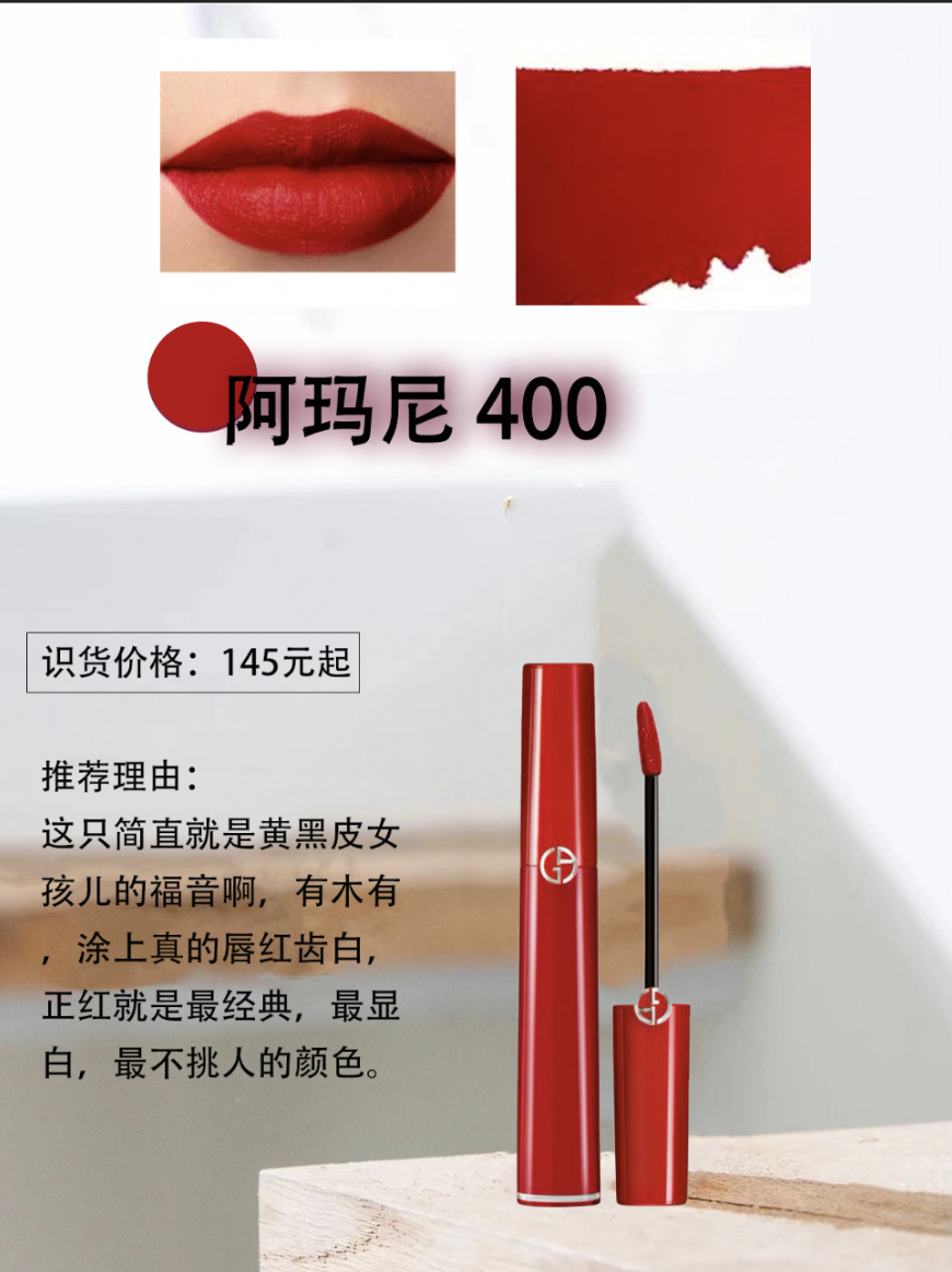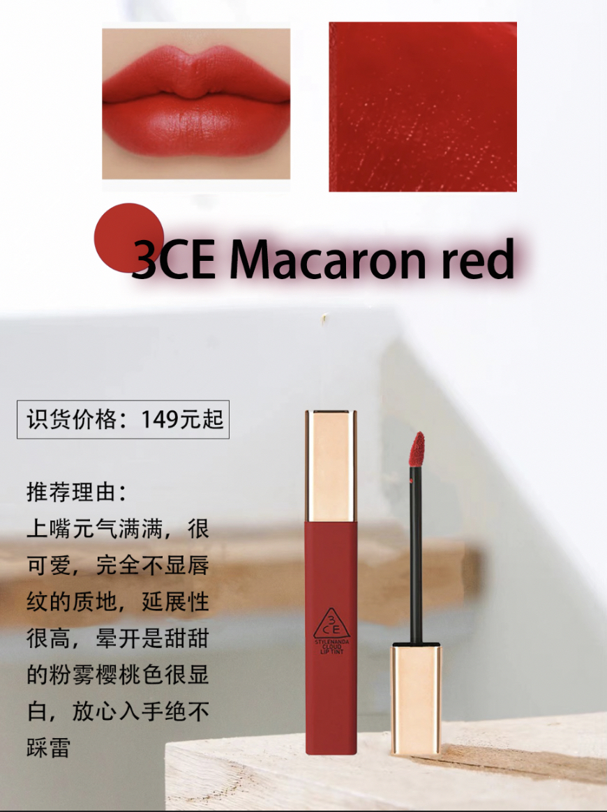 本篇笔记关联了Givenchy/纪梵希 高定红丝绒哑光唇膏 雾面 3.4g N37朱砂砖红、GIORGIO ARMANI/阿玛尼 红管系列臻致唇釉 柔雾丝绒哑光显白雾面 6.5ml 400阿玛尼红THE RED、3CE 云朵哑光雾面唇釉 4g 正红色MACARON RED等商品,为用户提供真实的使用体验和购买参考。