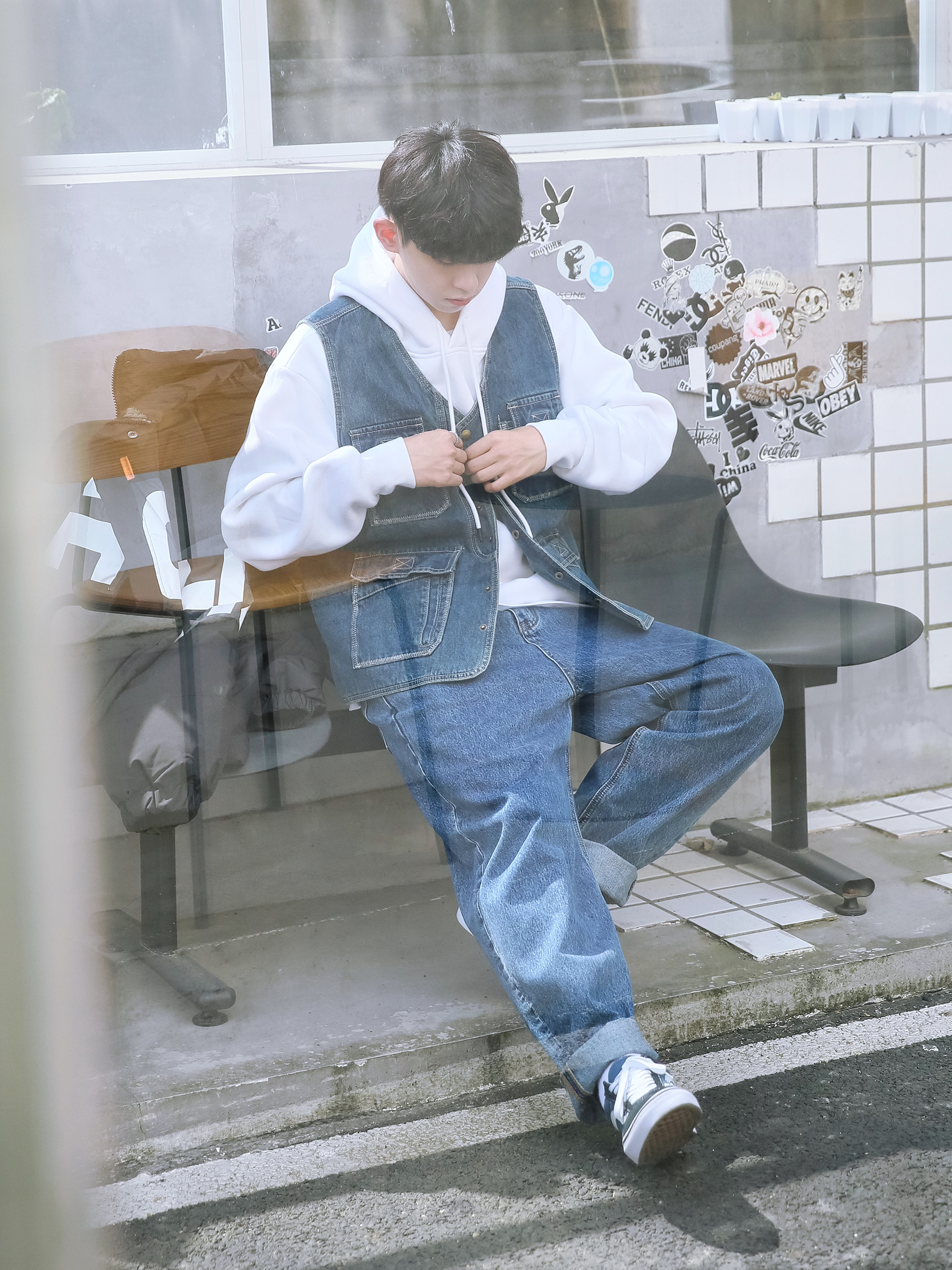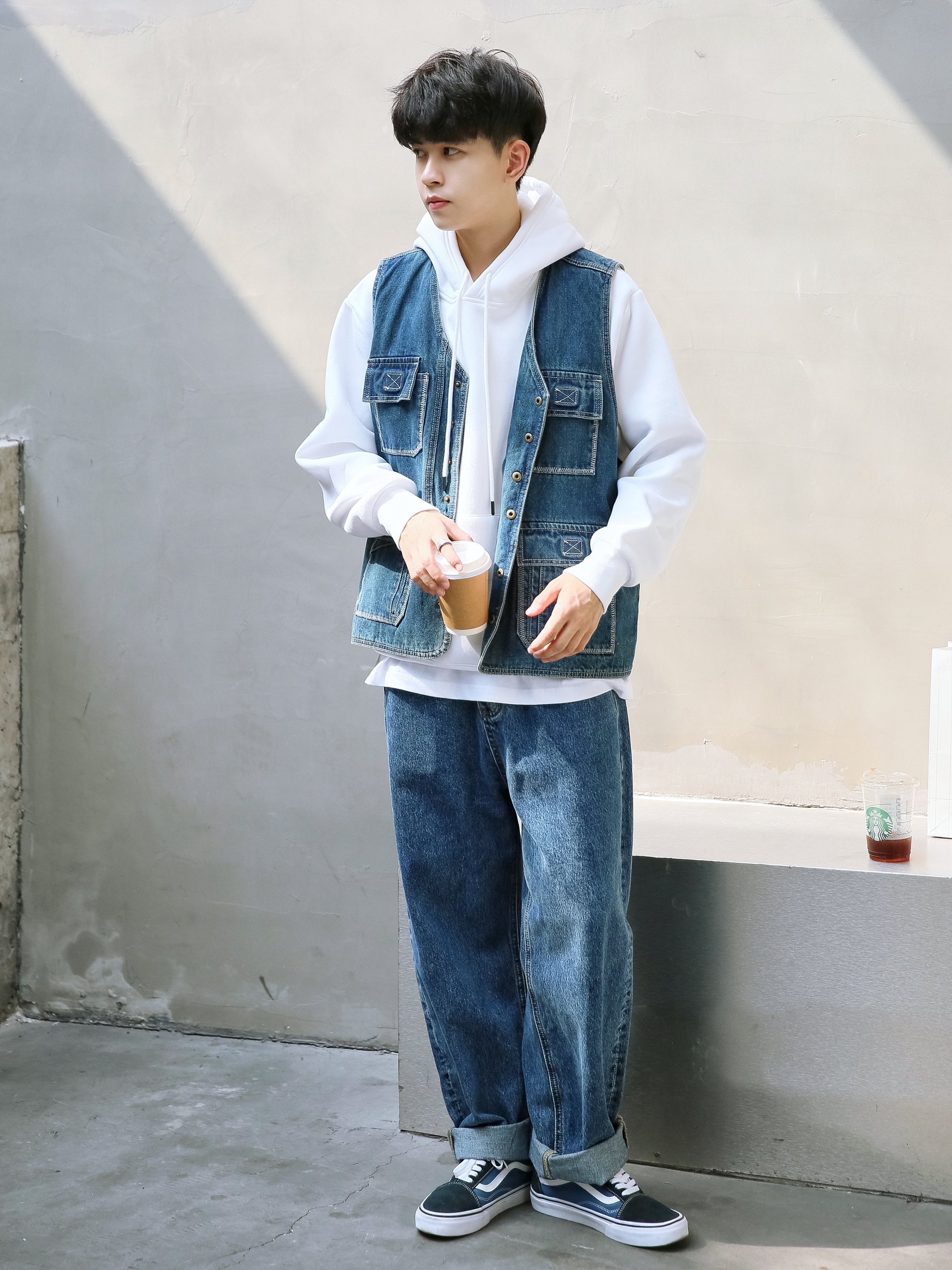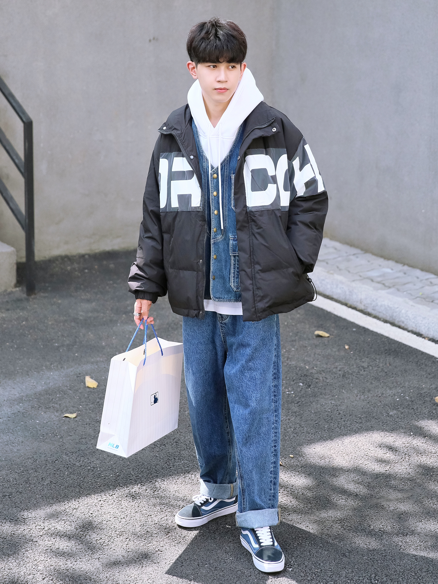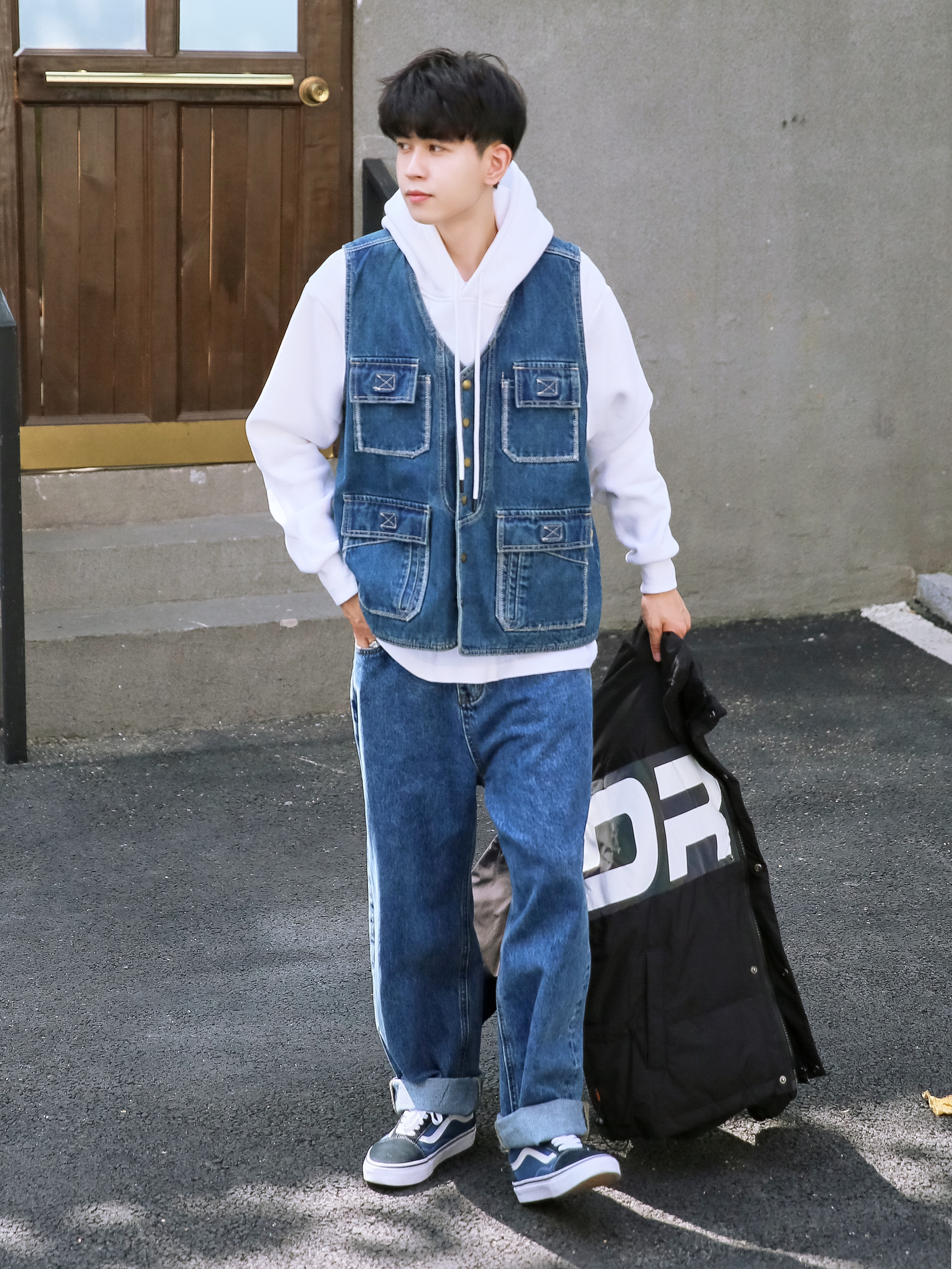 🔹是时候叠穿了!寒冬已经到来!今天分享一套“卫衣”、“马甲”和“棉服”三层叠穿混搭,真的好适合男生冬季穿搭哦!室外穿好看又不冷,室内脱了棉服还是好看有层次感! — ⚠️身高|体重:176CM|60KG(🉑️参考) — ⚫️·黑色立领棉服—PD大人; 🔵·蓝色牛仔马甲—P & Design; ☁️·白色连帽卫衣—DONTSTOP; 👖·蓝色牛仔直筒裤—PD大人; 🧦·白袜—LARGEE; 👟·蓝黑拼...