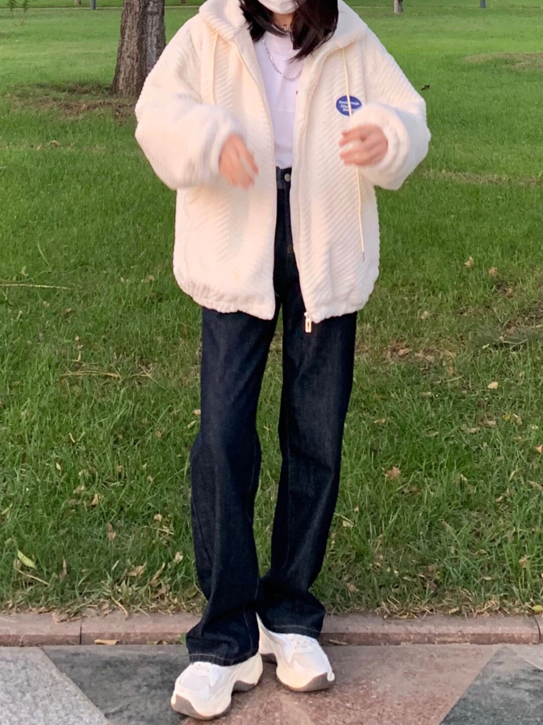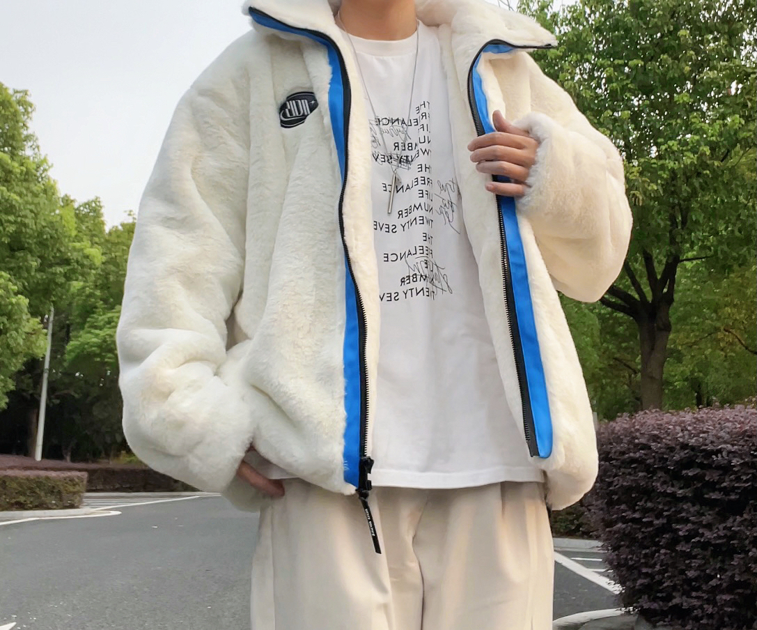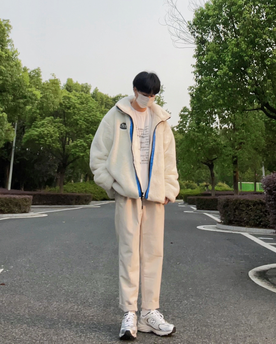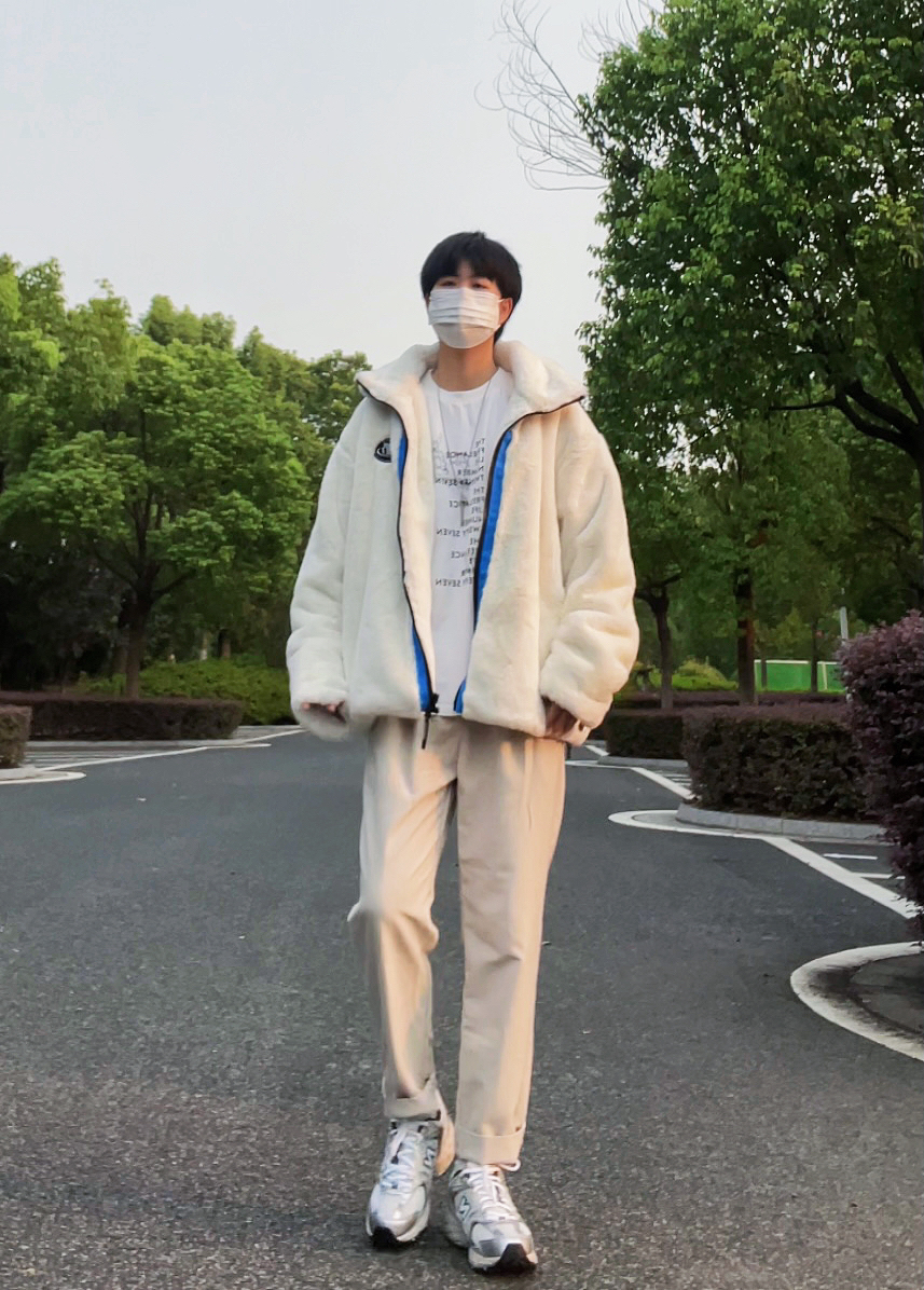 ✨今日穿搭 丁程鑫同款双头熊仿兔绒外套(ACHS AWAKE) 白色T恤打底 卡其色西装裤 ————————————————————— ✨冬季外套穿搭 仿兔绒外套穿搭 冬季男友穿搭 男友风穿搭 卡其色西装裤穿搭