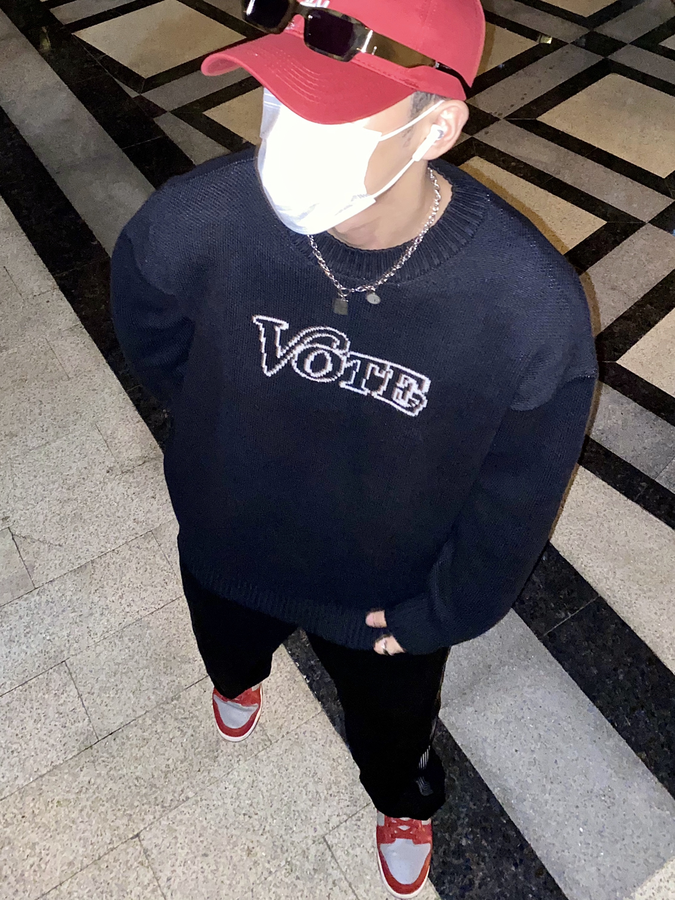 💥天气转冷🌈衣柜里保暖少不了的是毛衣🔆其实毛衣也可单穿🐛今日搭配以黑红为主✨毛衣是宽松版型🉑️ 依胡/vote 蟹/dunk
