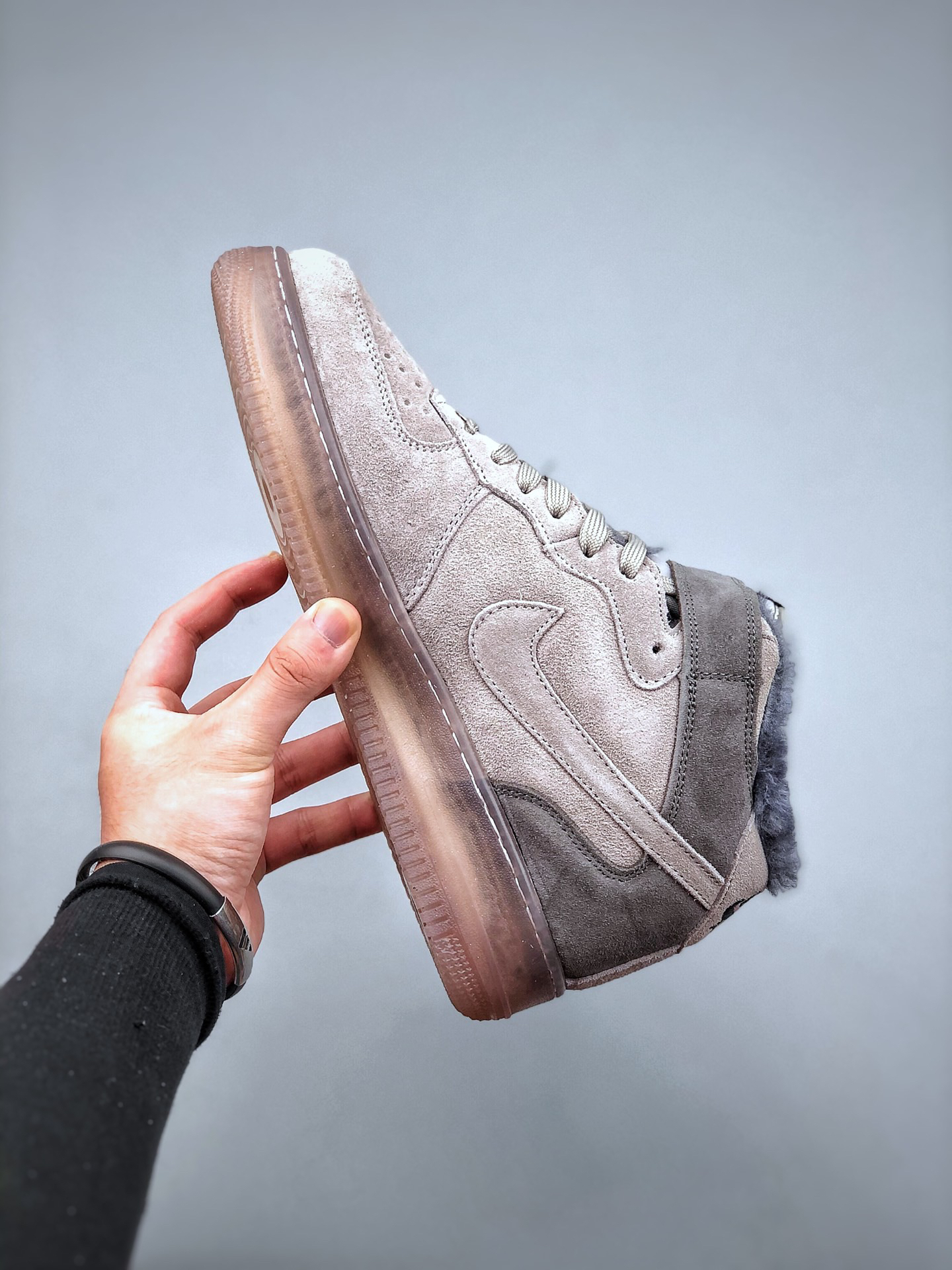 Nike Air FORCE 1 Lx 空军解构鞋 整体以最经典的卫冕冠军加绒Air Force 1 为设计蓝本,并融入当下最火热的解构设计,绝对满足你对个性的所有需求。最吸睛的当属鞋身中部的 Swoosh 设计,灰色的翻毛皮与白色的皮革拼接后,以更立体的造型呈现于鞋身,质感十足。同时也将鞋舌内外调换了位置,裸露出的尺码标签,尽显个性气质。