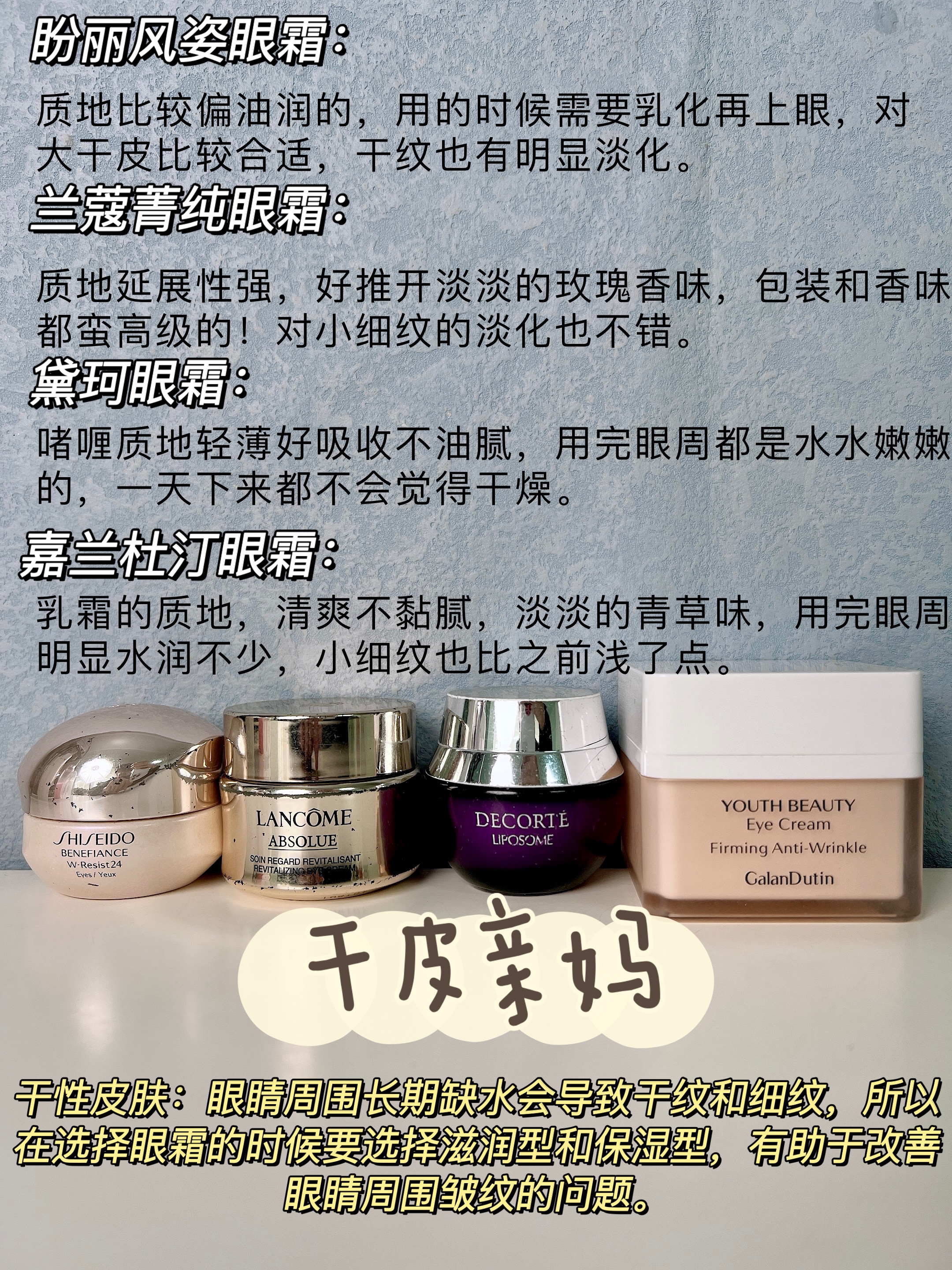 别划走!全网最全不同肤质眼霜! 姐妹们选护肤品还是得根据自己的肤质来啊! 不然真的会踩雷的! 这些眼霜我和我小姐妹们都试过还不错 姐妹们可以放心入手!