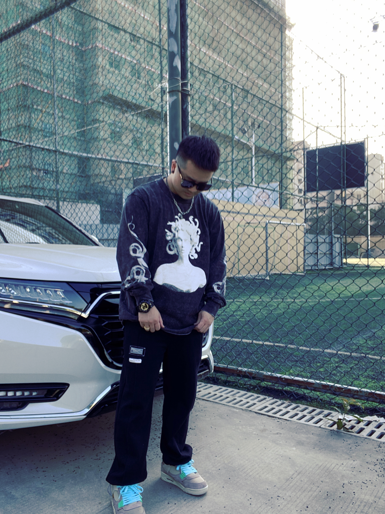 身高|体重:171 | 150 🧍♂️ 穿搭风格: Vibe | 工装 | 潮酷 👔 上衣:S.view美杜莎休闲夜光长袖 时尚潮流 | oversize 很好搭配 👖 下装:二十八间休闲长裤 通勤穿搭 | 容错率很高 👟 鞋子:Union×Air Jordan. 4 灰褐色 个人觉得最新款Aj4联名质感不错
