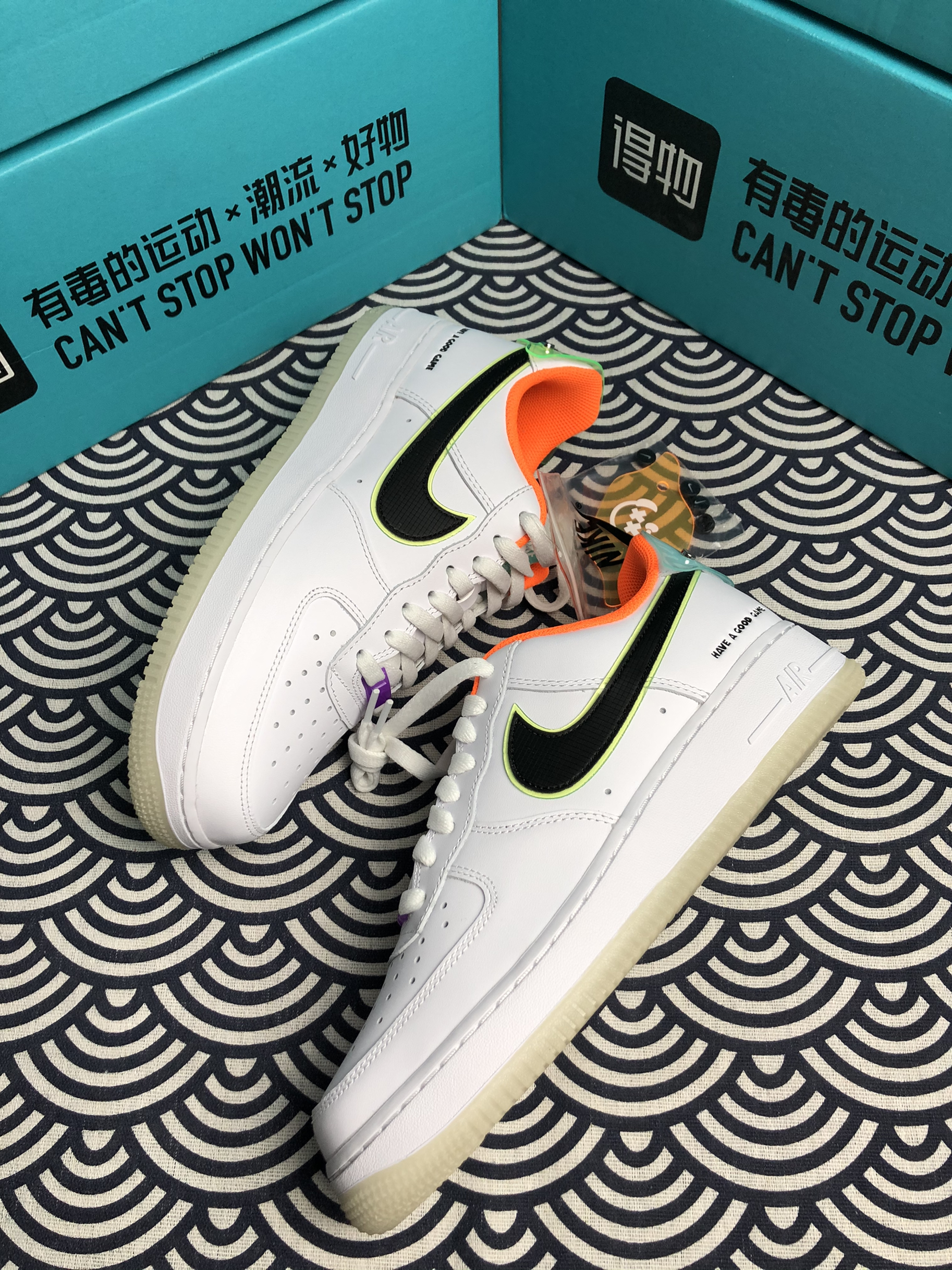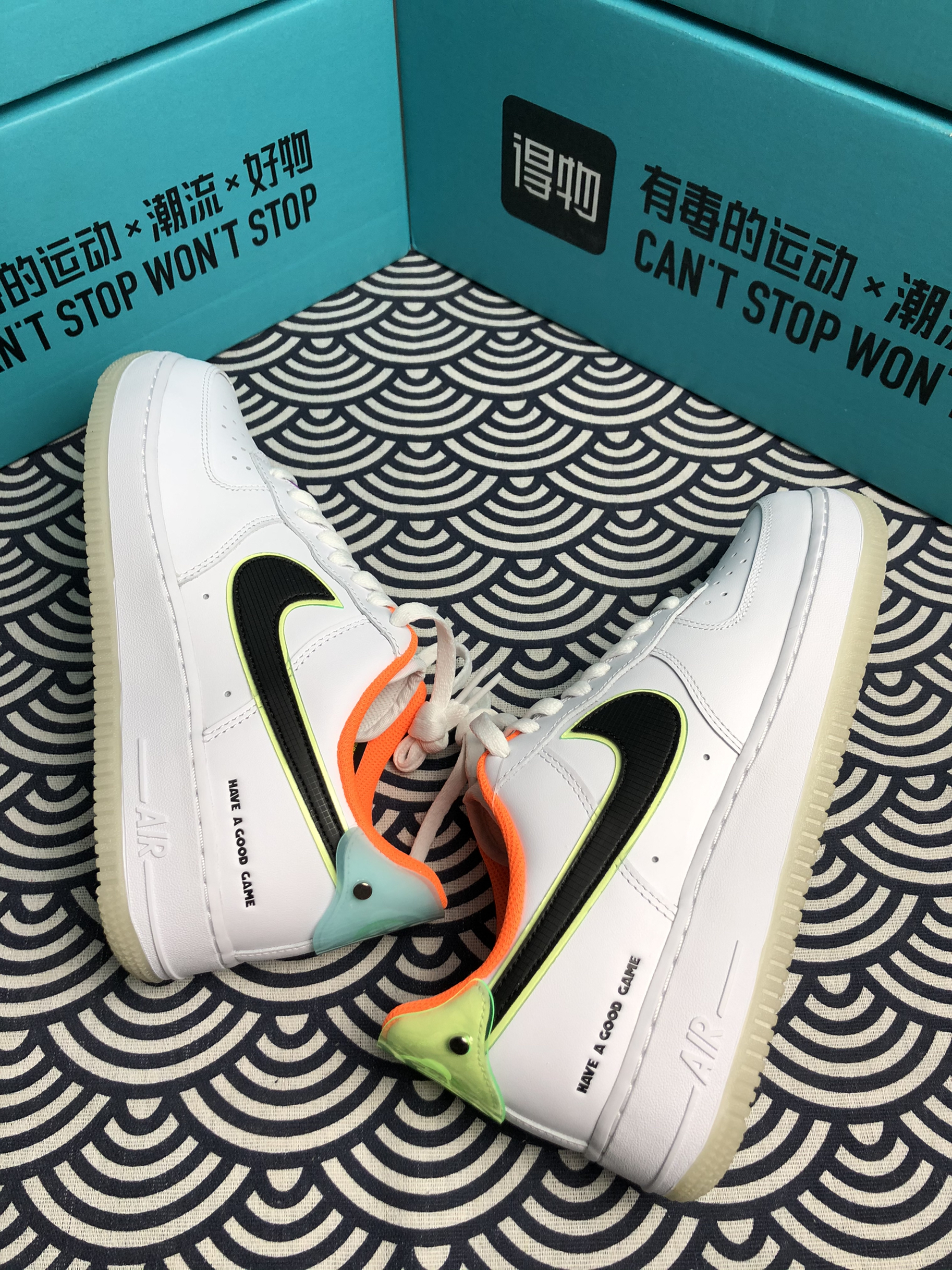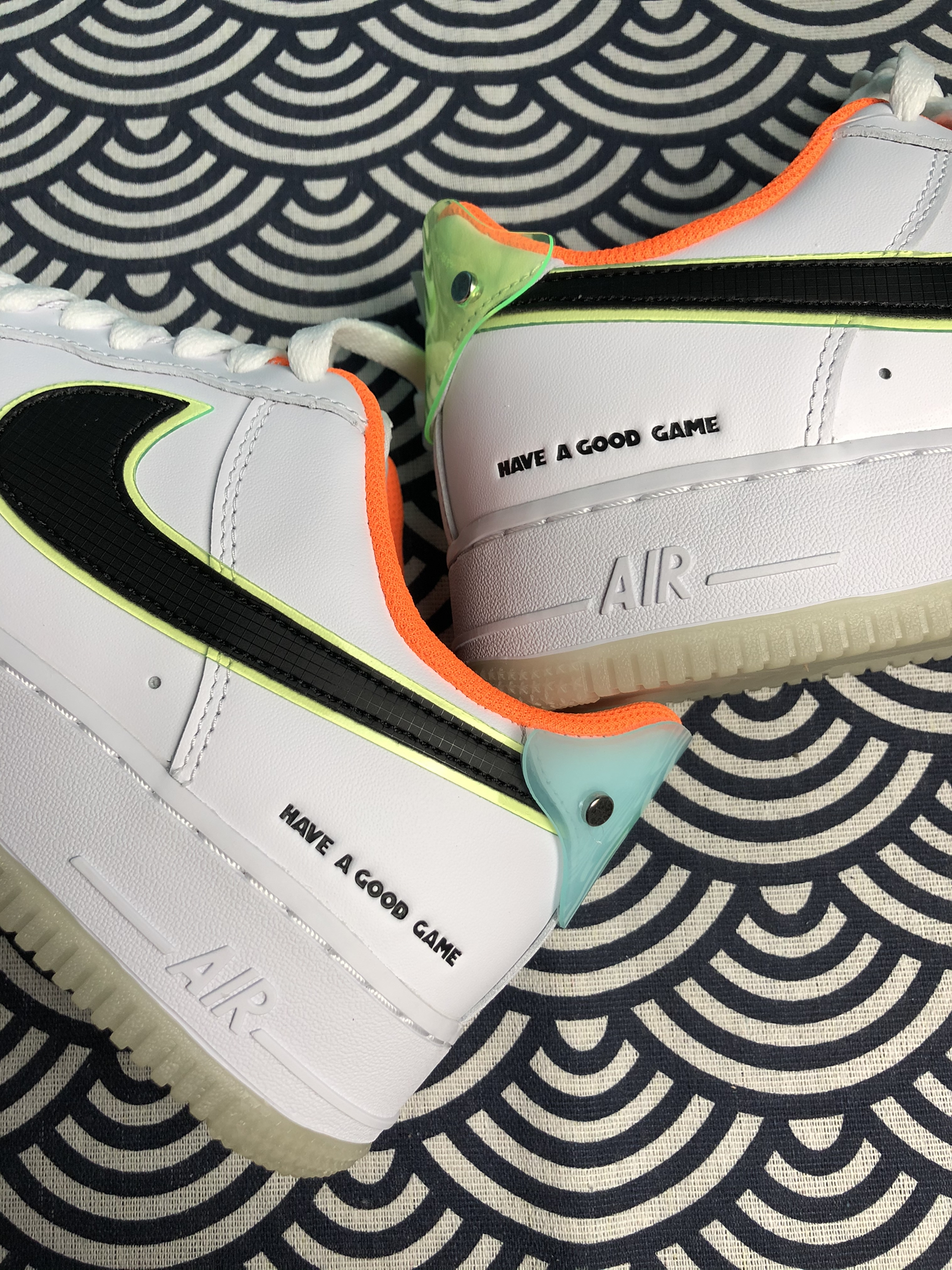 Nike Air Force Low "Have A Good Game"白橙 电竞系列 💫:随着一年一度的LOL全球总决赛的到来,Nike也推出了这双电玩系列,这双鞋让人眼前一亮。 💫:整双鞋子以经典的白色为主色,添加多种颜色的小细节进行点缀,侧面Swoosh采用网格设计延续至后跟,鞋侧身印有「Have A Good Game」主题标志,后跟处为半透明的游戏徽章logo,水晶大底的设计也为这...
