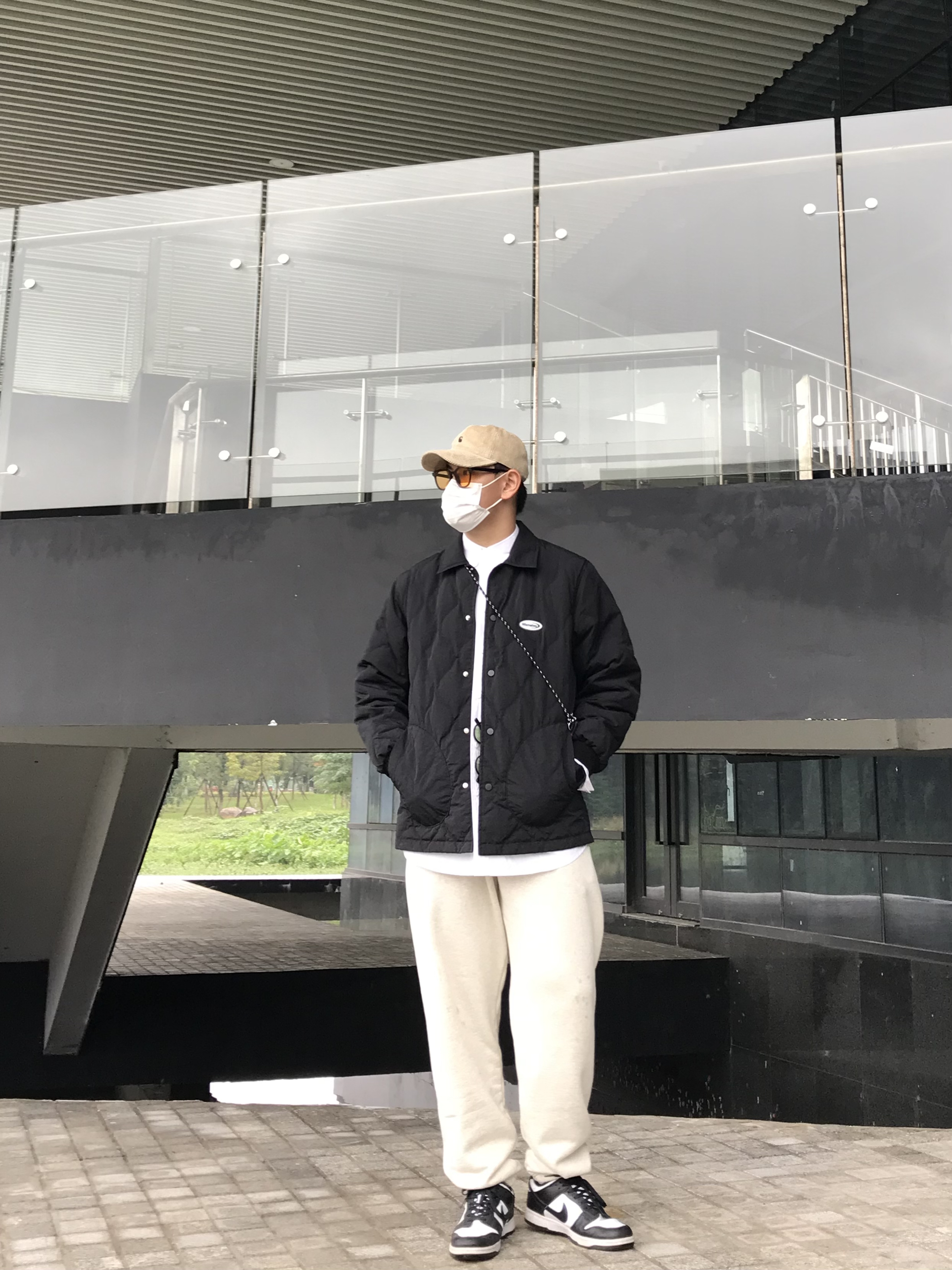 入秋了之后一件薄款棉服是必不可少的,日系cityboy一件黑色的棒球棉服上身效果非常棒。配上一些小包配件显得细节感十足,秋冬两季都可以穿。 上衣👕:Focos Studio 裤子👖:理想衣栈 鞋子👟:nike dunk sb 熊猫 手表⌚️:Casio