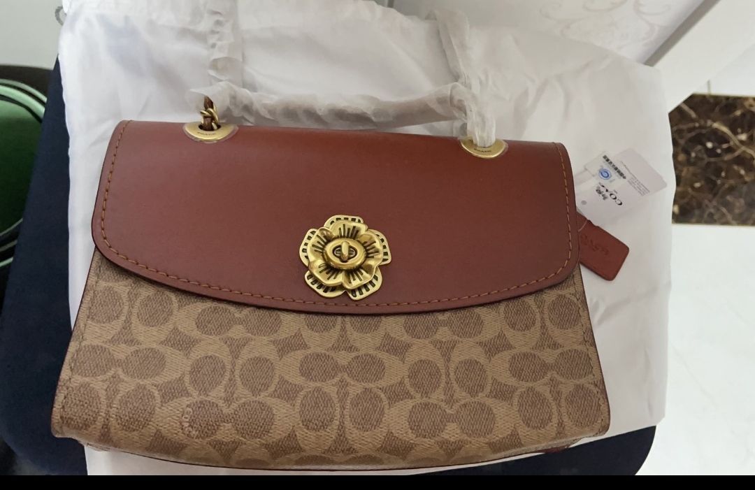 本篇笔记关联了Coach Parker 26 中号 山茶花老花满印涂层帆布配皮旋锁扣手提包链条单肩斜挎包 卡其色配橙红色等商品,为用户提供真实的使用体验和购买参考。