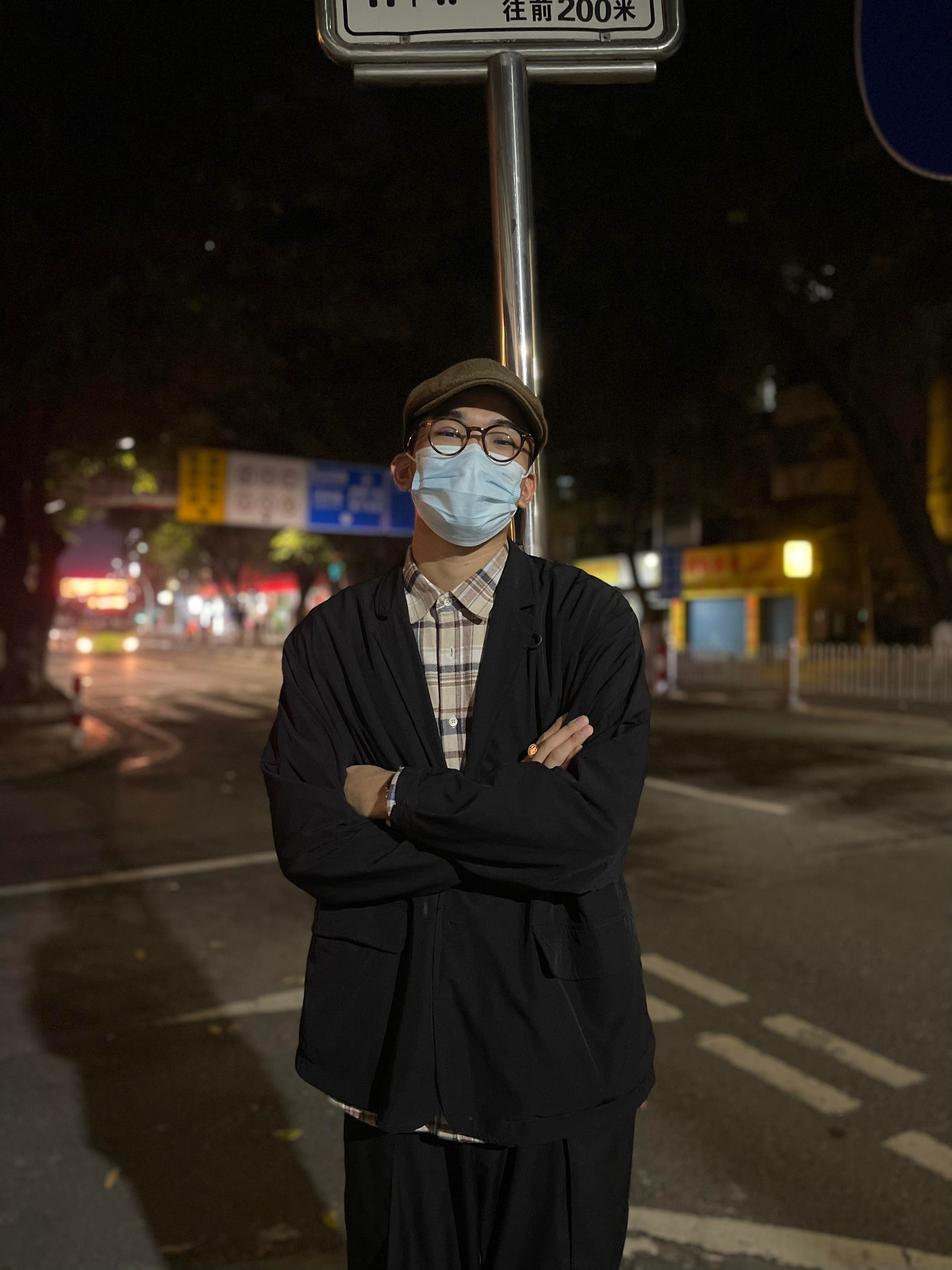 “当然要拍照记录呀 我又不是每天都这样穿”🍂 在广东这种不冷不热的天气 西装加衬衫是肯定是必不可少的搭配啦 竟保持了风度也拥有了温度 最好再加上一顶贝雷帽 复古感满满~🤠 帽子:vintage 衬衫:714street 外套:daiwa pier39 裤子:neverseez