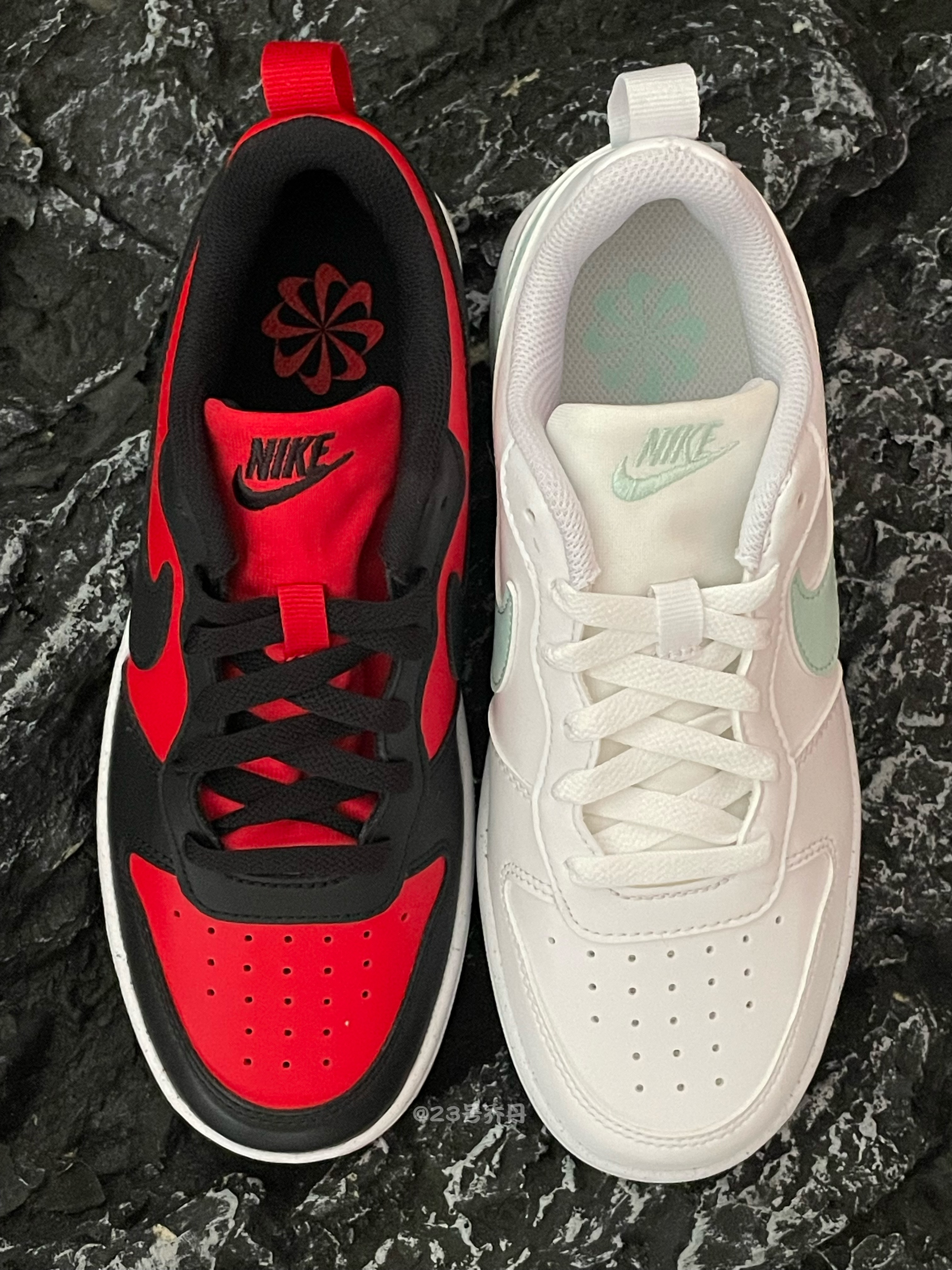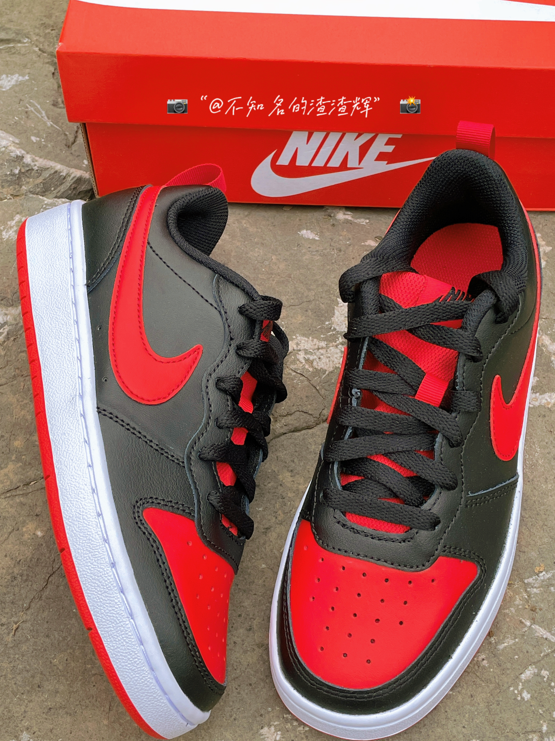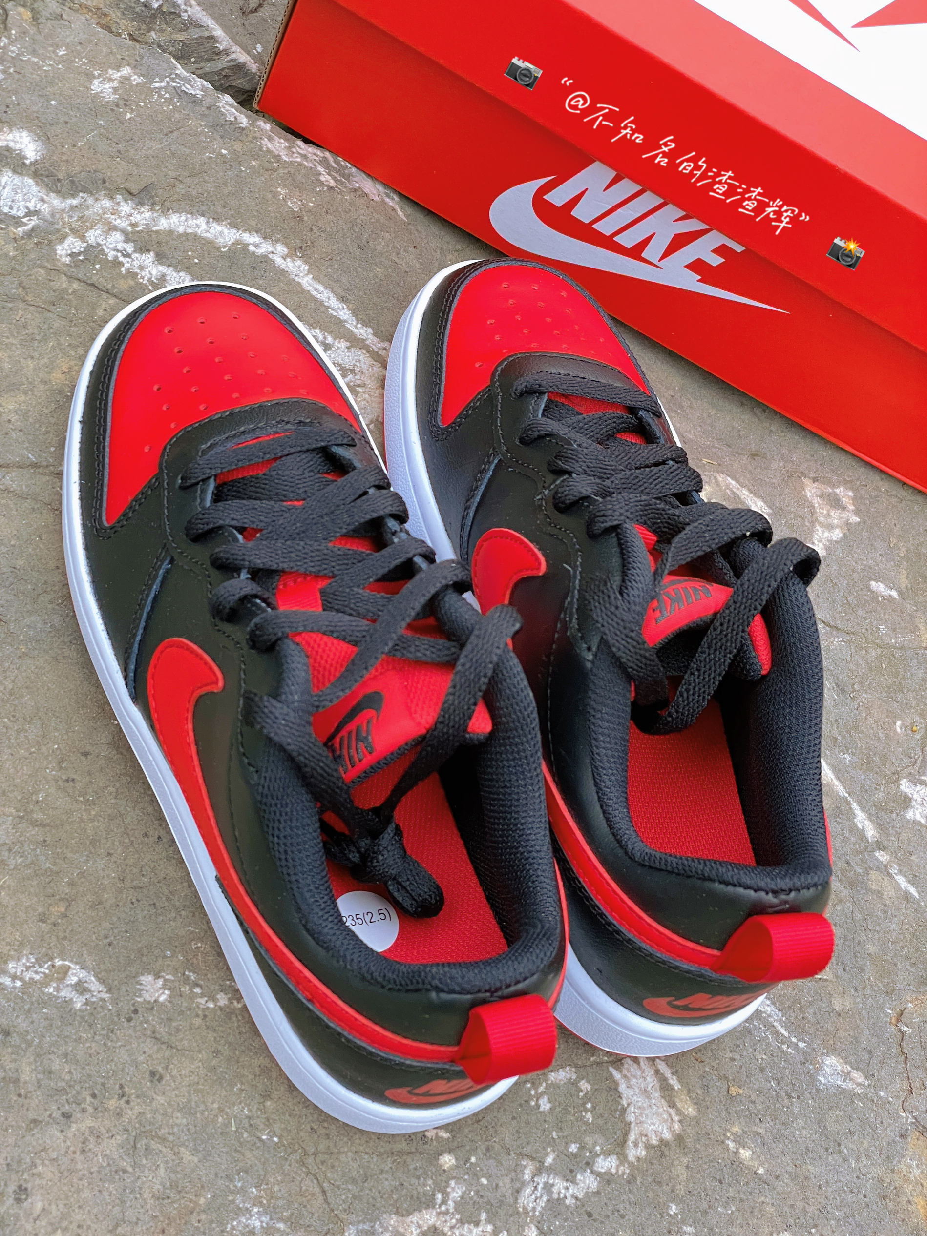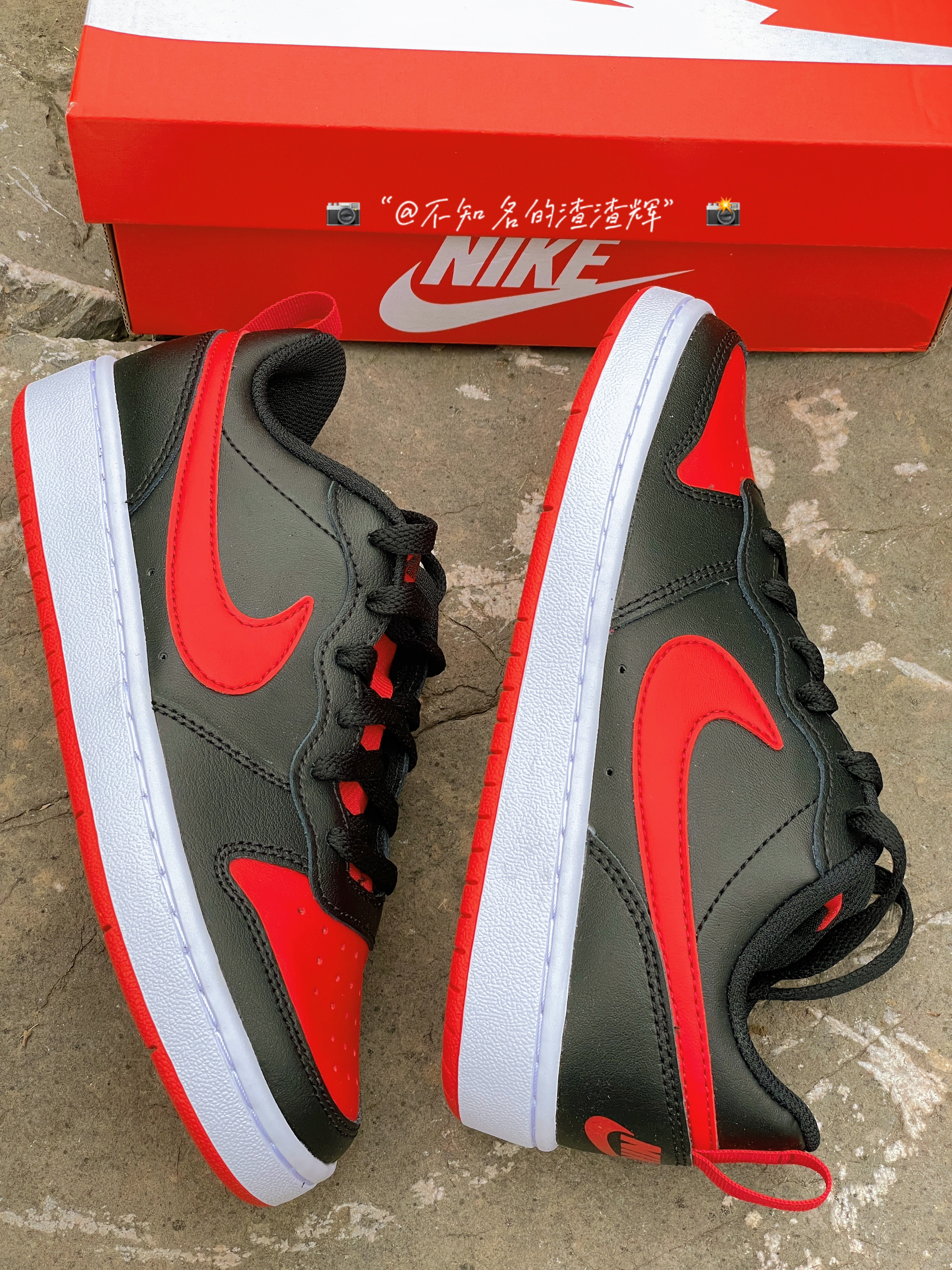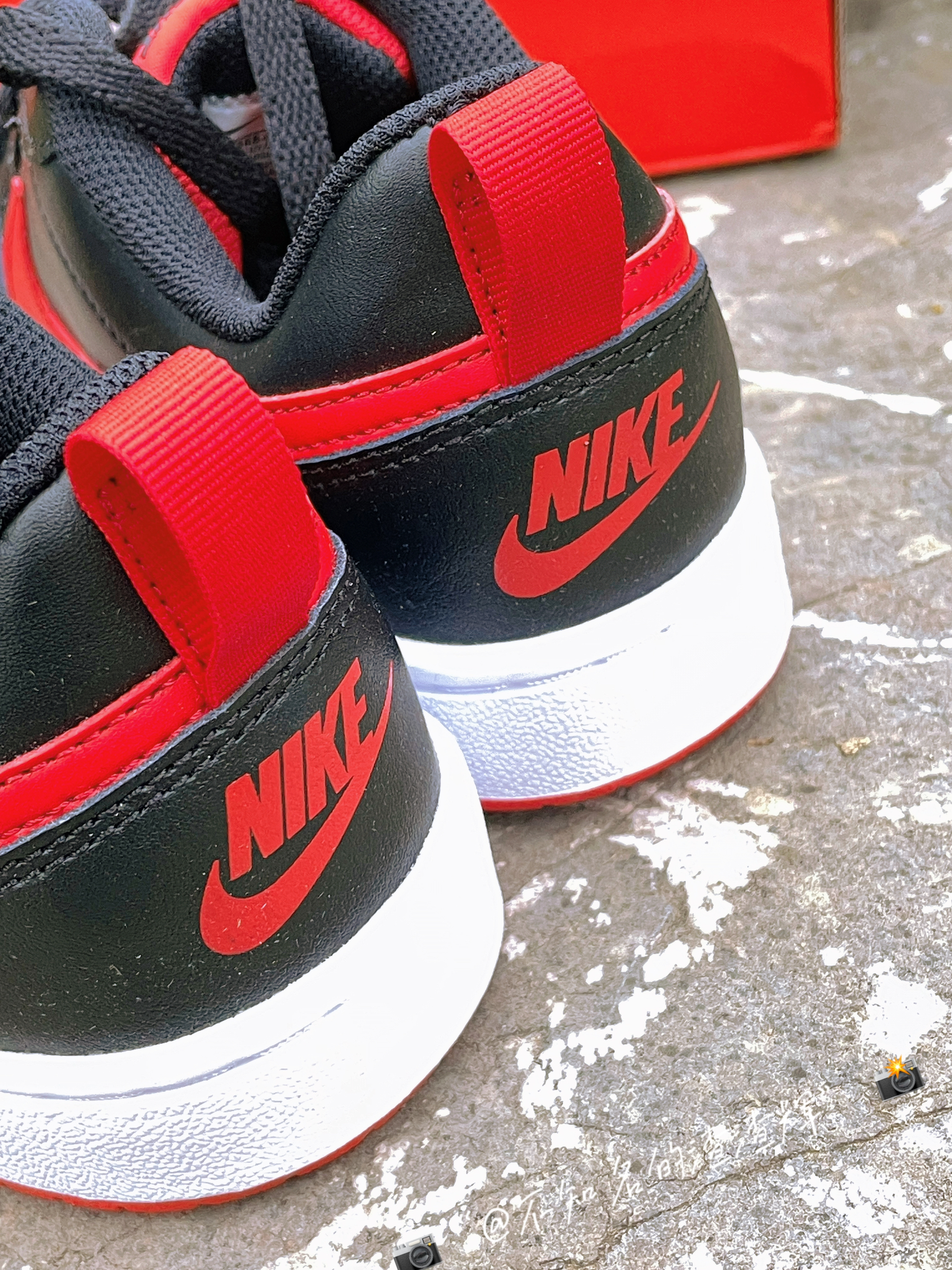 💫:Nike Court Borough Low 2(GS)黑红 💫:这双鞋子鞋头、鞋身都是采用黑色,鞋面、Swoosh、鞋舌、外底采用红色,中底采用干净的白色,经典的配色,真是无论从哪个角度看都很好看,鞋头有着出色透气孔,后跟鞋提设计,穿着更为方便 💫:属于比较平价的一款鞋子,适合学生党,而且很好搭配衣服,脚感还可以,正常板鞋脚感 💫:尺码推荐:正常尺码
