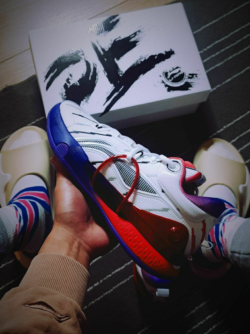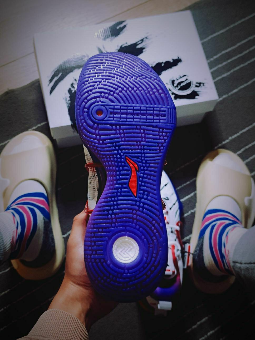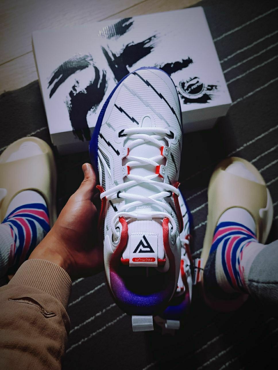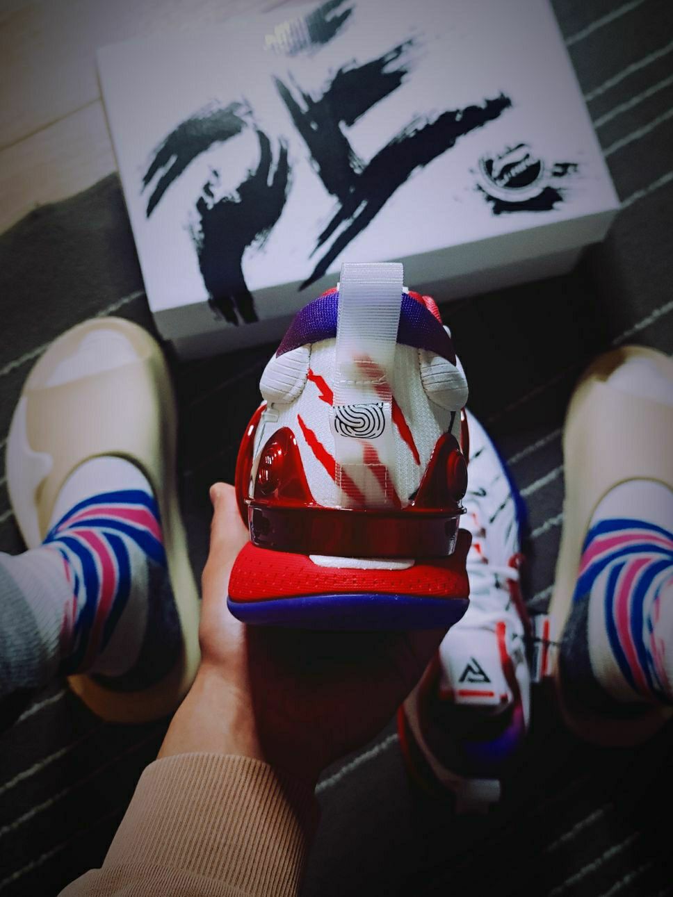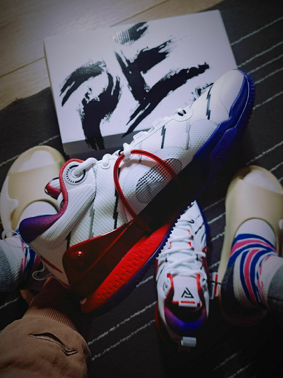 💗球鞋故事 这双鞋是闪击⑧的第一个球员市售PE版,以范乔丹所属猛龙队复古球衣为灵感设计的配色,突然就想起了麦迪猛龙时期的白紫色①号球衣,「暴露年龄造孽啊」!所以这也是我非常喜欢毫不犹豫就买下的配色哈,此外还有一个紫龙的配色也在剁手计划内😂(而且听说小程序又短暂放六折了,又没赶上。) 👟上脚脚感 这双PE版的配色上脚后第一感觉是比普通配色版本略韧一些的(也可以说硬质一些),它的鞋垫版本采取的是和驭帅...