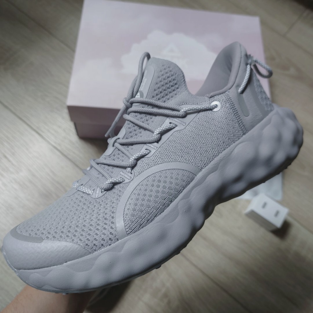 👟鞋款名称 【尼克杨同款】匹克 AI态极云R1 霞 网面透气跑步鞋 马丁灰 😆外观配色 马丁灰很低调又不失高级感 👀设计细节 AI智能设计,鞋底小球滚动感呈现。 😀上脚感受 踩在云上没毛病。舒适软弹。 👕搭配建议 这颜色还是非常百搭的,十分建议入手。目前价格合适。