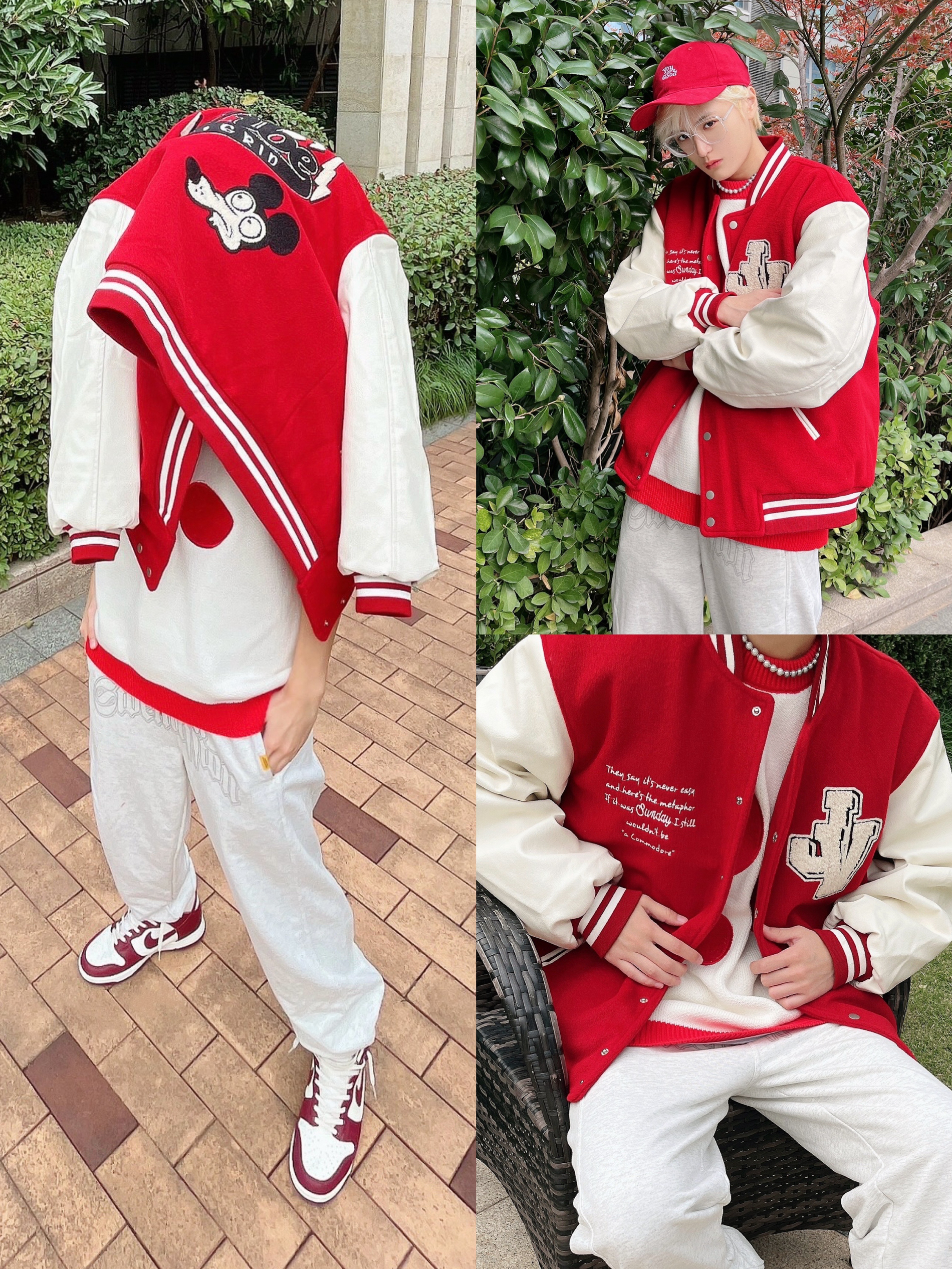 发现自己这个冬天已经集齐了红黄蓝绿四种基本颜色的棒球服外套!现在做一个小合集,缤纷一下🌈 四套Look配的都是同色系的球鞋~ Look1 Shoes:Nike Dunk High 酒红 酒红色和大红色的同色系组合,棒球服和卫裤的搭配运动感很强,加上红色自带的活力感,穿上都朝气许多。 Look2 Shoes:VisionStreetwear 藏青 滑板鞋穿起来还是方便许多,棒球服配牛仔裤少年感...