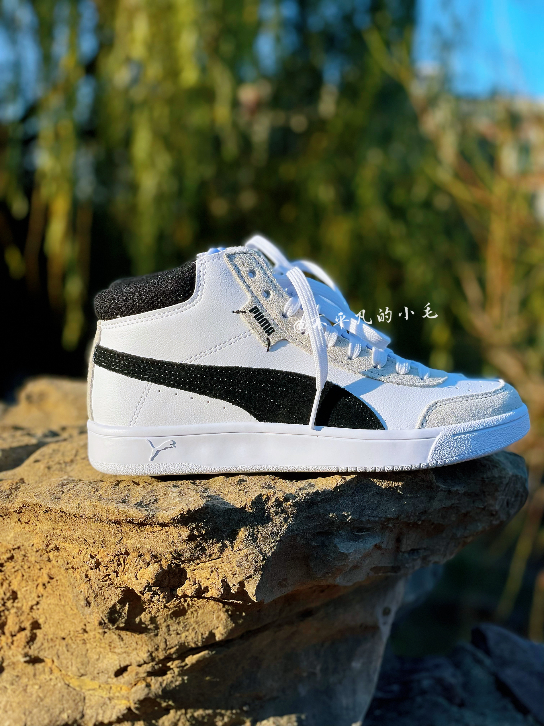 👟名称:Puma CourtLegend 白黑 男女同款 🥝这款彪马的高帮鞋子特别适合这个冬天哦,这款鞋子的鞋头款式是圆的脚宽的也可以,特别适合这双鞋子哦。 🥝这双鞋子搭载了softfoam鞋垫,用记忆泡棉制作而成。加强穿着时的舒适性和柔软度。 🥝鞋子在色彩搭配上选用了白色加入黑色的标志显得特别的简约大气,又可以体现出品牌设计的高大上。
