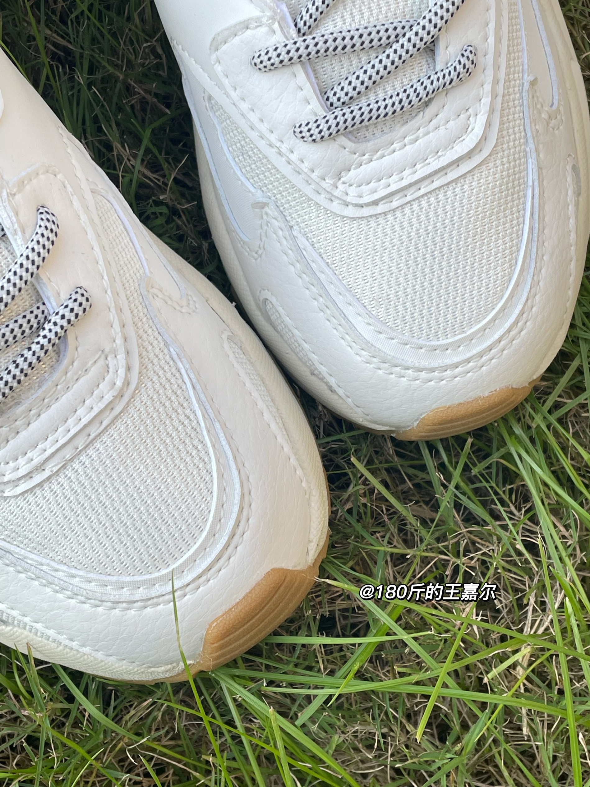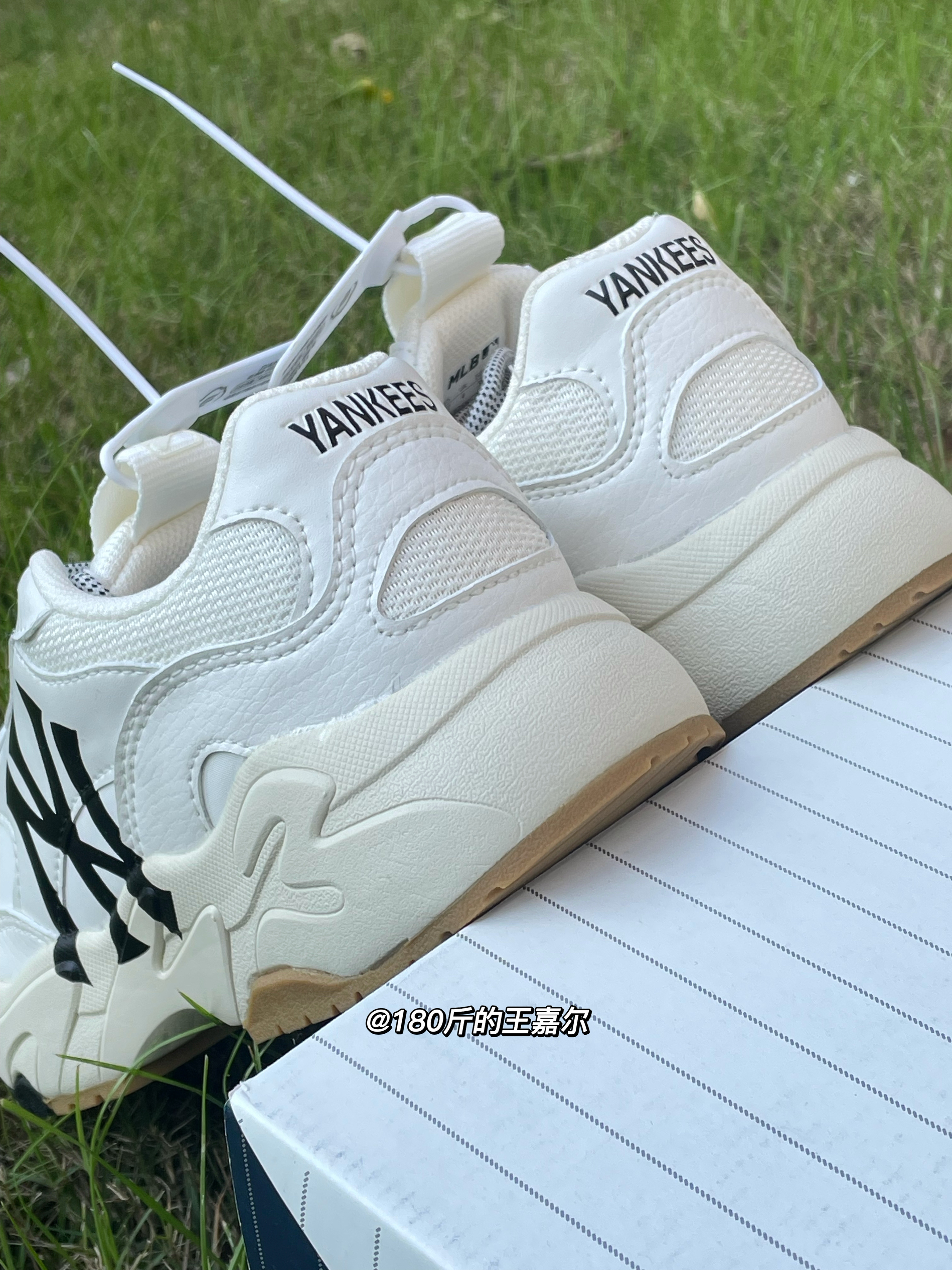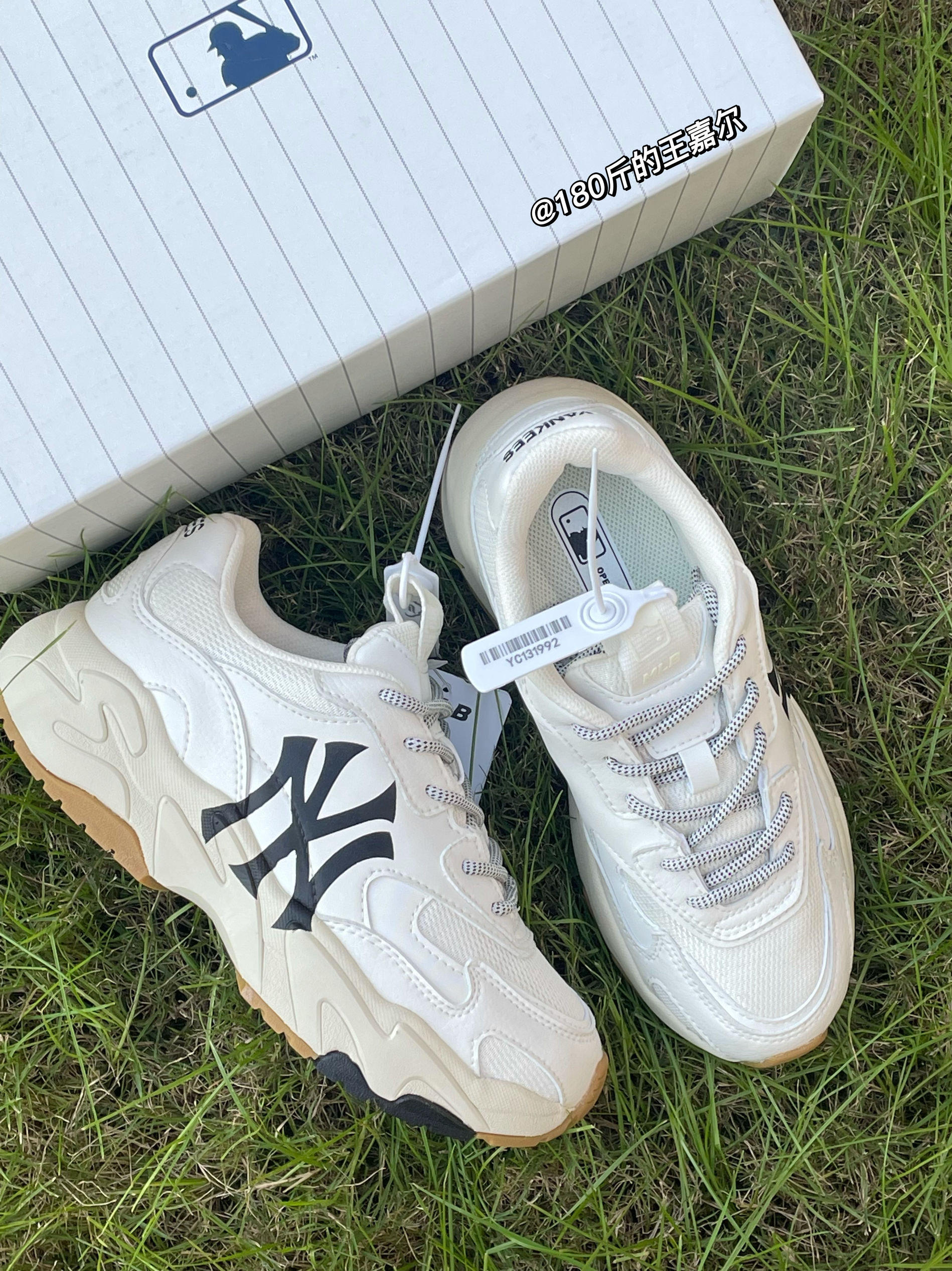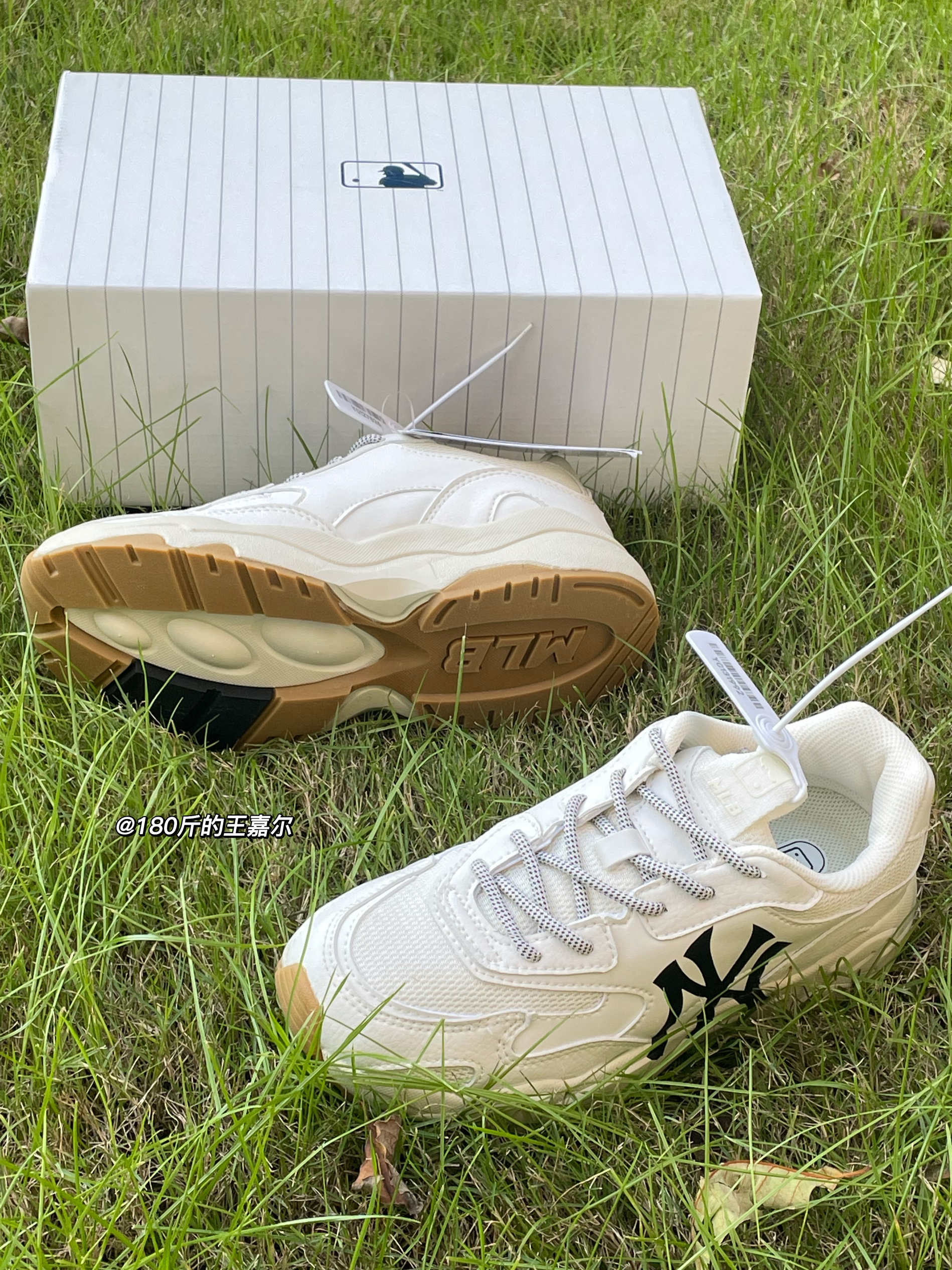 🎨外观配色 外观采用米白色的色调 鞋底采用米白➕生胶色 侧面有mlb代表性的大logo 👟尺码脚感 个人觉得尺码很标准 按照正常码购买就可以 🥼日常搭配 搭配性很强 秋冬配裙子 长裤都可以 💯整体打分 整体偏向于复古运动风格