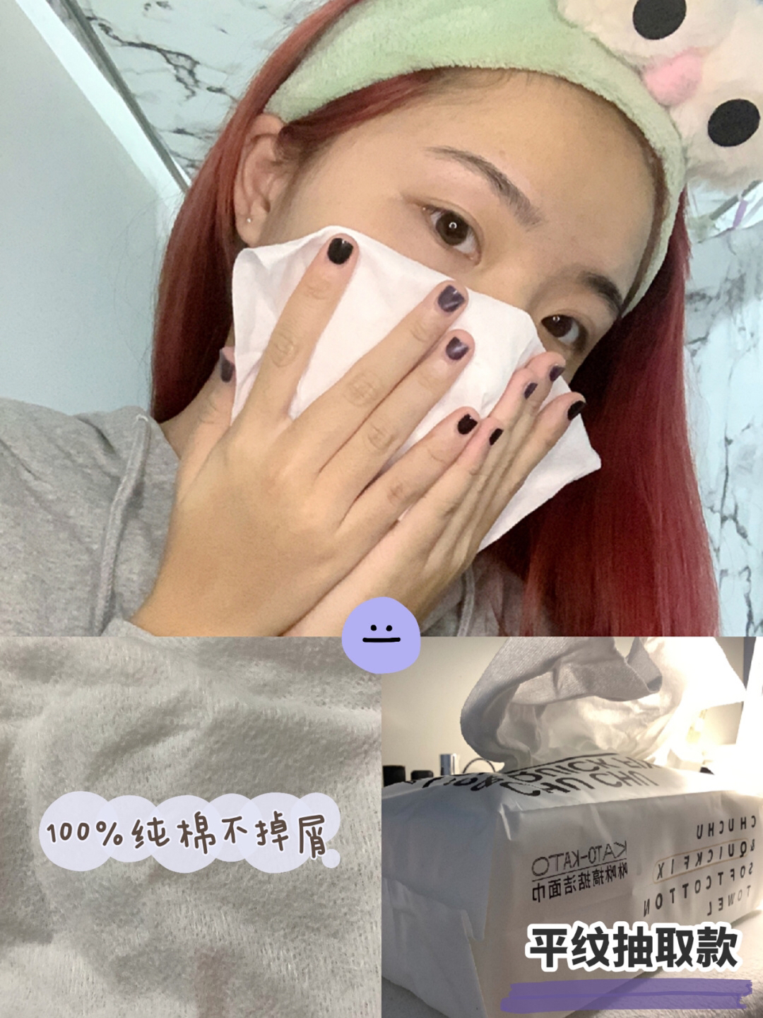 1.洁面后用咻咻搞掂洁面巾 2.春雨茄泥面膜 3.八韵草密罗木活肤水湿敷 4.科颜氏高保湿面霜 5.资生堂尿素护手霜