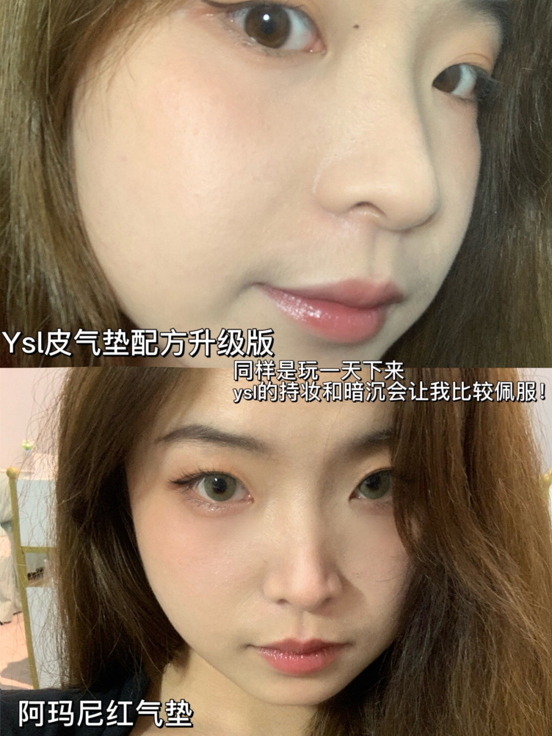 我皮肤黄一白,有点痘印 夏天t区油!个人比较喜欢通透奶油妆面 做了很多攻略最后选择了! Ysl皮气垫和阿玛尼红气垫来给大家测一下 - Ysl皮气垫B10 它应该是算得上Ysl出的气垫中最有质感的 到手真皮外缝v纹配上金色的logo真的绝 带出门补妆真的超吸人眼球啊! 质地:我入的是4月升级的新配方!是那种 奶油化了的质地!很细腻!它会比阿玛尼 润一点~我觉得干皮也可冲 持妆力:一天下来t区会微微出...
