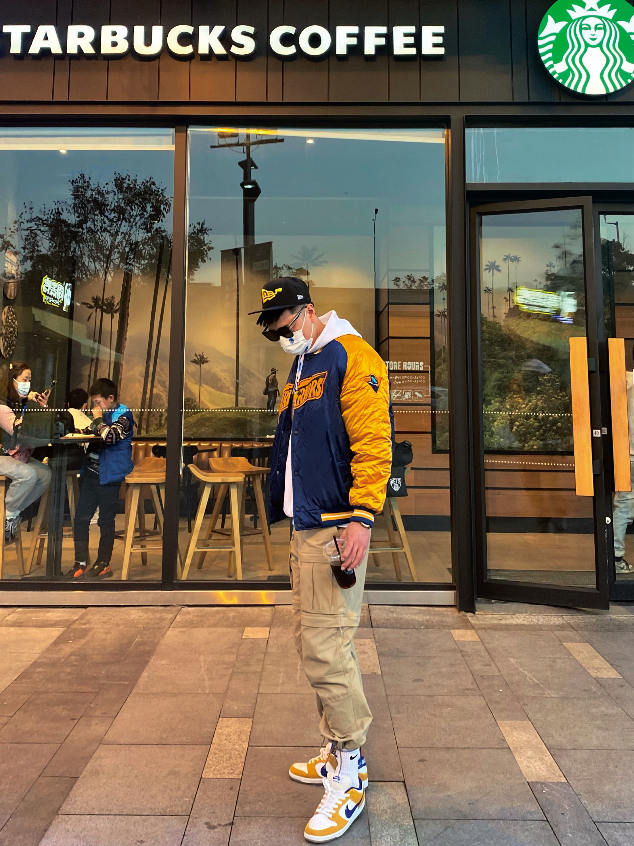 今年的勇士 你们觉得能不能夺冠??? 今日搭配: 👕:金州勇士复古棒球服+勇士连帽卫衣 👖:Nike ACG 可拆卸工装束脚裤 190cm体重90kg束脚选XL/直筒选XXL 🧦:nike基础款长筒袜 👟:nike dunk low 湖人配色