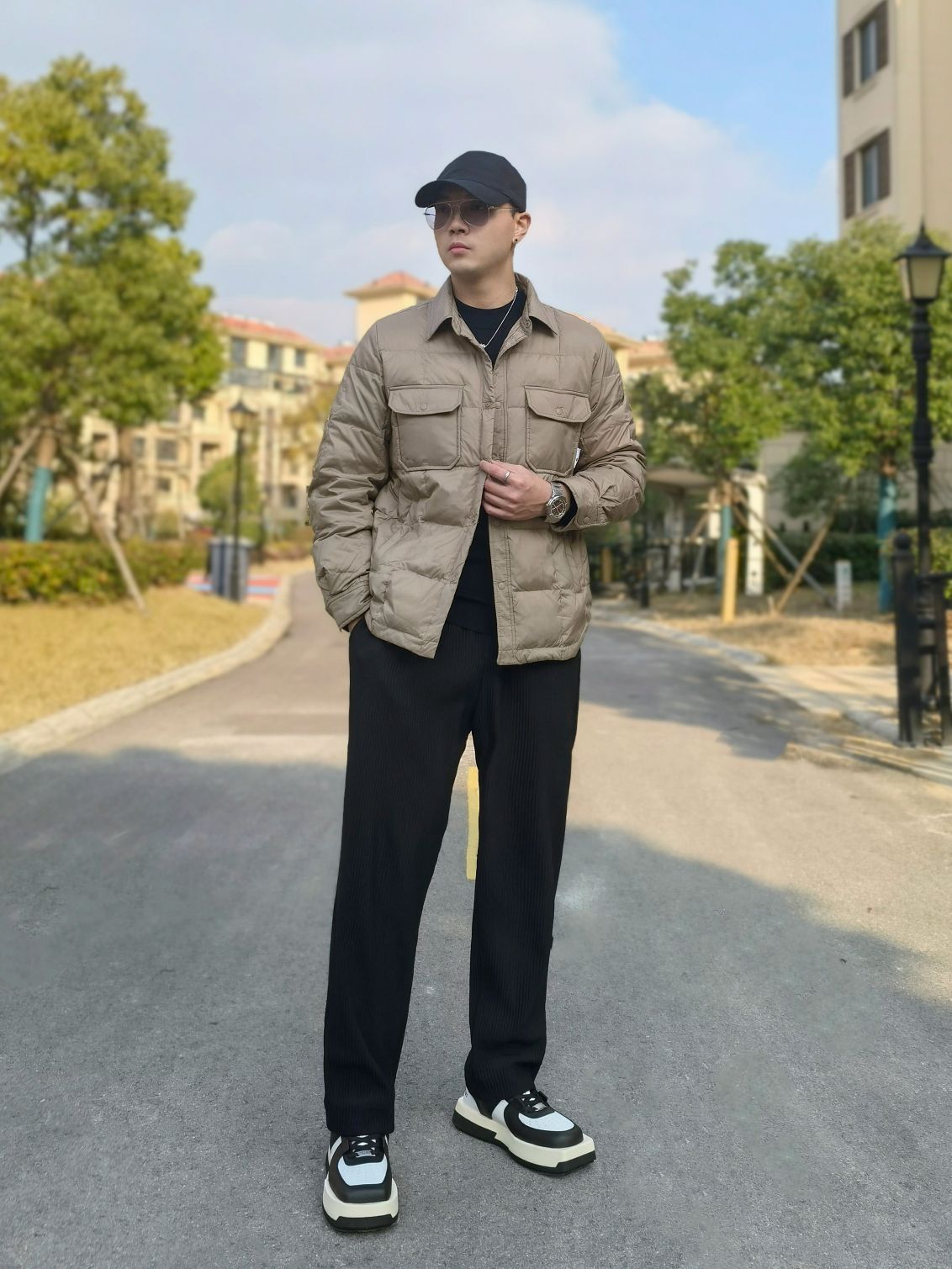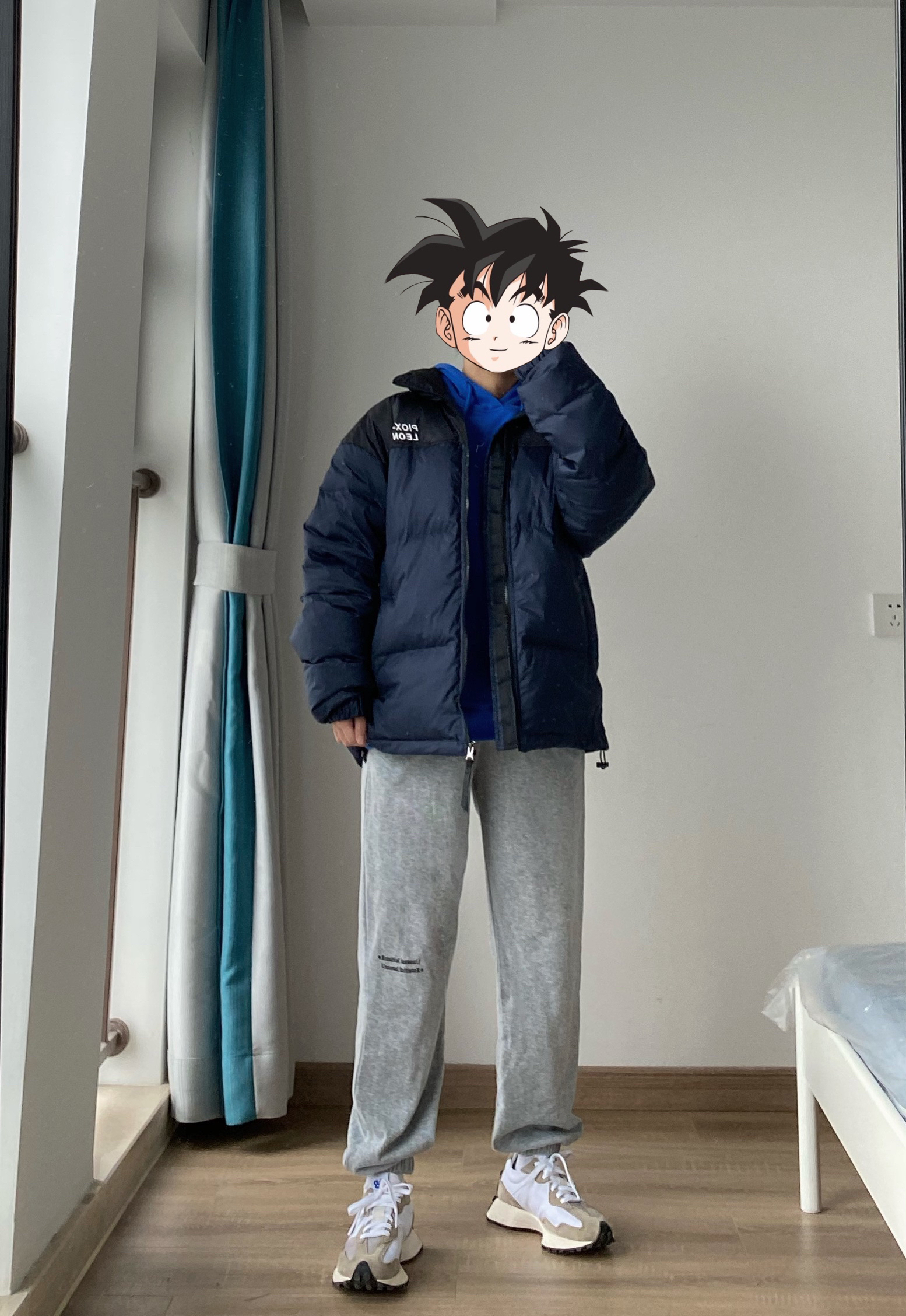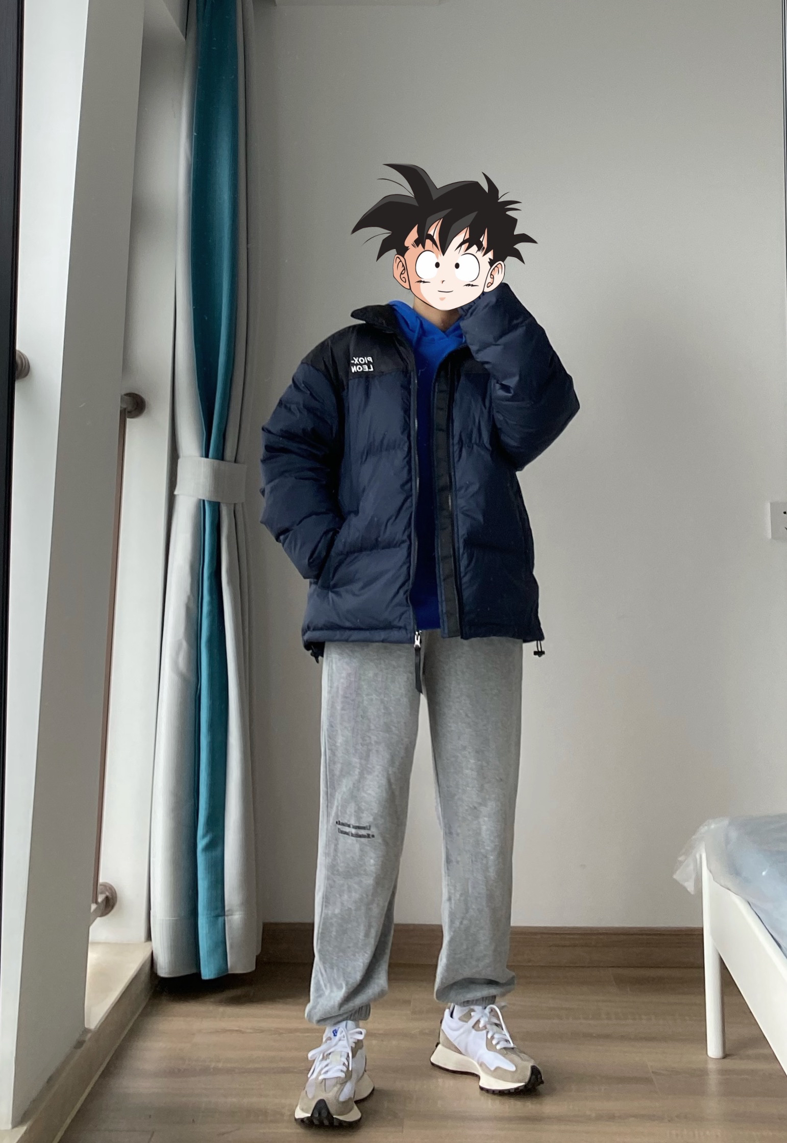 hello宝子们 今天分享一下适合上班通勤都可以穿搭男生搭配 👔pioxleon的蓝色羽绒服 穿腻了黑色的羽绒服 可以尝试一下藏青色 男生穿超帅 👖是白告studio的束脚裤 冬天穿加绒的裤子特别暖和 适合里面不喜欢穿秋裤的朋友 👟New Balance 327