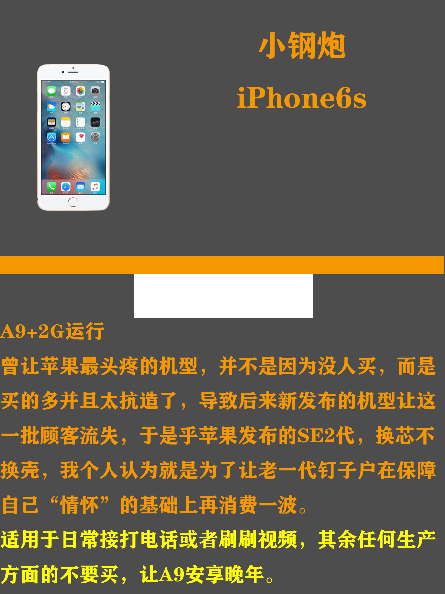 个人认为,11以下的机型中8p和xr是比较适合做备用机的,其他的8以下机型处理器可能有些扛不住了。我见过许多博主推荐过的300多买6s和平板电脑的,都是在PDD,这种机型要么就是翻新机,要么就是换了零件的。华强北修复手机技术一流,毕竟正常想一下,官方二手平台的正常价格在pdd那里便宜一半,自己学会权衡利弊。