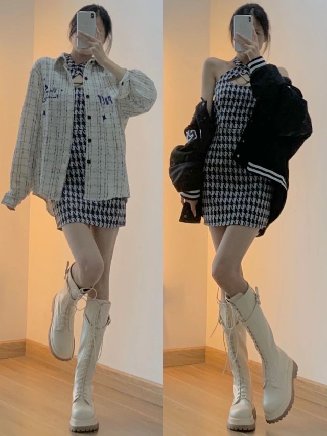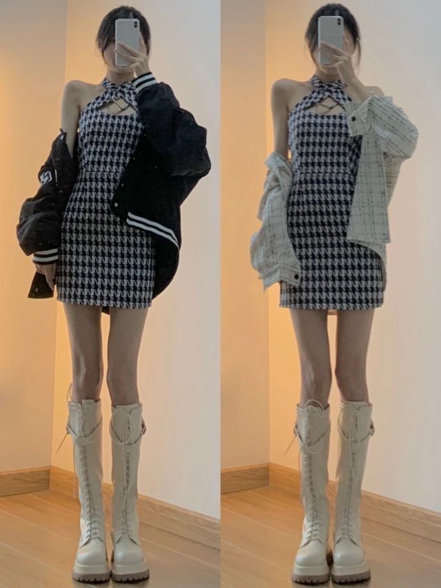 👉🏻秋季穿搭 👉🏻净身高163/40kg 提臀裤🖤 :everkeep提臀裤 挂脖连衣裙👗:Miss choco翻糖少女(pxx 白色小香风外套🧥:HUFFNPUFF 黑白拼色棒球服⚾️:wut 小裙子贴身胸贴🐻:芬斯狄娜一片棉胸贴 米白色长靴👢:戈森定制 冬天也要穿小裙子~这种挂脖的裙子就穿不了平时的内衣了 用这种一片聚拢胸贴就很🉑️!不会露出尴尬的肩带~粘性绝了 上身也不用担心出汗会滑落啥的🙈...