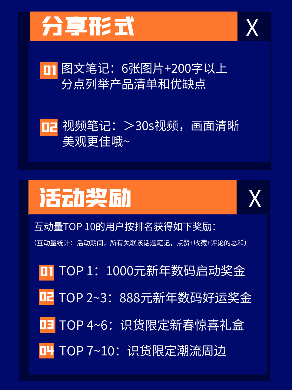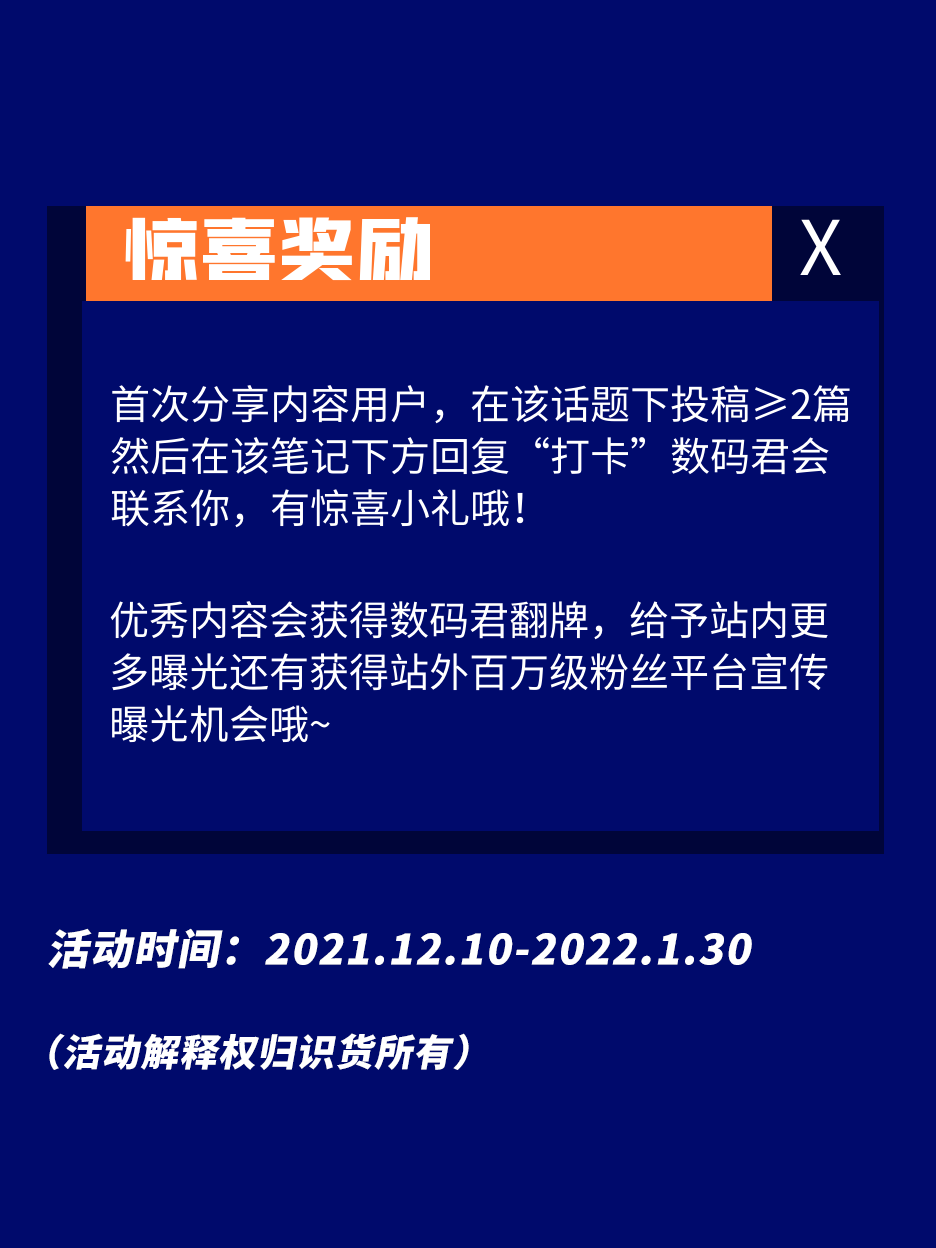 🔈数码控们,2021年末将至快来分享你的数码总结! 欢迎分享你在这一年中 👉使用过 👉最常用 👉很喜欢 👉印象深刻的 📱数码or家居产品🛋 包含但不限于上述分类,任意分享并关联话题👉#我的年度数码总结👈 就有机会赢取新年数码启动奖金💴及超多识货限定新春礼盒🎁!!! 【分享形式】 ①图文笔记:6张图片+200字以上,分点列举产品的清单和优缺点更赞哦~ ②视频笔记:>30s视频,画面清晰美观更佳...