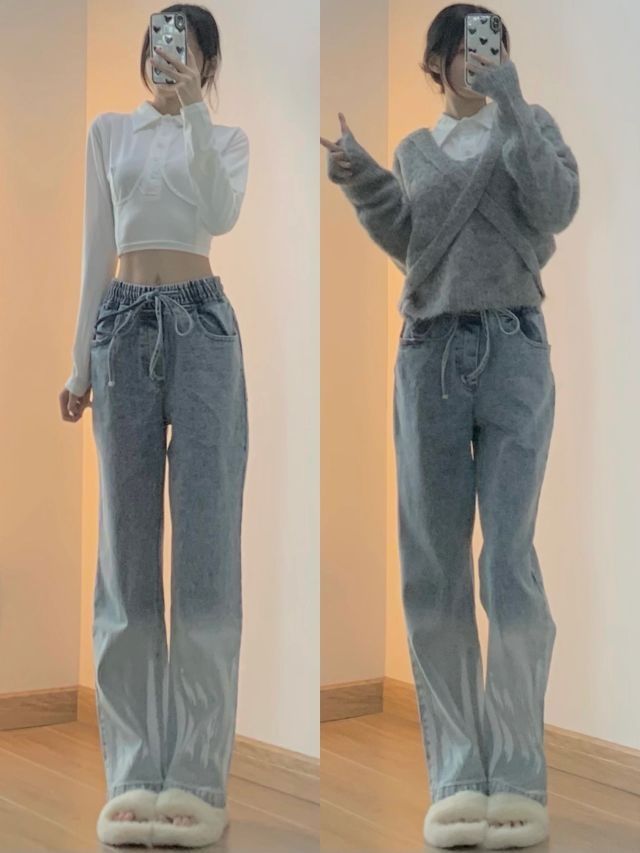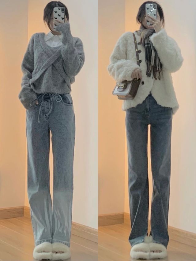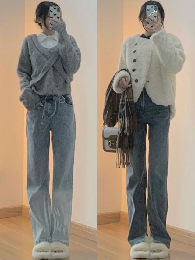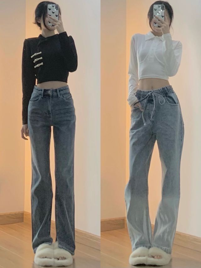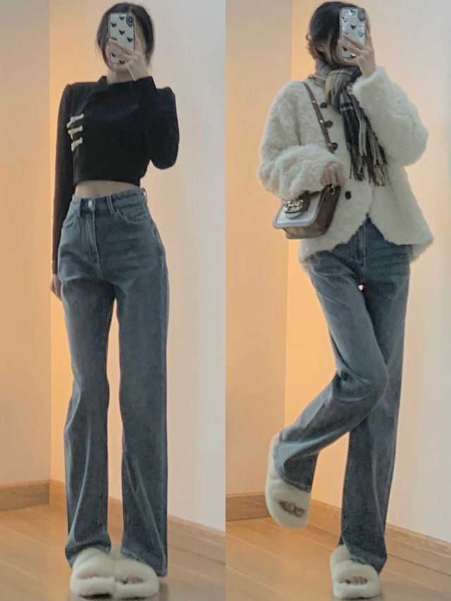 👉🏻秋季穿搭 冬季穿搭(太冷的地方要加秋裤秋衣哦!) 👉🏻净身高163/40kg ‼️‼️‼️图3⃣️‼️‼️‼️ 蓝色牛仔裤yyds哈哈哈我现在更喜欢蓝色牛仔裤了以前觉得黑色百搭 现在觉得蓝白好看呀!加上棕色的搭配 秋冬氛围感满满🍁一款是简单的开叉直筒裤 薯条裤 面料很软很舒服😌搭配羊羔毛外套 内搭黑色的加小围巾🧣显腿长穿搭~一款是设计感的牛仔裤 面料会稍微硬一点比较有造型内搭露腰Polo领小衬...