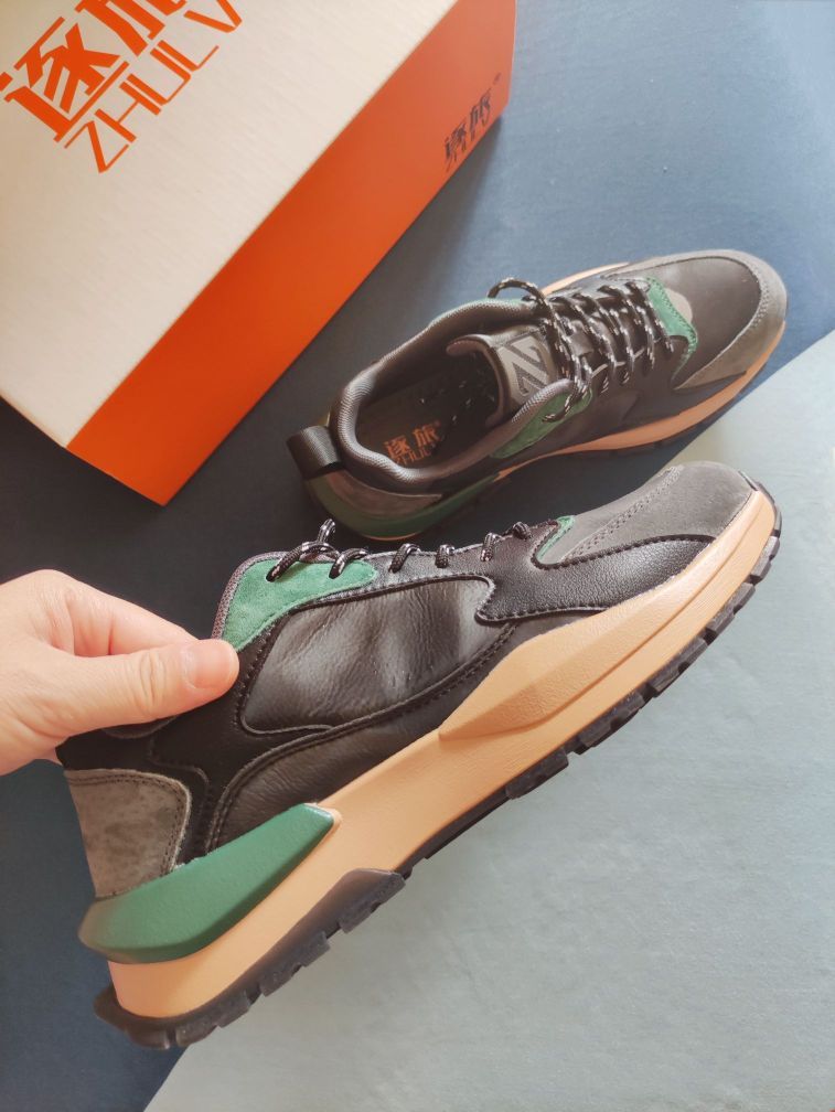 俗话说鞋子穿的对,气质翻一倍。 最近发现了这款逐旅真皮休闲运动男鞋,一眼就看上了这个潮流新颖的时尚造型。 整体属于厚底运动鞋款,黑、灰、墨绿、多色拼接,增添趣味活力,还有一种复古感。 猪巴戈+超纤面料拼接的鞋面,绒面皮革质地柔软细腻,搭配颇显工艺的设计细节,走线工整,妥妥大牌质感。 鞋的内里柔软,上脚后巨舒适,包裹感很好,并没有挤压感,双脚在鞋里很轻松自如,穿起来一点不累脚,轻便舒适,耐磨透气,十...