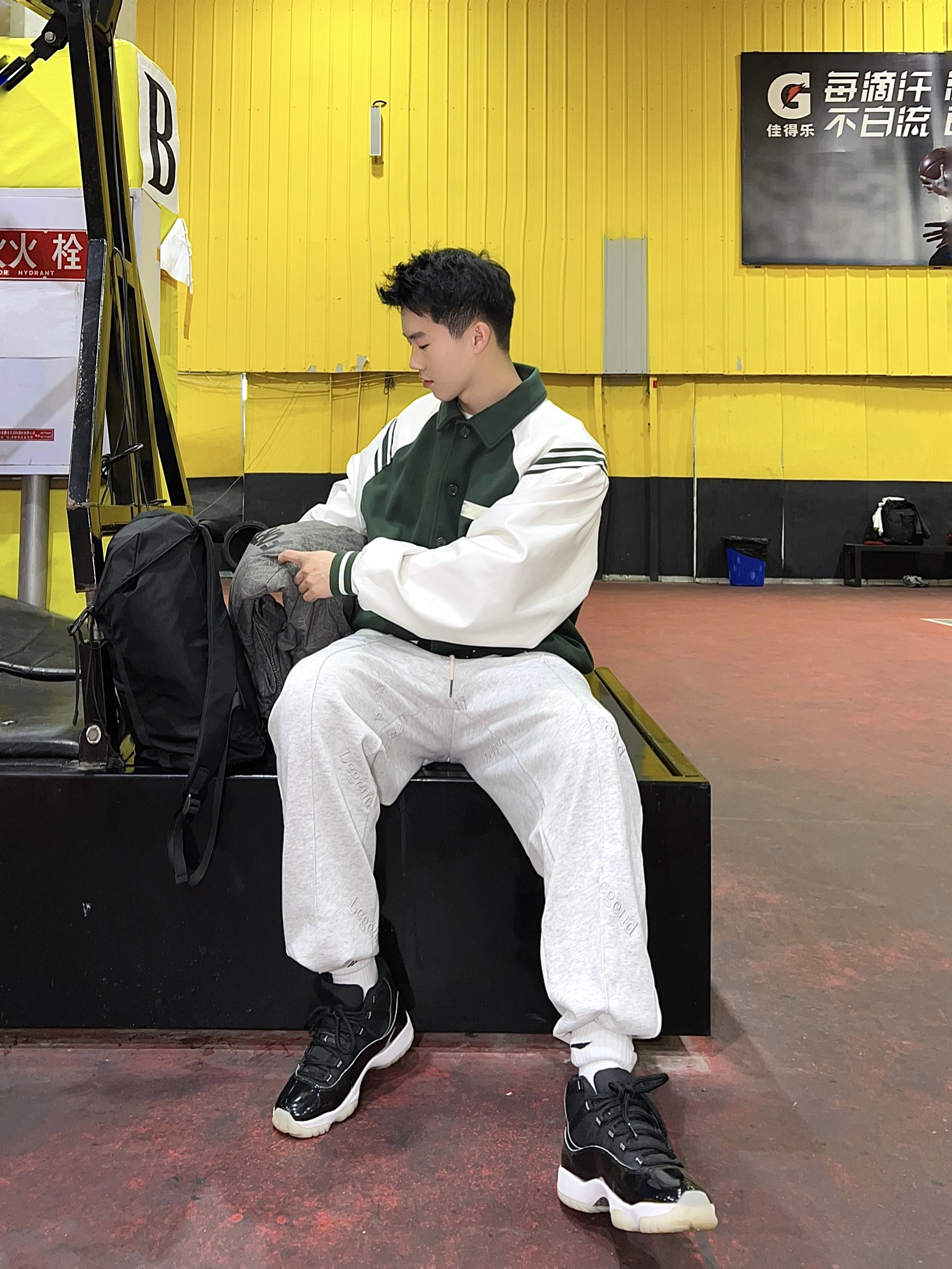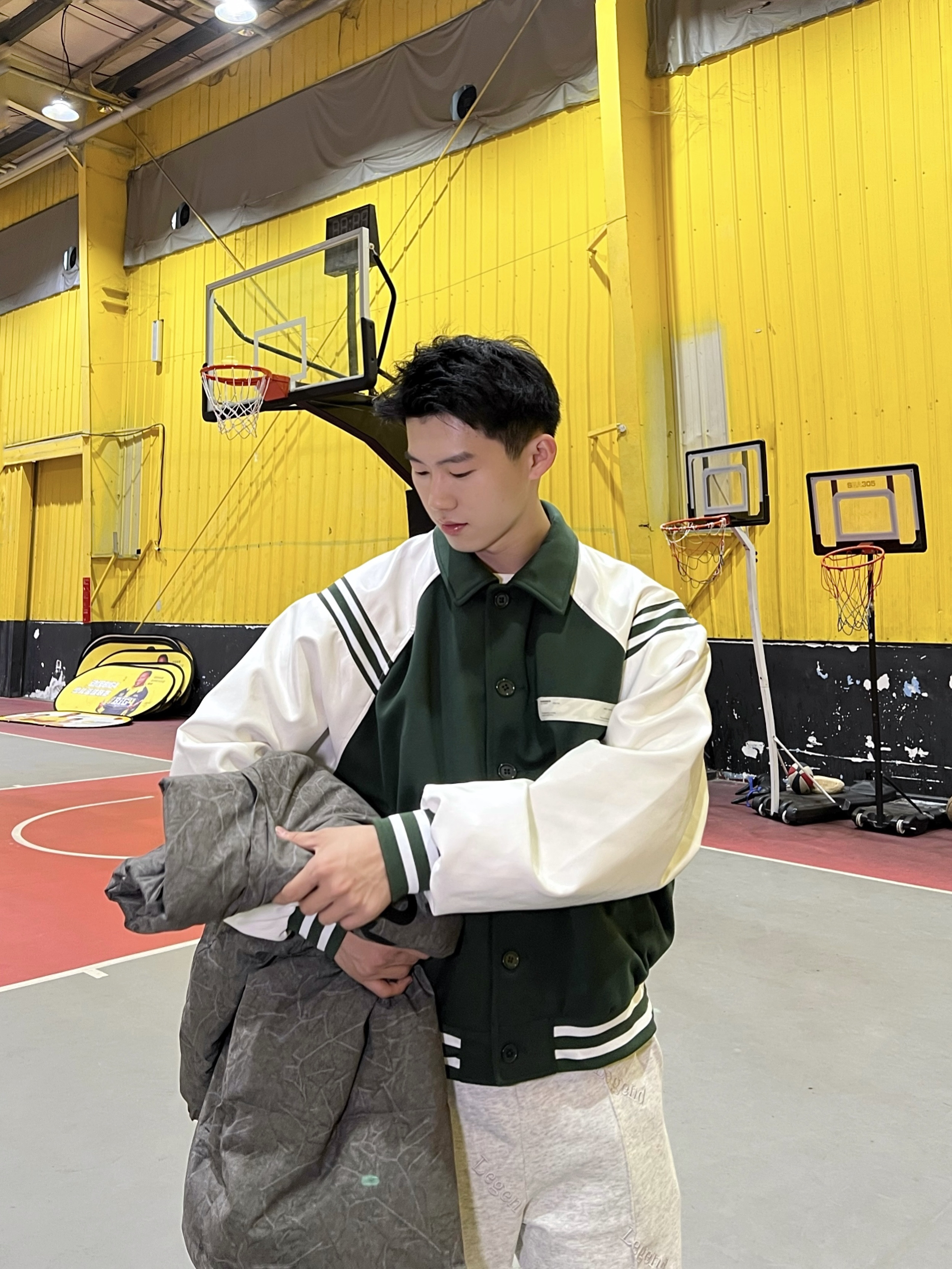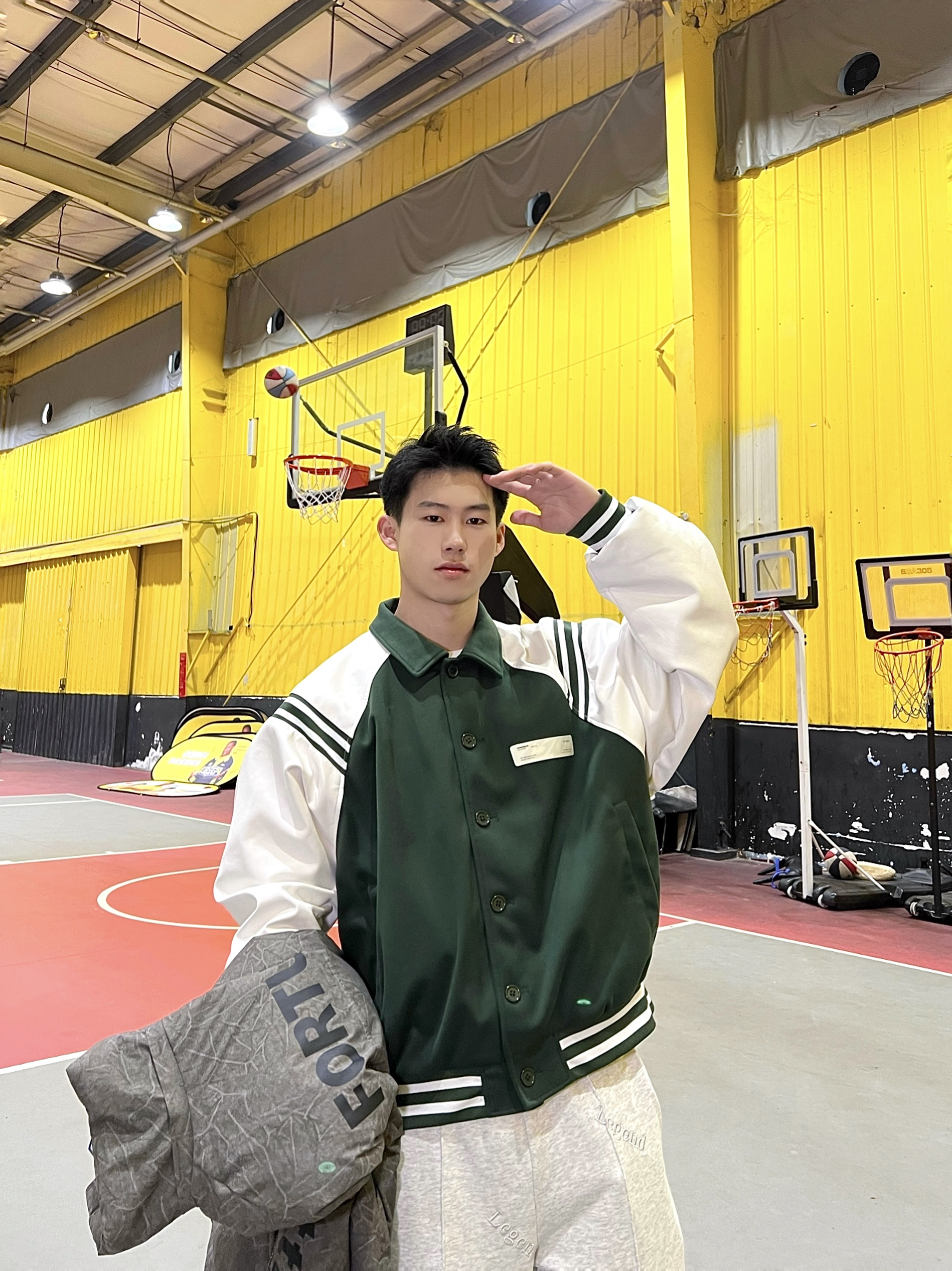 今天分享的是绿色棒球服白绿色系干净又简单,搭配一件墨绿色羽绒服和一条灰色卫裤,整体干净清爽, 鞋子是aj1大魔王,比较百搭,整体氛围偏运动系。 👔ROARING WILD 好啦,小王的今日分享就到这里啦❤️