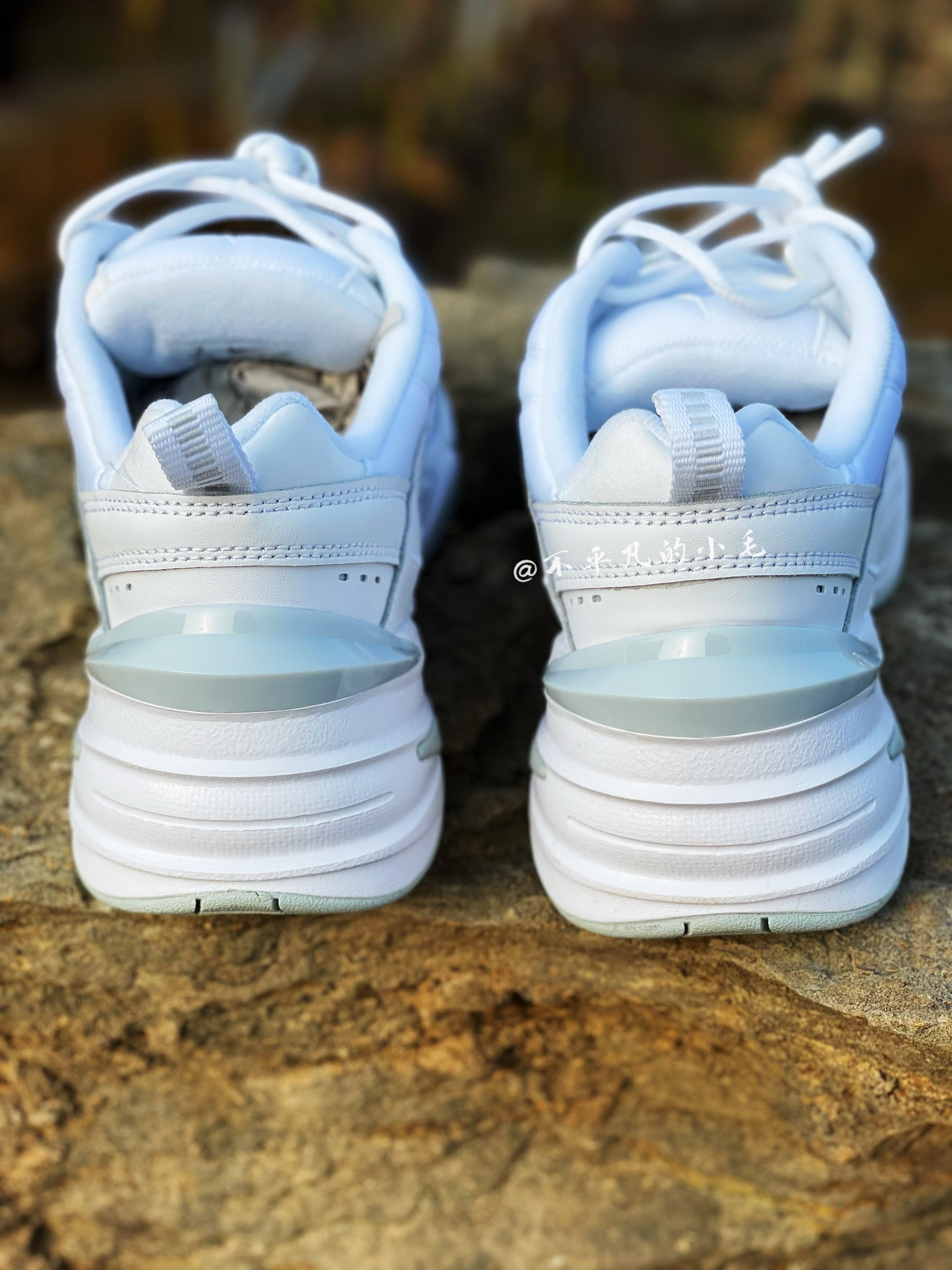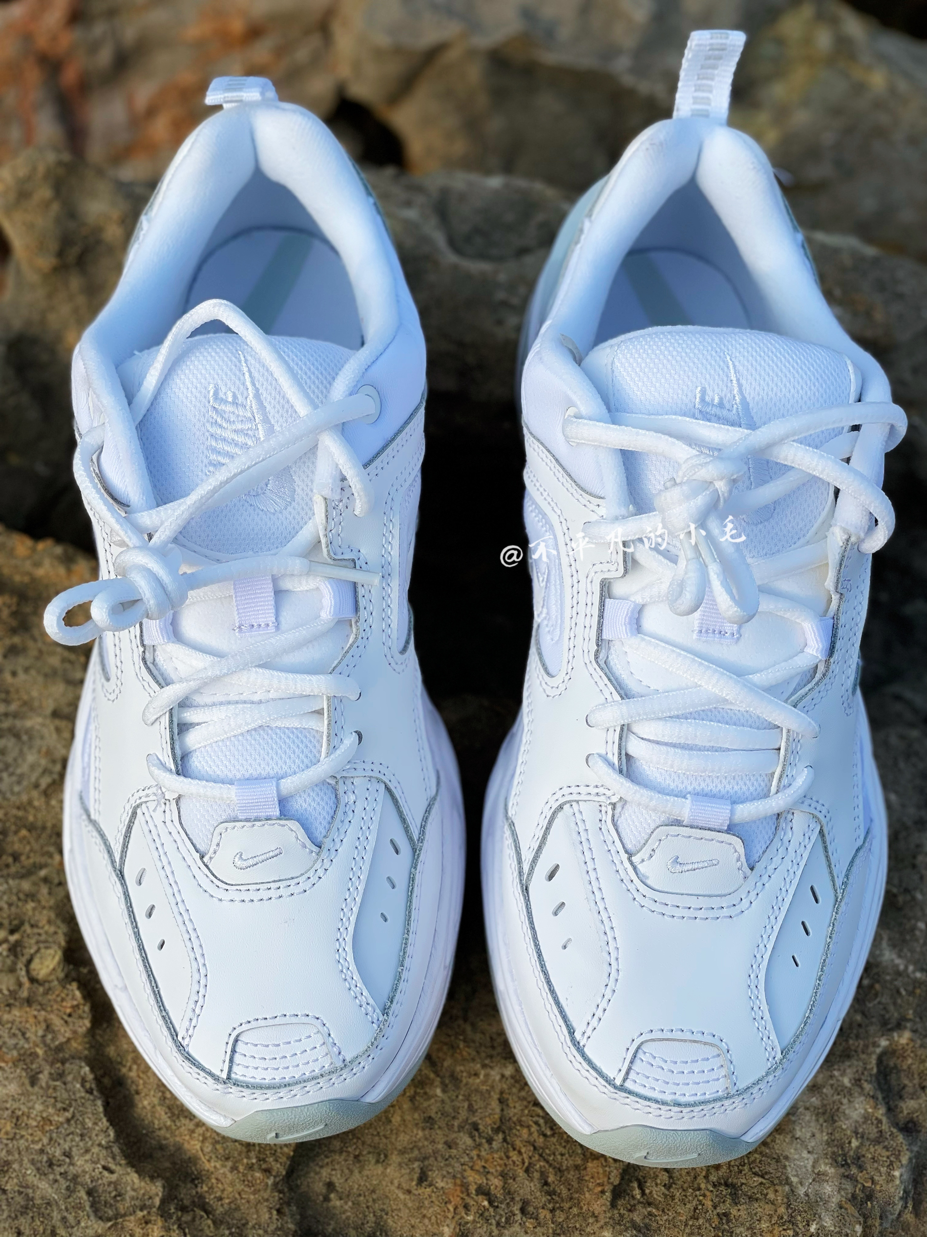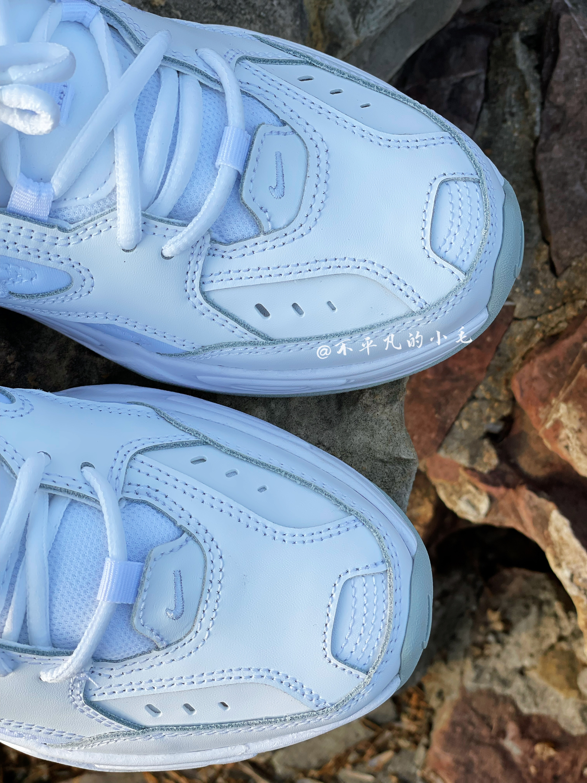 👟名称:Nike M2K Tekno White 老爹鞋 男女同款 😶🌫️鞋子整体以纯白色为主色调,除了鞋外底采用了灰色的橡胶底,其他全部为白色。 😶🌫️这两侧的小小的刺绣swoosh依旧是那么的精致美观,鞋面和中底线条的调整增添了现代感,保留了很多复古的装饰元素,上脚超级好看。 😶🌫️从材质来说这双鞋子采用了织物材质和合成革材质,在透气方面可能不是那么的乐观。