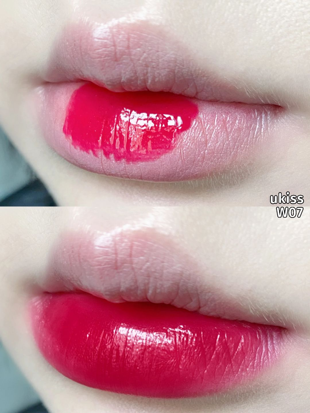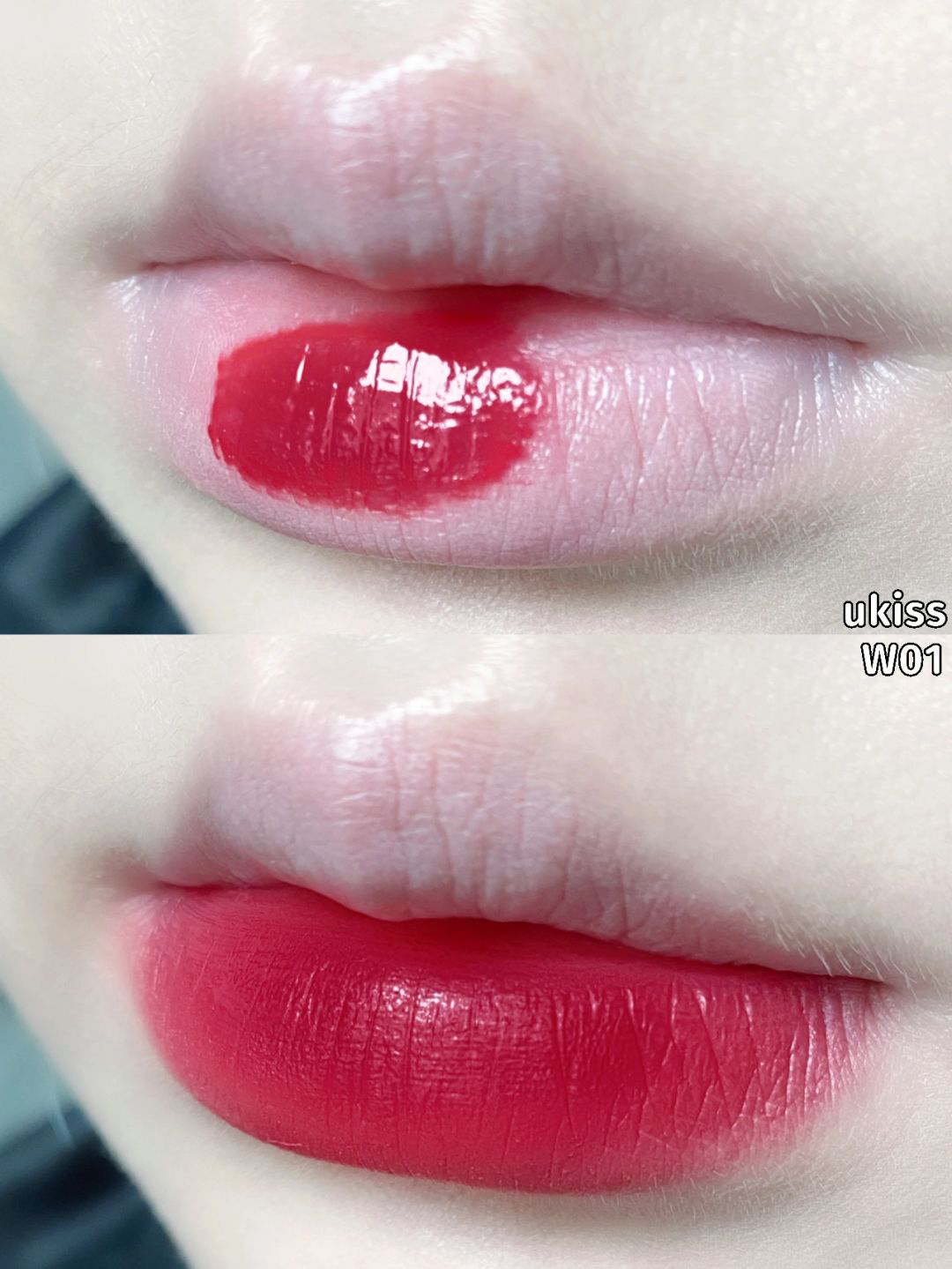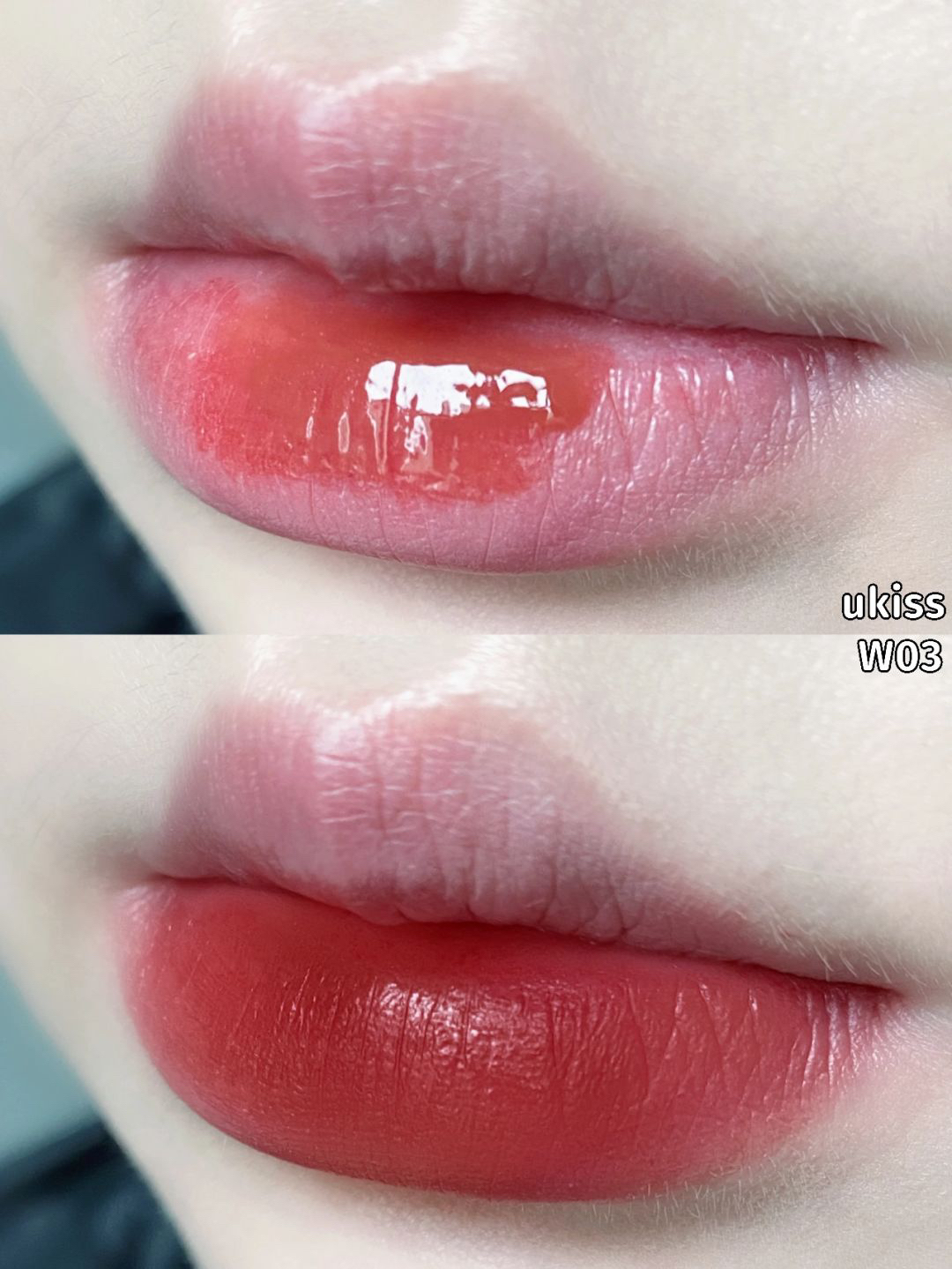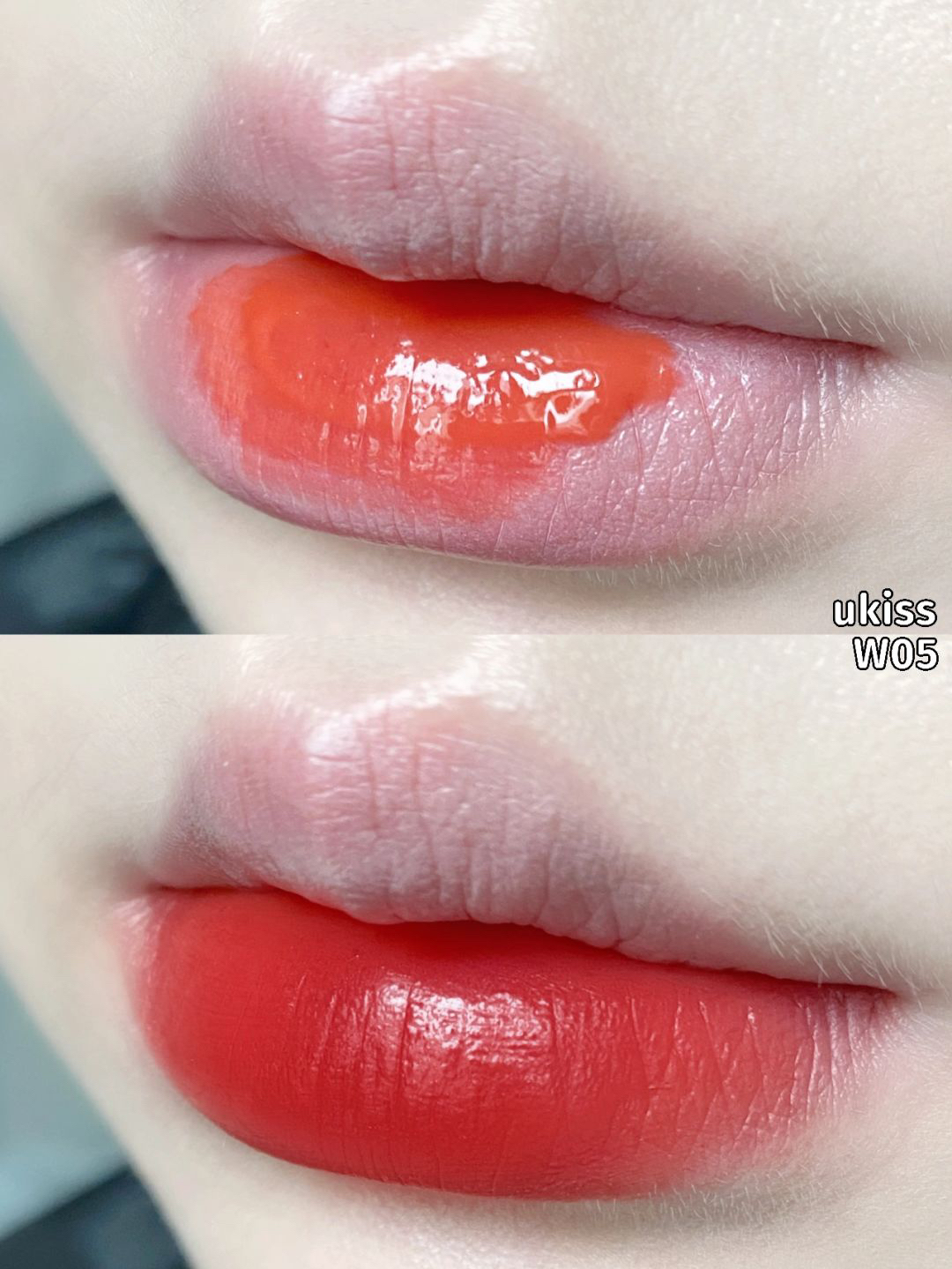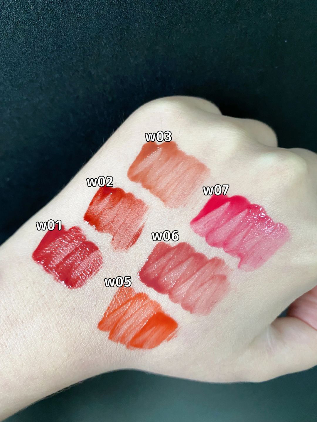 之前嘴干的时候用水雾这种感觉的唇釉 就有点倒拔干 但这个不会哎 我今天真的算是状态很差了…. 用完后的嘴唇就软哒哒的 看起来也比较嫩 尤其表扬w05这只 我试到这里就已经被染色成深唇了 但这只和深唇感觉会更搭!就会奶很多!