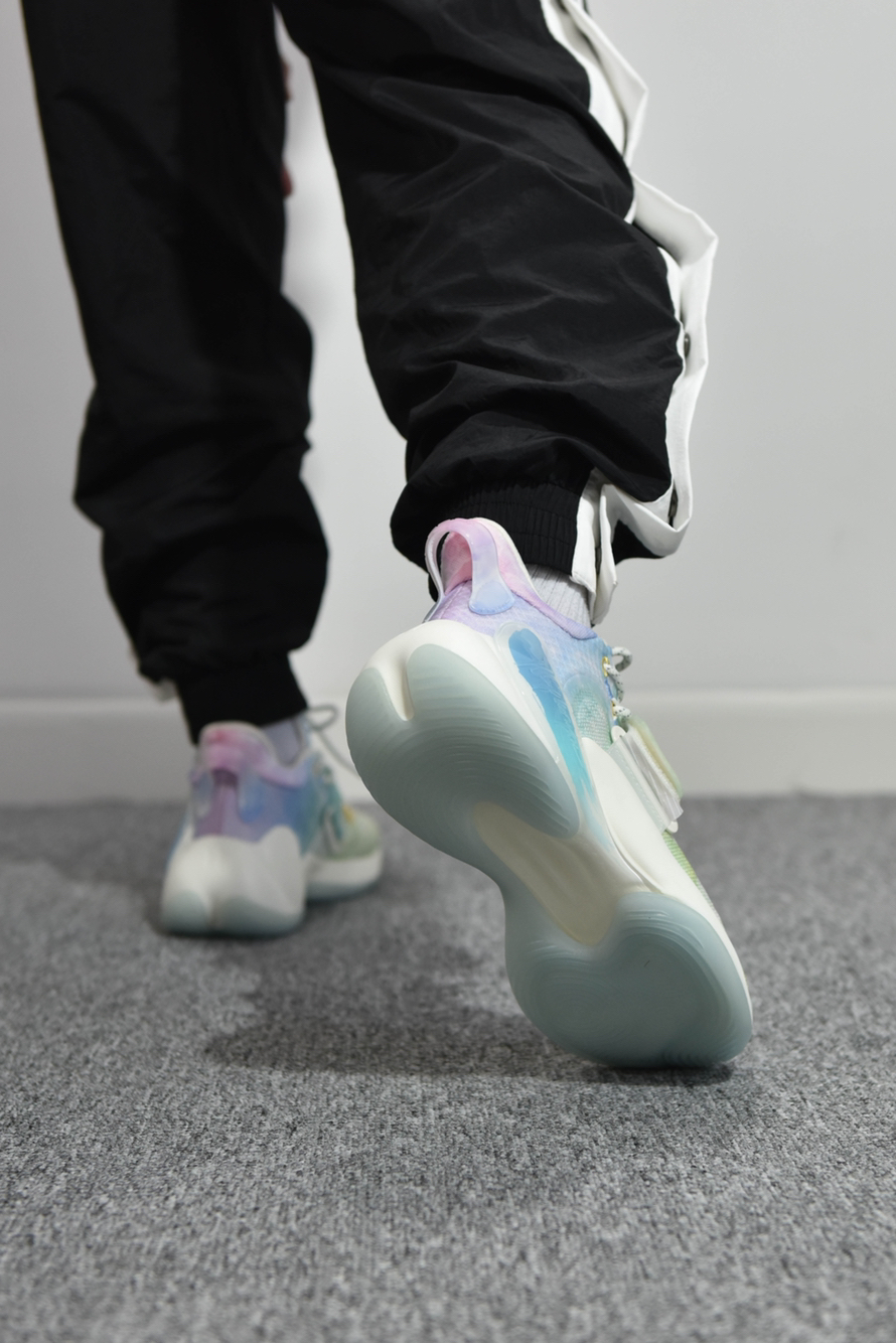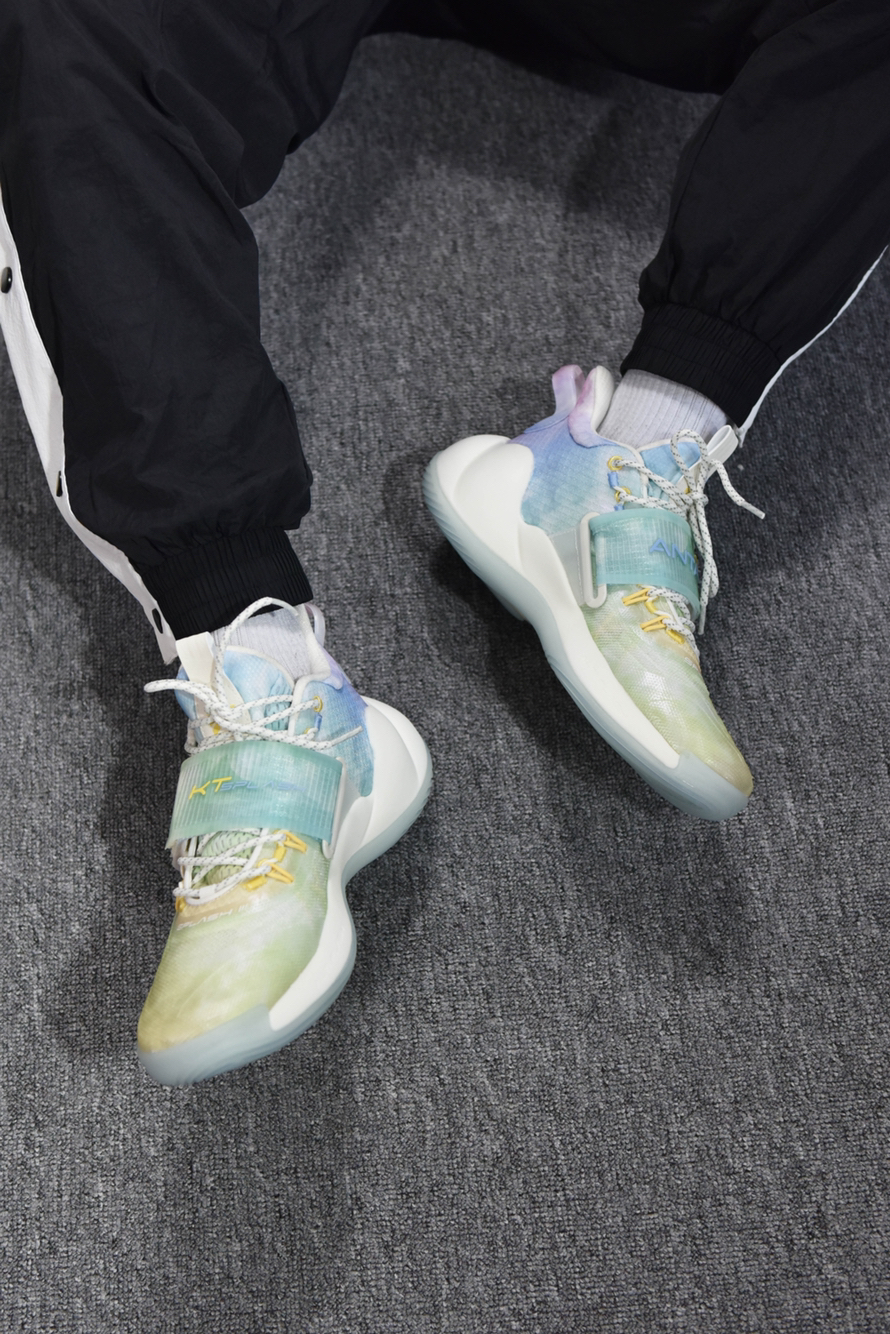 👟球鞋名称:KT6水彩 🔍设计亮点:这款鞋颜值是拉满了,水彩配色真心好看,绑带设计更强包裹。 ⛹️实战感受(缓震/包裹/抓地力):包裹很给力,缓震一般,抓地力可以,水泥地都可以打。 📃总结评价:整体不错,脚背高的不介意入手。