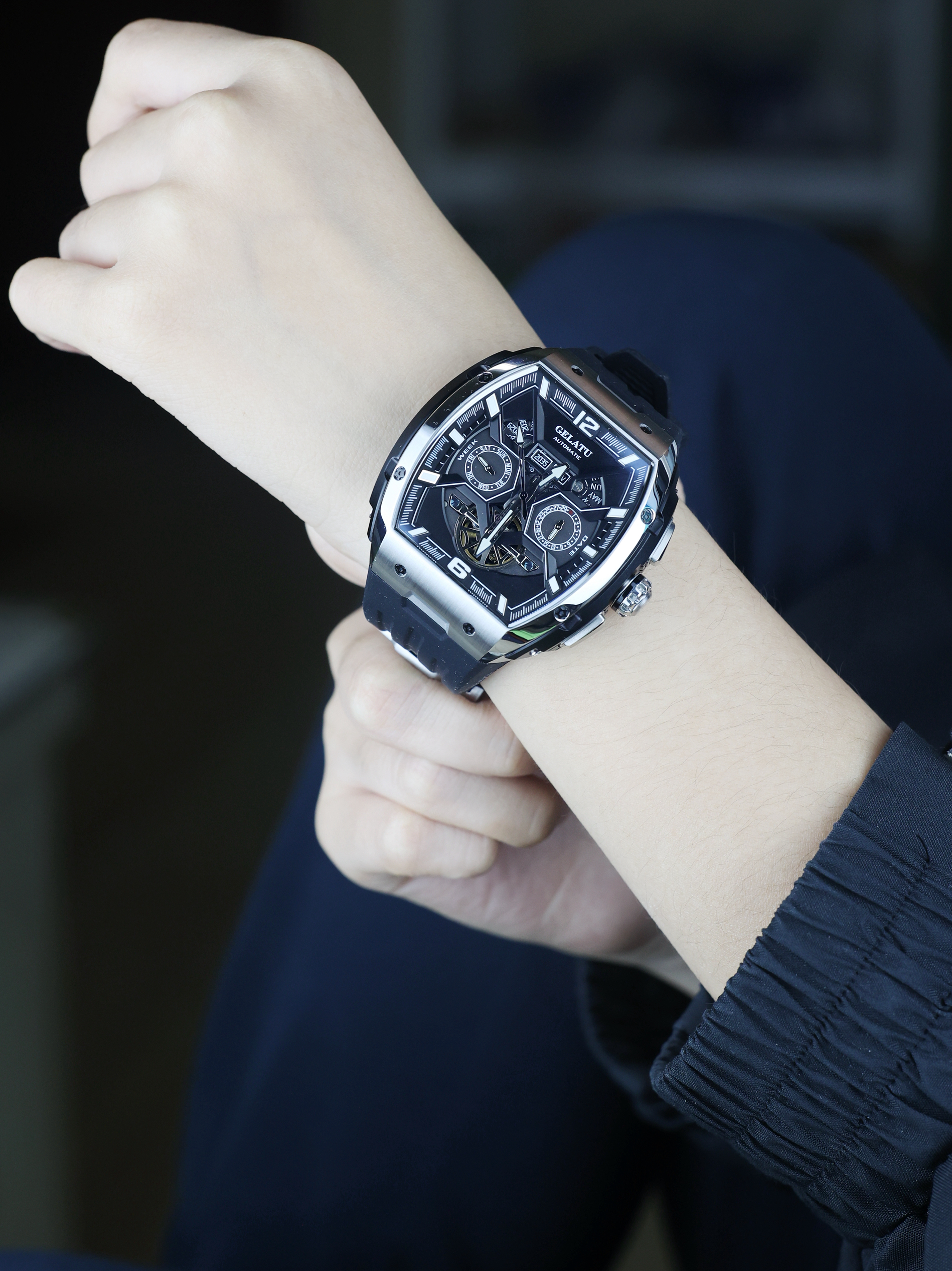 圣诞礼物🎄送什么呢,不如就送这款马克华菲全自动长方形镂空机械FW-6180腕表吧~颜值性能应有尽有,送给他绝对会爱不释手🙉 双面镂空,锋芒毕露,酒桶创新设计,流畅线条,张驰有度,展现完美机身⌚ 弧面矿物质表镜呵护精密机芯,矿物强化玻璃镜面,更耐磨耐刮,双面曲面设计直观感受机械之美,3ATM防水等级满足日常需求,下雨天也能佩戴⌚ 喷砂哑光工艺高端腕表的标配工艺,严选材质,呈现平滑均匀的哑碳黑色同时提...