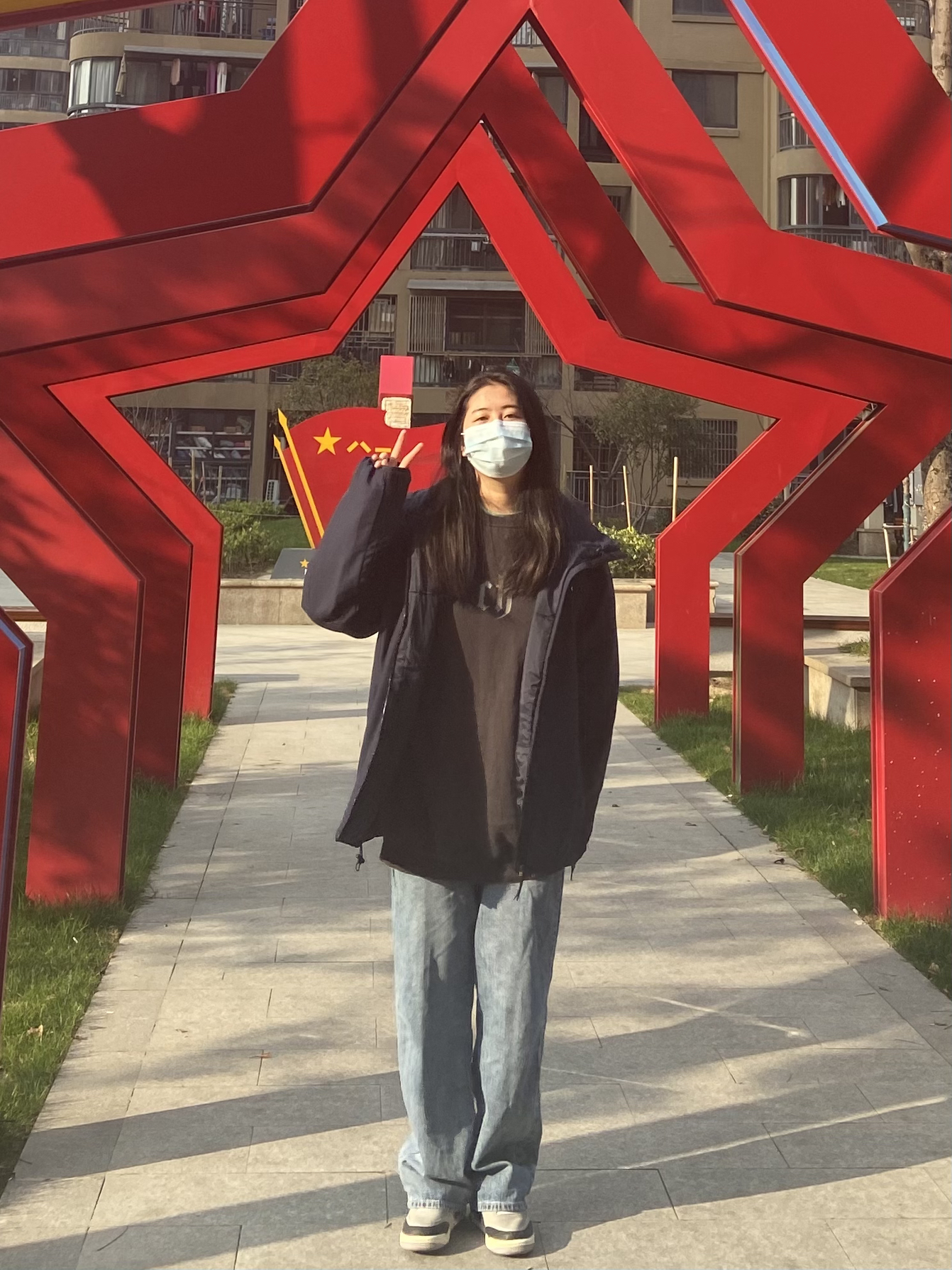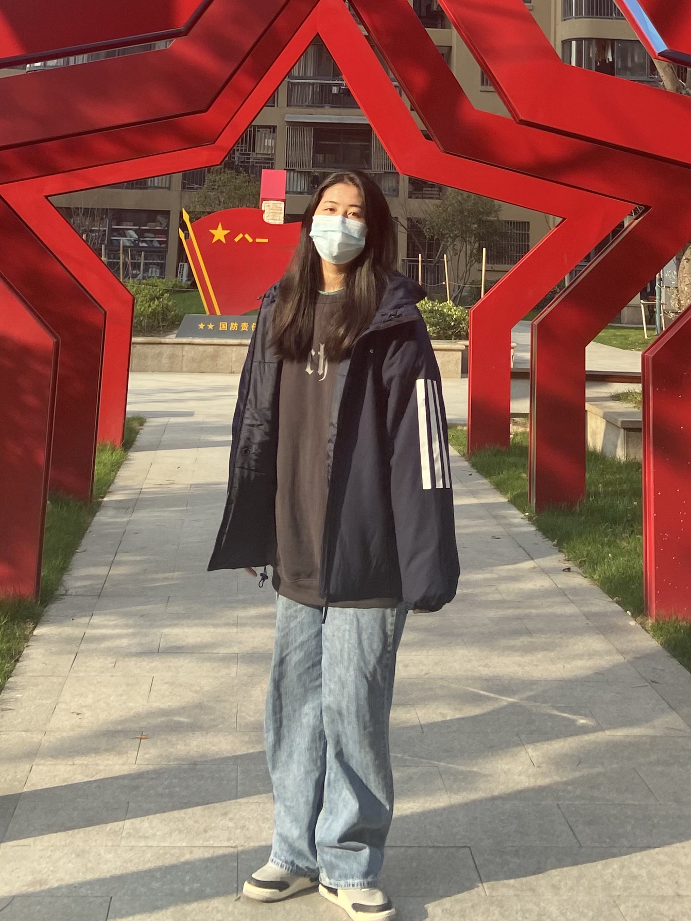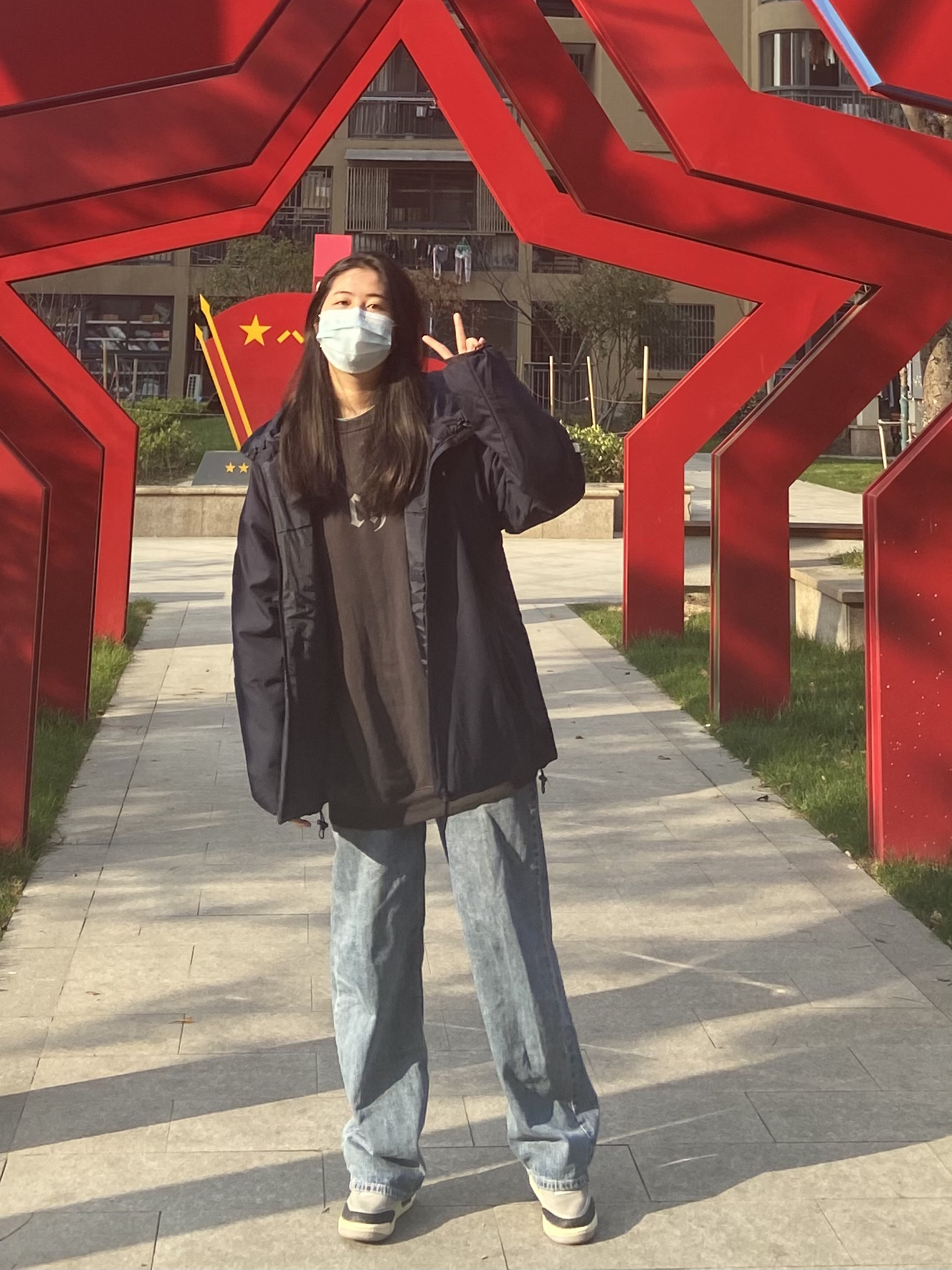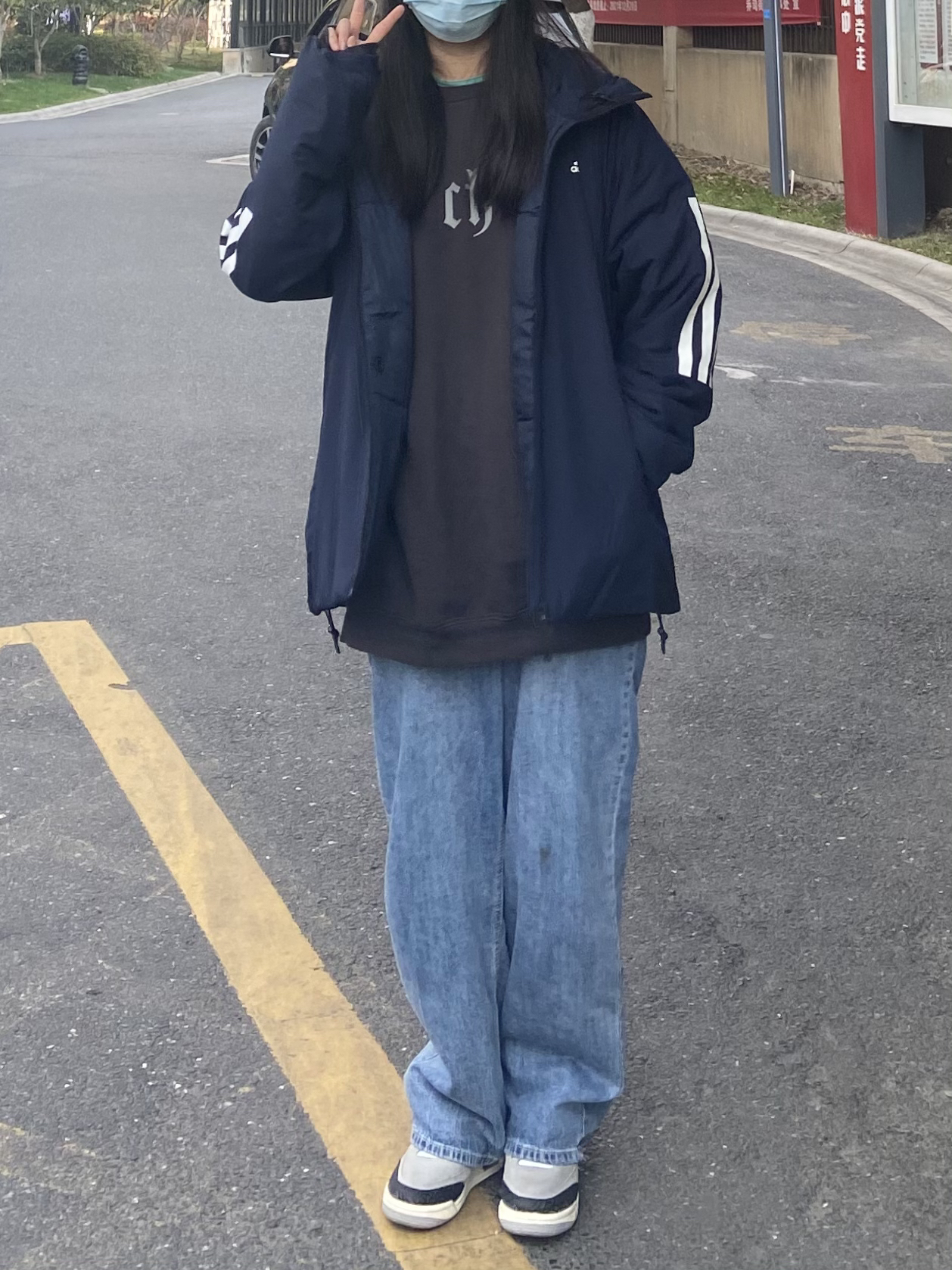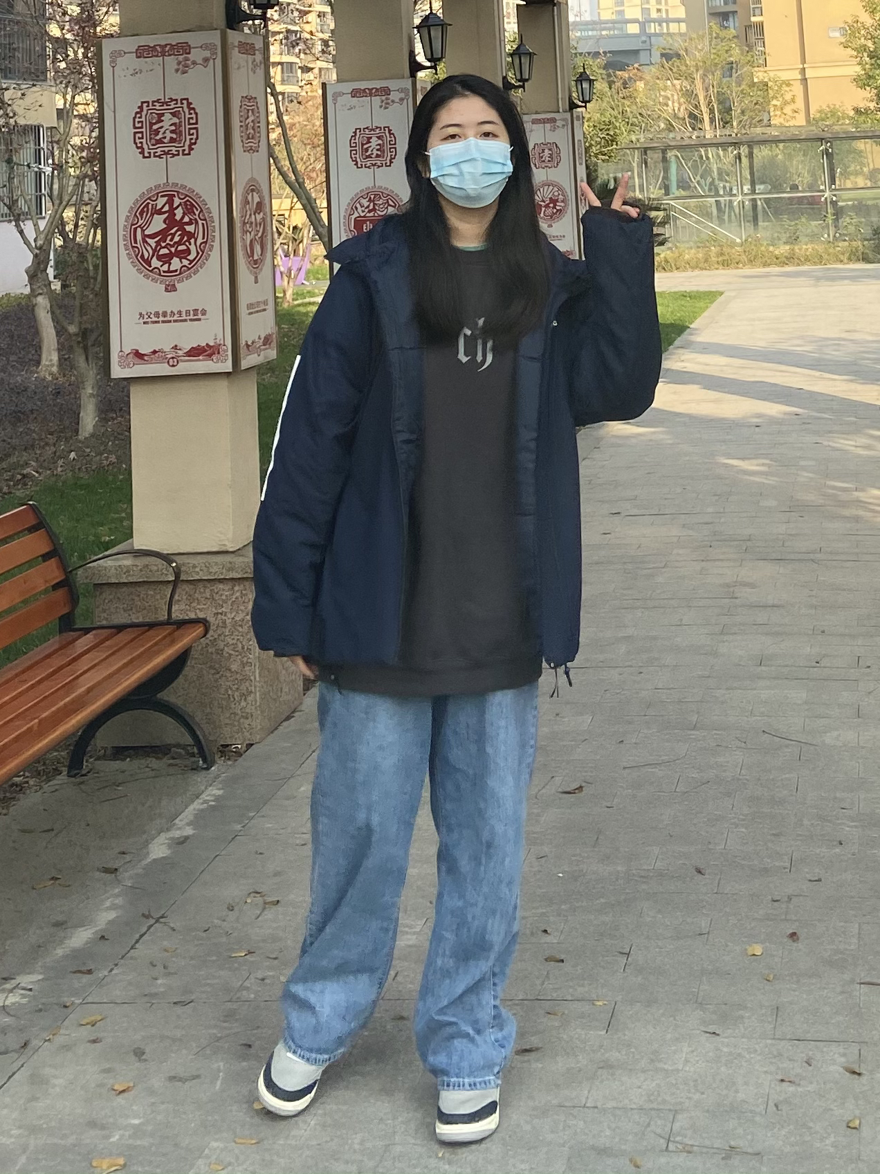 杨杨身高170 体重134 今天天气好好哦,忍不住跑出来晒晒太阳~ 不过最近疫情大家出门要注意防护哦! 今天外套刚到就穿上啦,外套整体来说很百搭~而且穿起来很保暖,但是一点也不重。 版型整体来说很显瘦,而且也很百搭哦~价格也非常美丽哟🤪