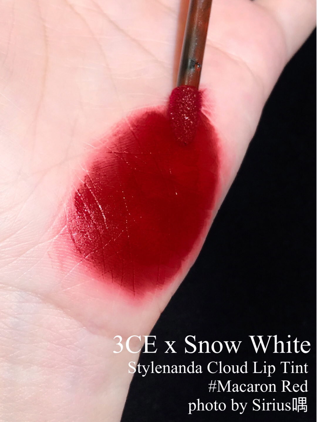 过分了!怎么这么迷人! 3ce x 白雪公主 这支是Macaron Red 正红 暖调苹果红! 微水光的质地!干了会哑光 显白!!! 夏天搭配小黑裙太🉑️了!