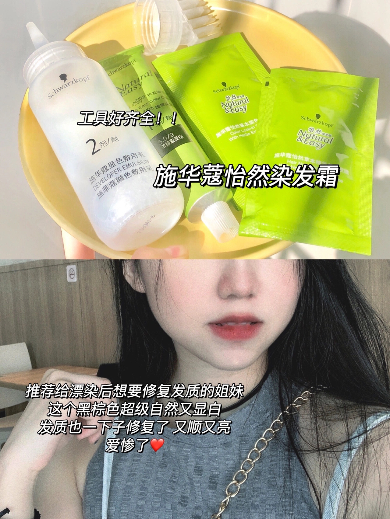 妈耶 咱就是说 兜兜转转染色漂色之后 最近还是染回了黑色 爱惨了!!!! 也太顺眼耐看了吧!! 而且我要夸一把施华蔻的3.0羊绒脂深棕色! 🆘!泰自然了!!修护能力也好绝!! 原本枯黄分叉的头发染后一夜回春了! 果真是染发同时还兼具护发效果呀~ 不是那种超级假的黑 我染的是黑棕色 真的就是hin自然的黑 而且黑🉐️发亮那种 顺滑到不行!!! 不过我更看重它无氨植萃成分 很温和,不会说刺激头皮,用着...