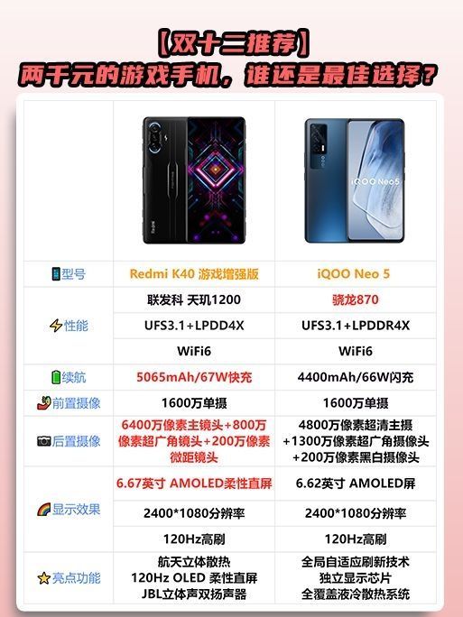 本篇笔记关联了iQOO Neo5 5G 手机 屏幕 指纹解锁 全网通 闪充 拍照 云影蓝、Lenovo/联想 拯救者电竞手机2 Pro 5G 玄、Redmi/红米 K40 游戏增强版 5G 手机 逆鳞等商品,为用户提供真实的使用体验和购买参考。